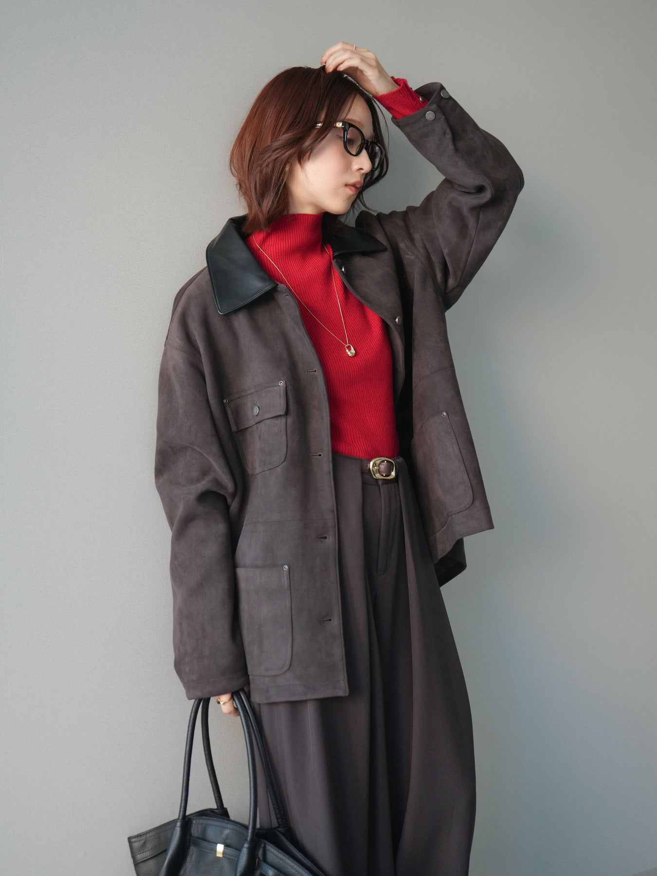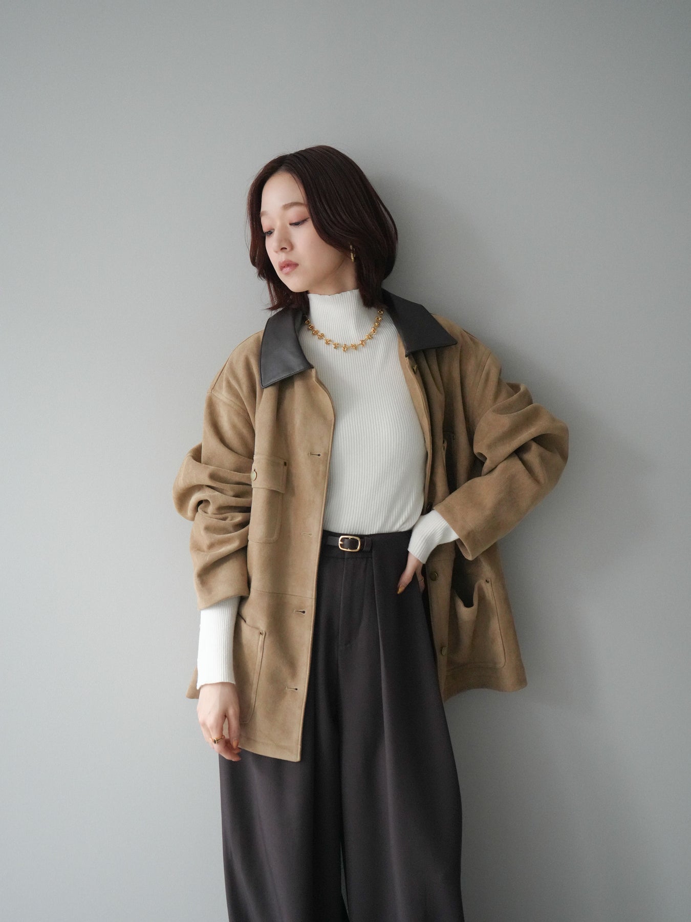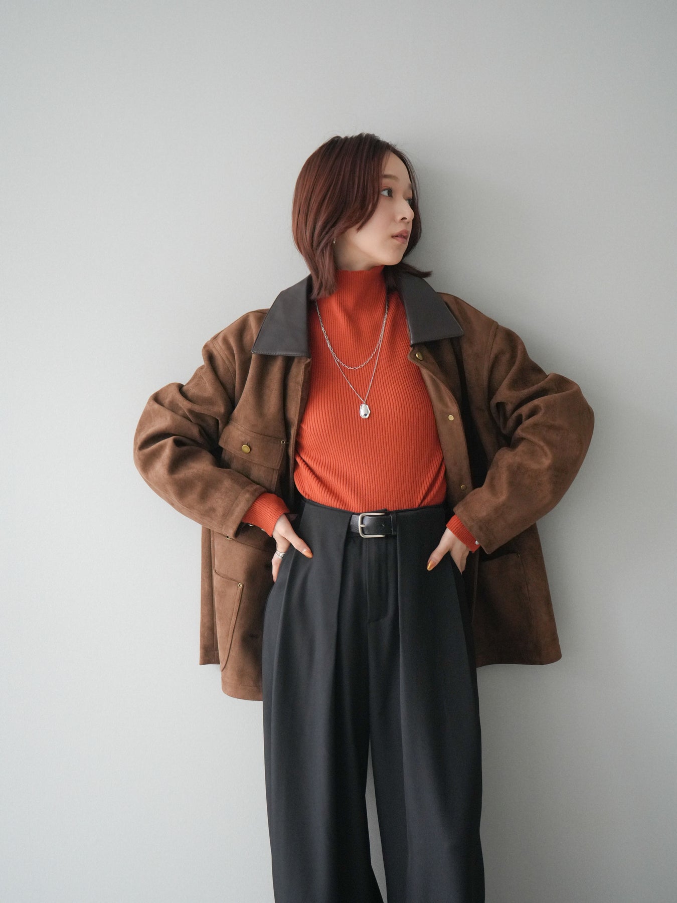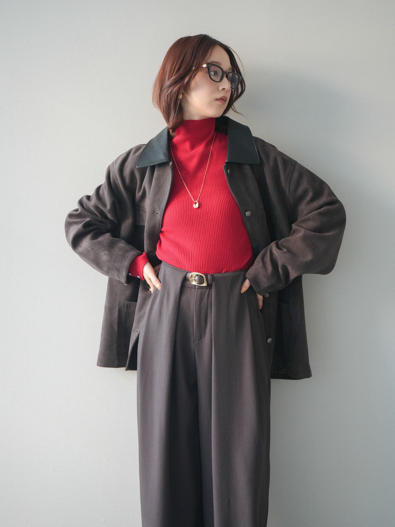 ◆ [予約]袖ボタンボトルネックリブニットトップス
