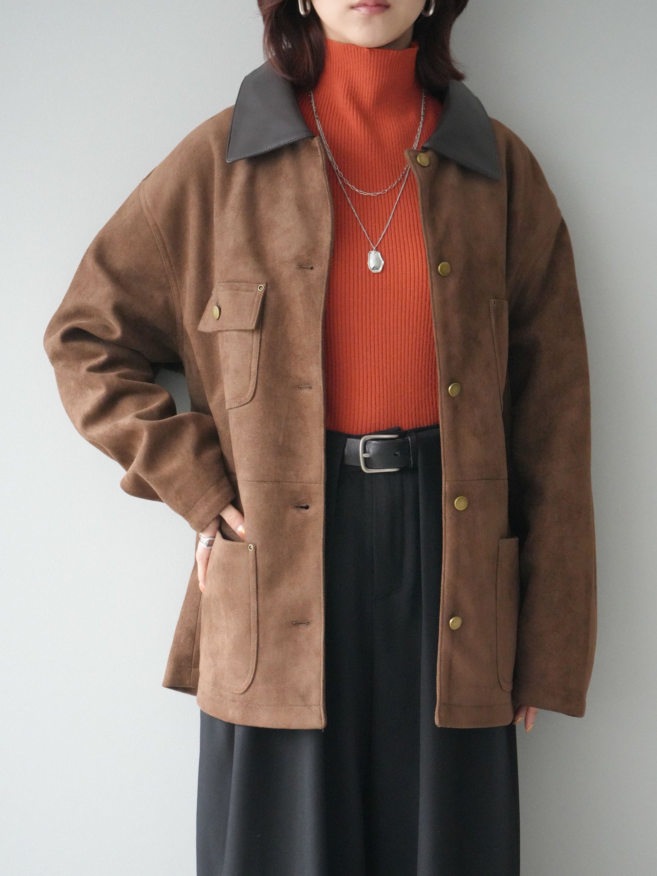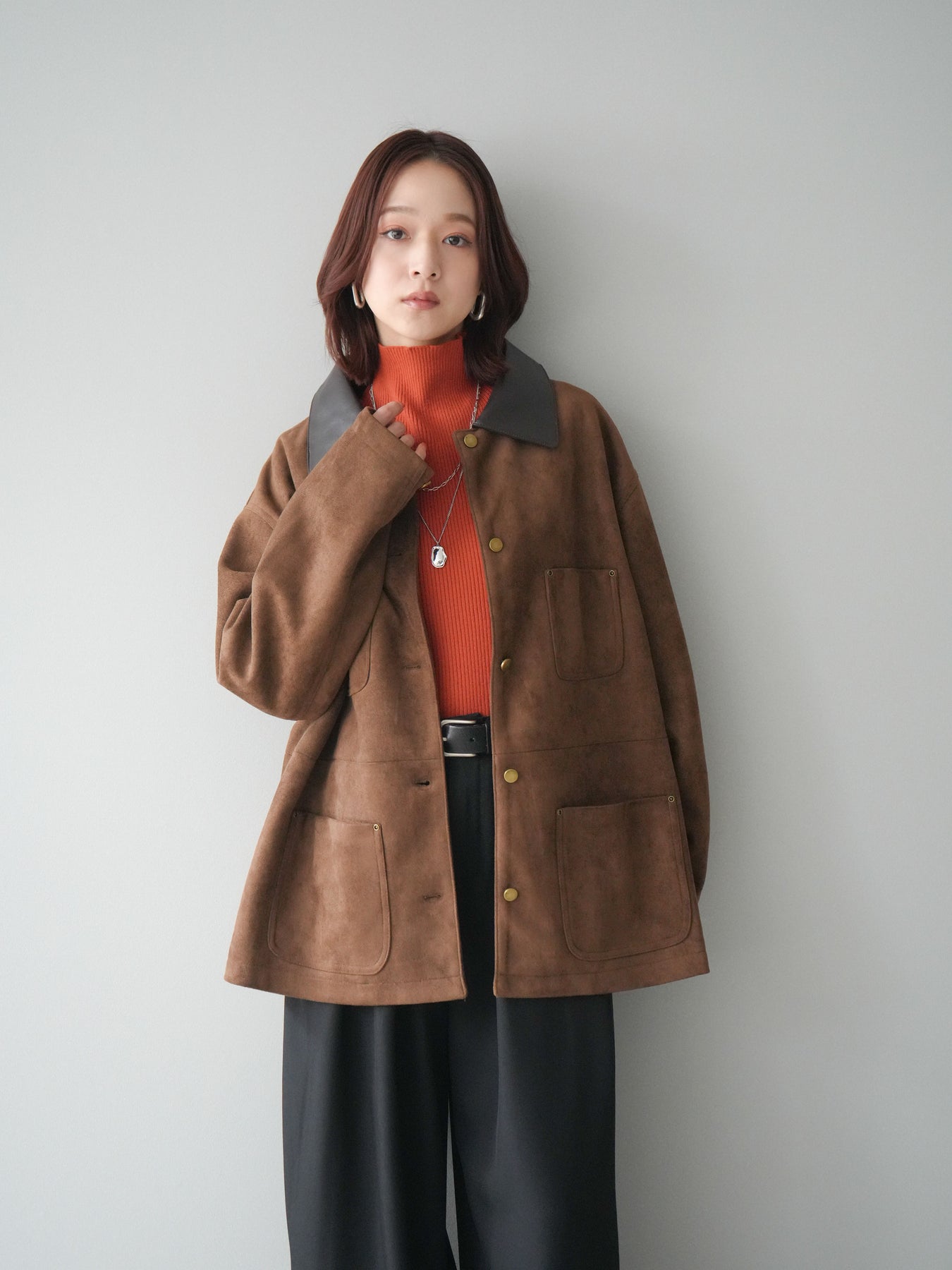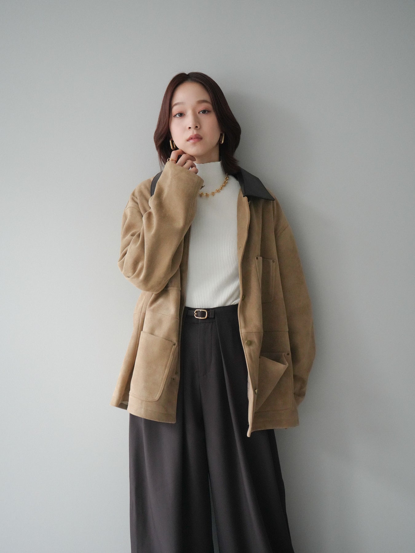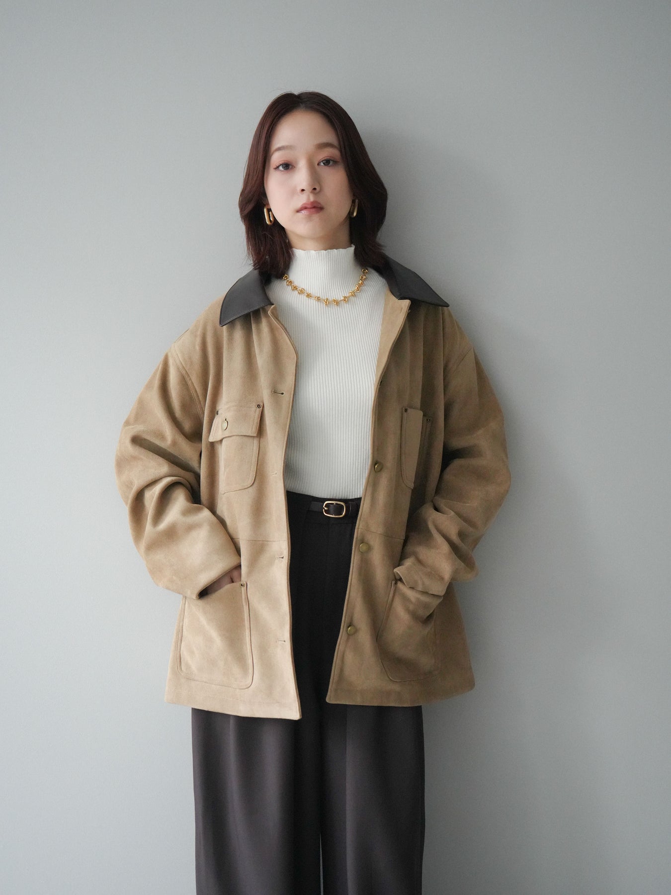 ◆ [予約]袖ボタンボトルネックリブニットトップス