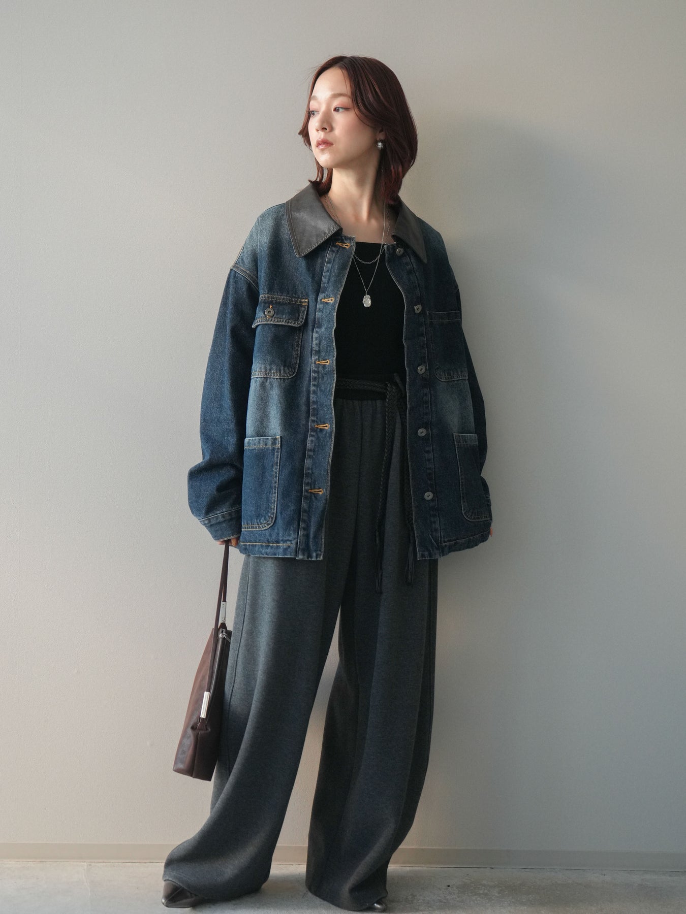ウエスト部分に編み込みベルトを組み合わせた、アクセントの効いたデザインスエットパンツ。柔らかなスエット素材を使用し、リラックス感のある穿き心地ながらも落ち感のきれいなワイドシルエットが大人らしい印象を演出します。ウエストの配色切り替えがさりげなく視線を引き上げ、タックインスタイルもバランスよく決まるポイントに。シンプルなトップスと合わせるだけでこなれた着こなしが完成し、デイリーに活躍する万能な一本です。
