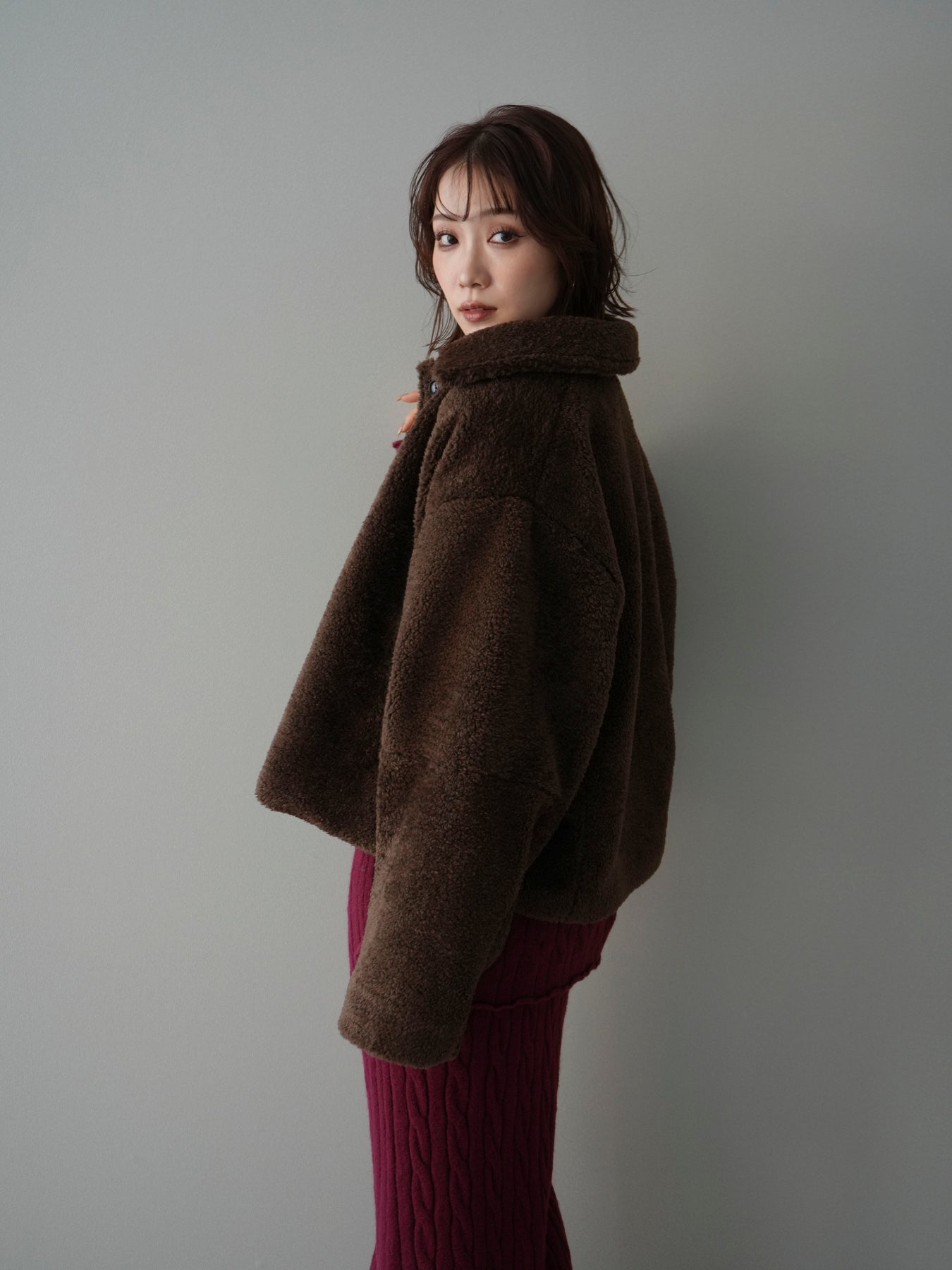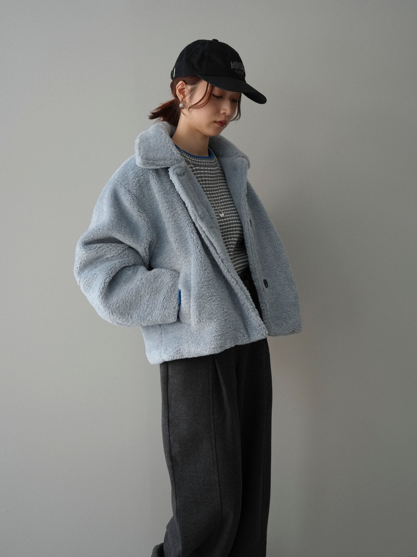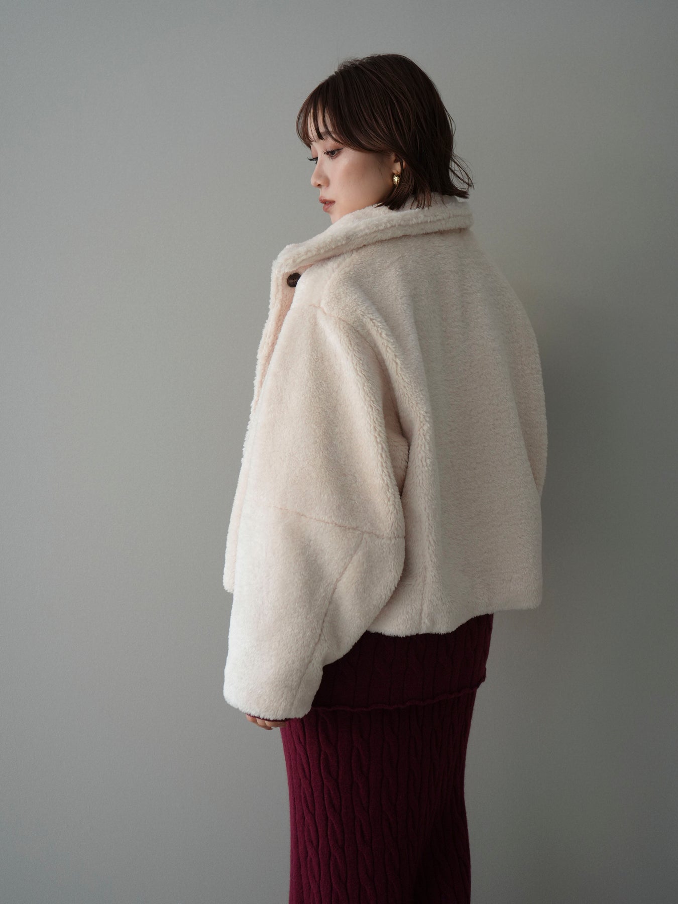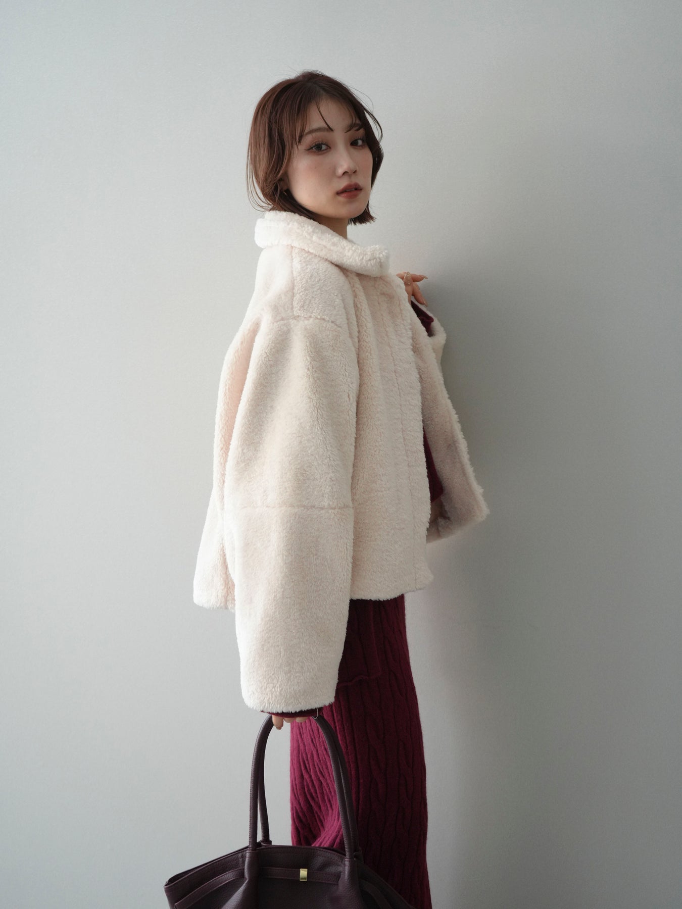 やわらかなエコファー素材を使用したステンカラージャケット。程よいボリューム感とコンパクトな丈感のバランスが良く、羽織るだけで季節感のあるスタイリングが完成します。カジュアルにもきれいめにも取り入れやすく、幅広いコーディネートに活躍する一着です。