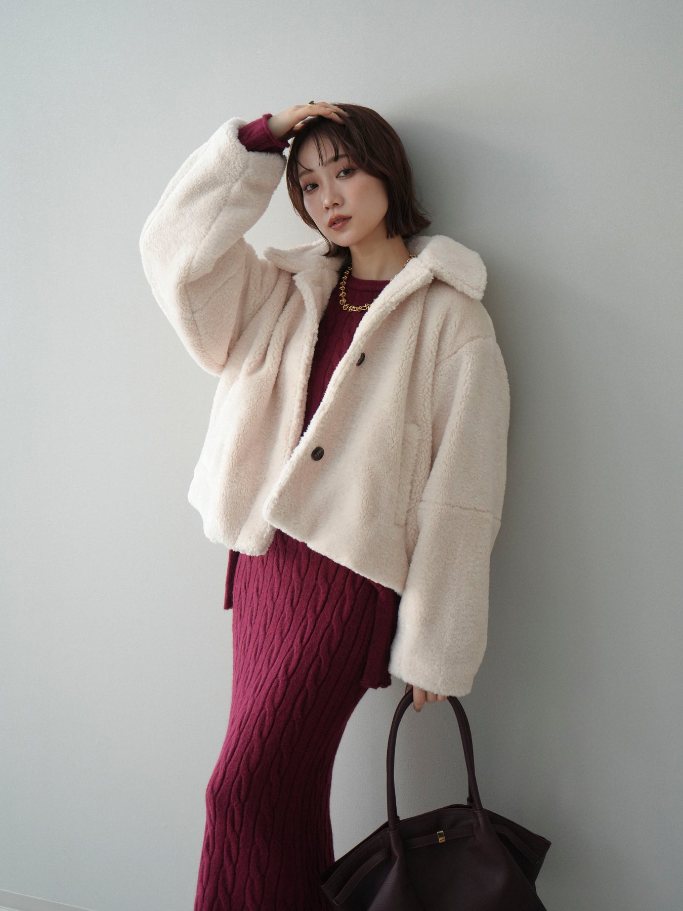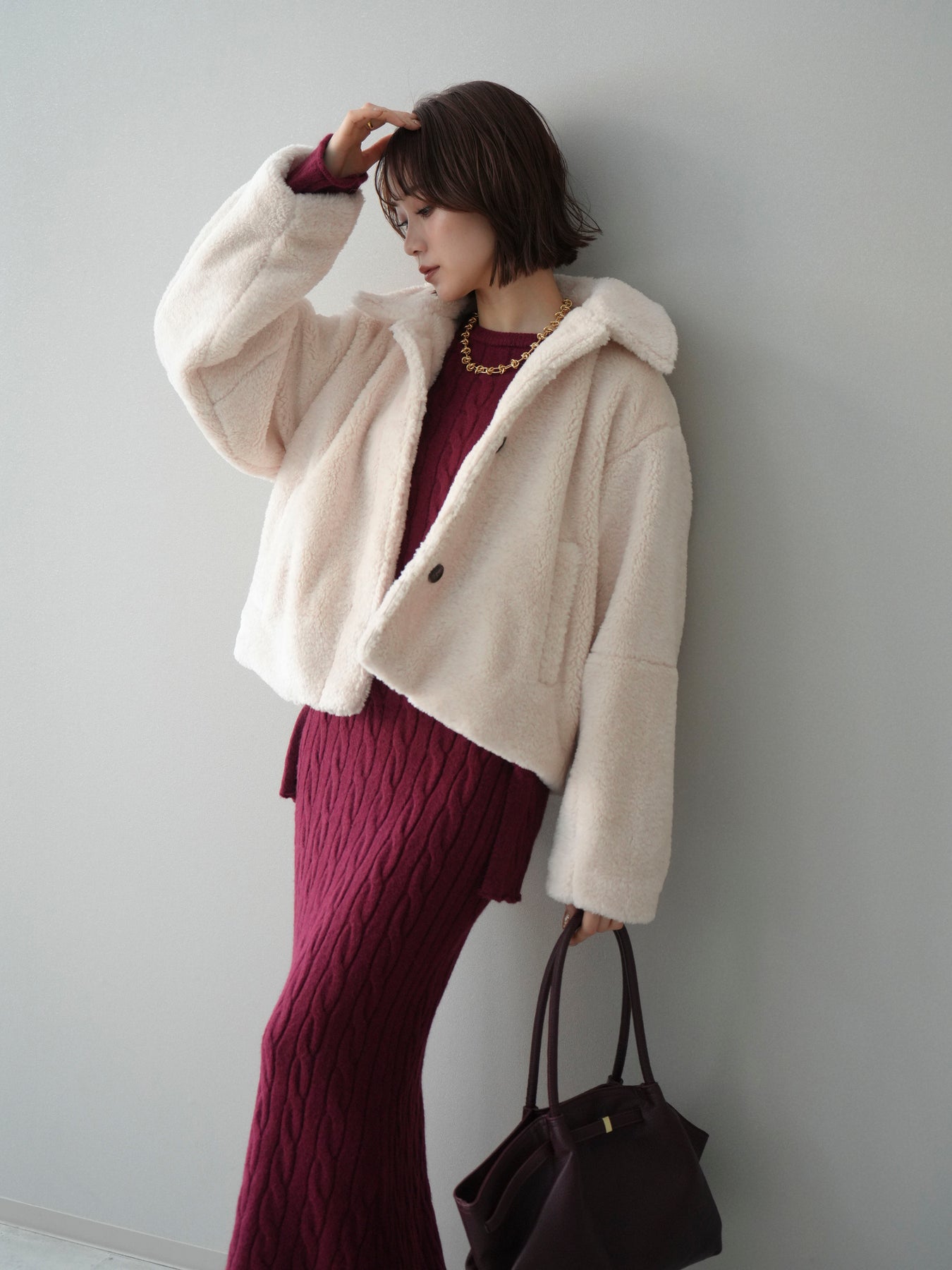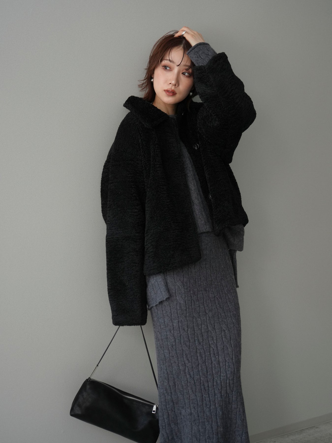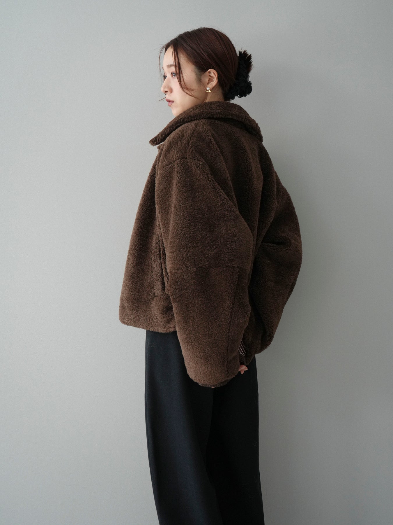 やわらかなエコファー素材を使用したステンカラージャケット。程よいボリューム感とコンパクトな丈感のバランスが良く、羽織るだけで季節感のあるスタイリングが完成します。カジュアルにもきれいめにも取り入れやすく、幅広いコーディネートに活躍する一着です。
