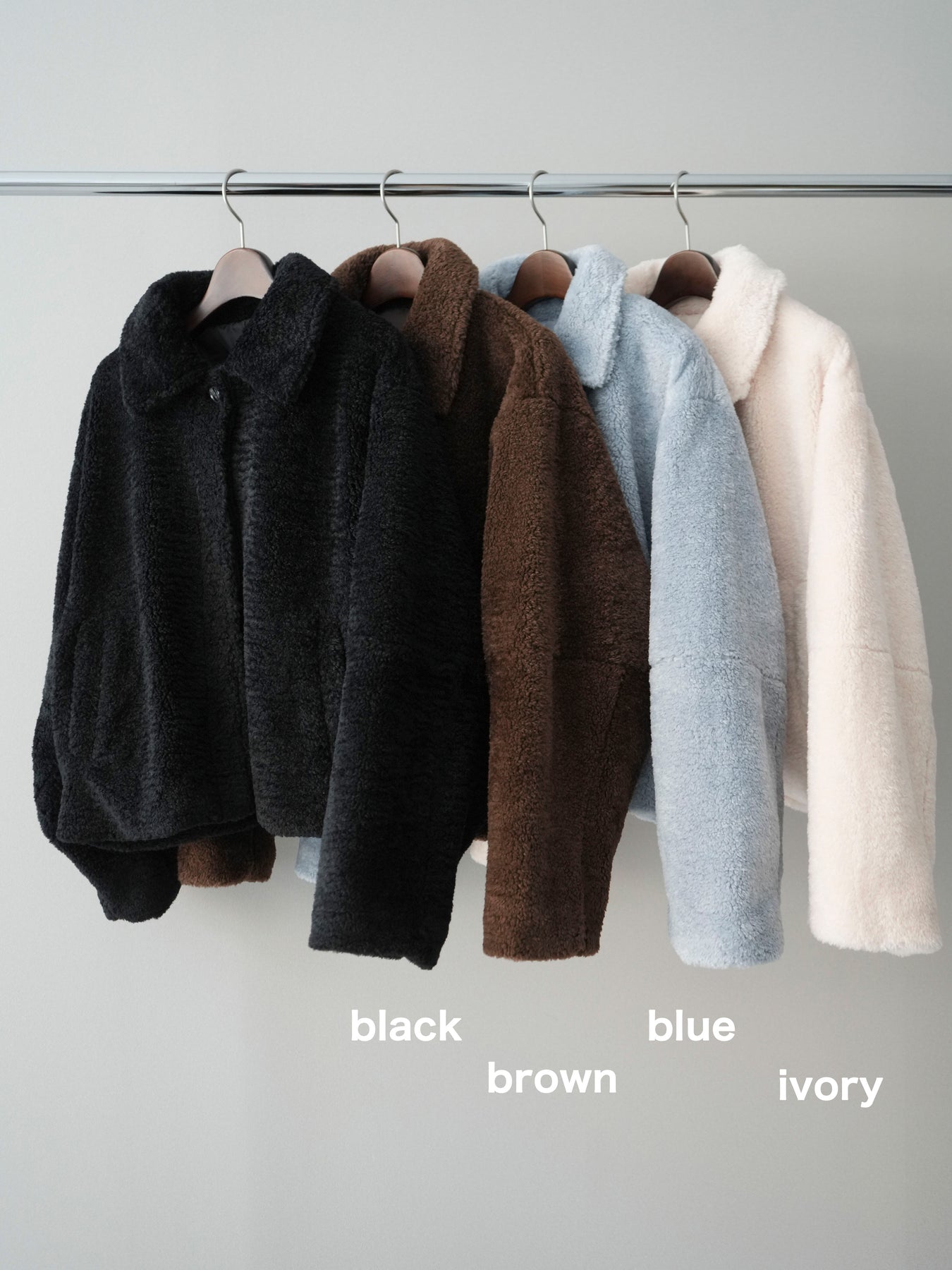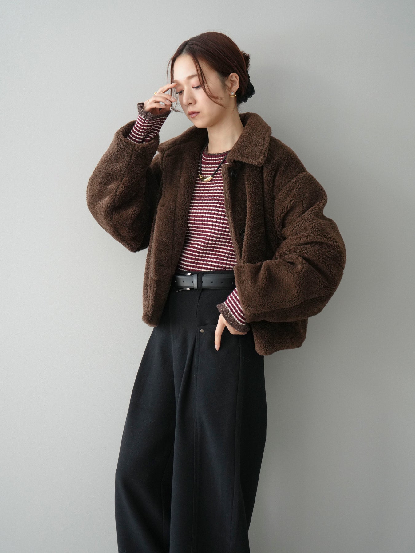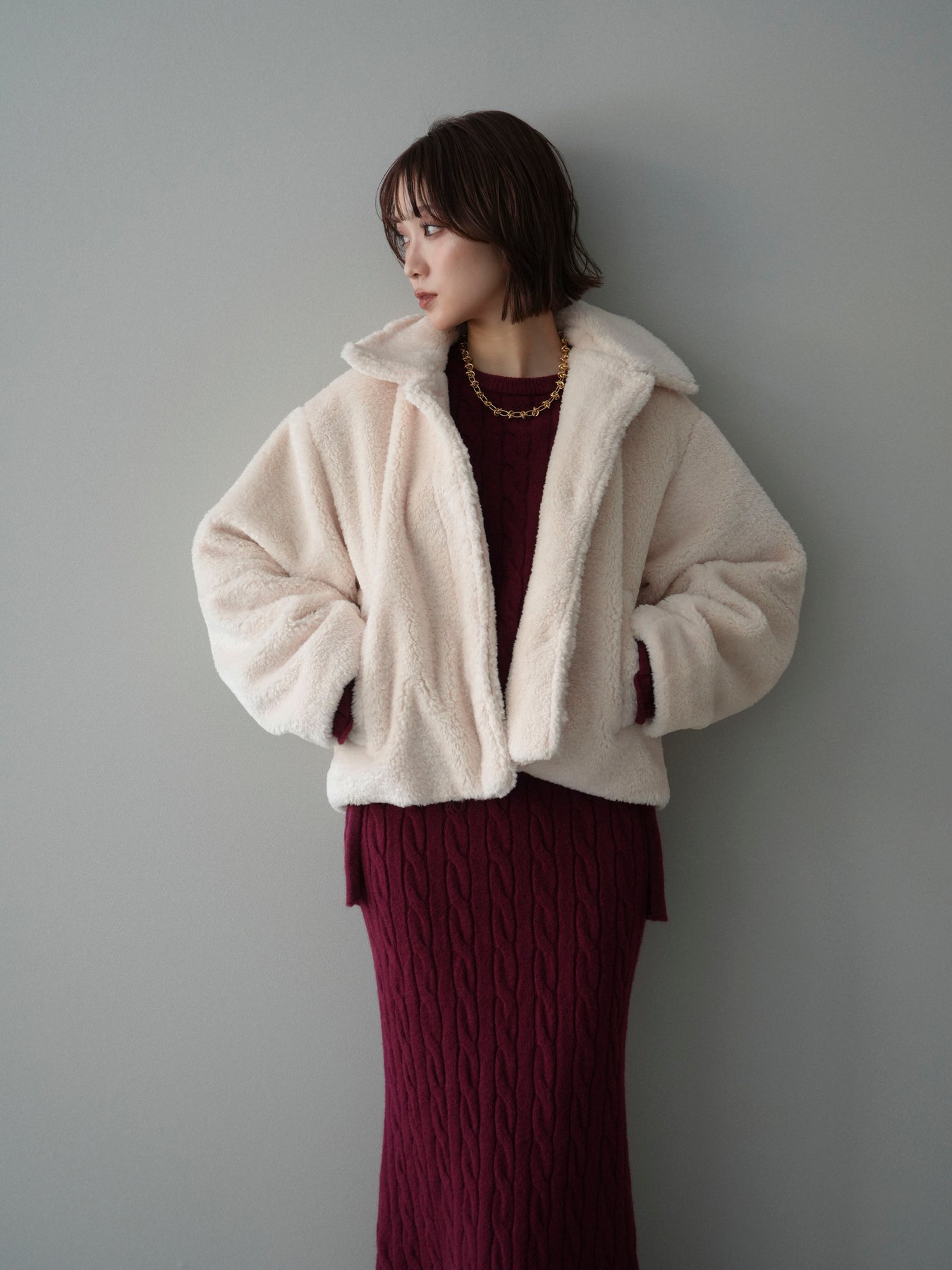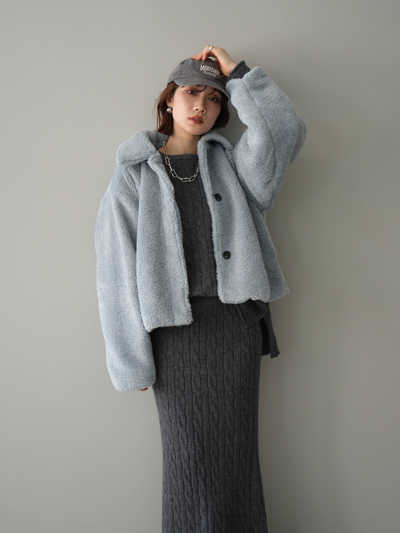 やわらかなエコファー素材を使用したステンカラージャケット。程よいボリューム感とコンパクトな丈感のバランスが良く、羽織るだけで季節感のあるスタイリングが完成します。カジュアルにもきれいめにも取り入れやすく、幅広いコーディネートに活躍する一着です。