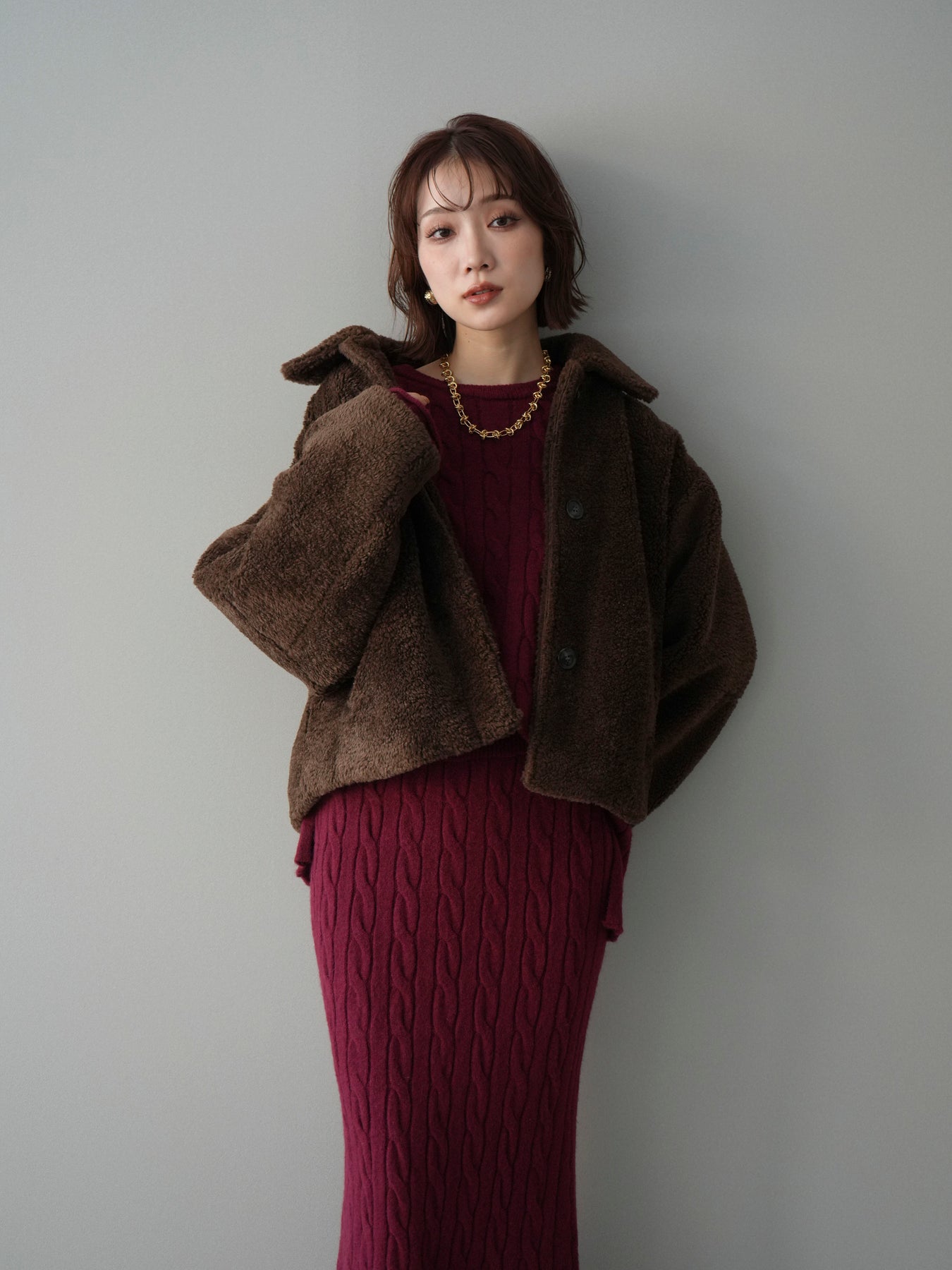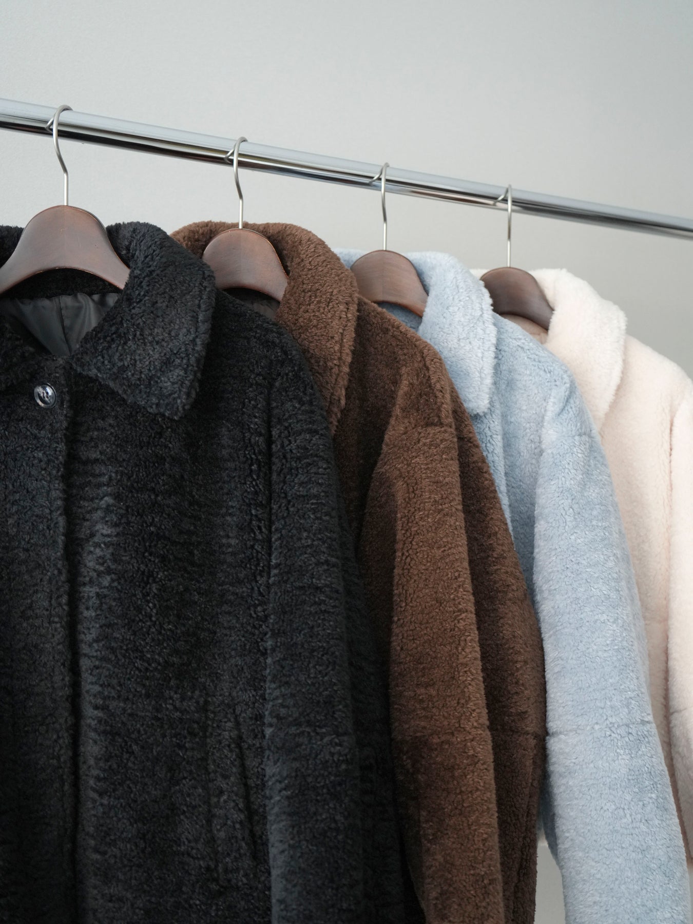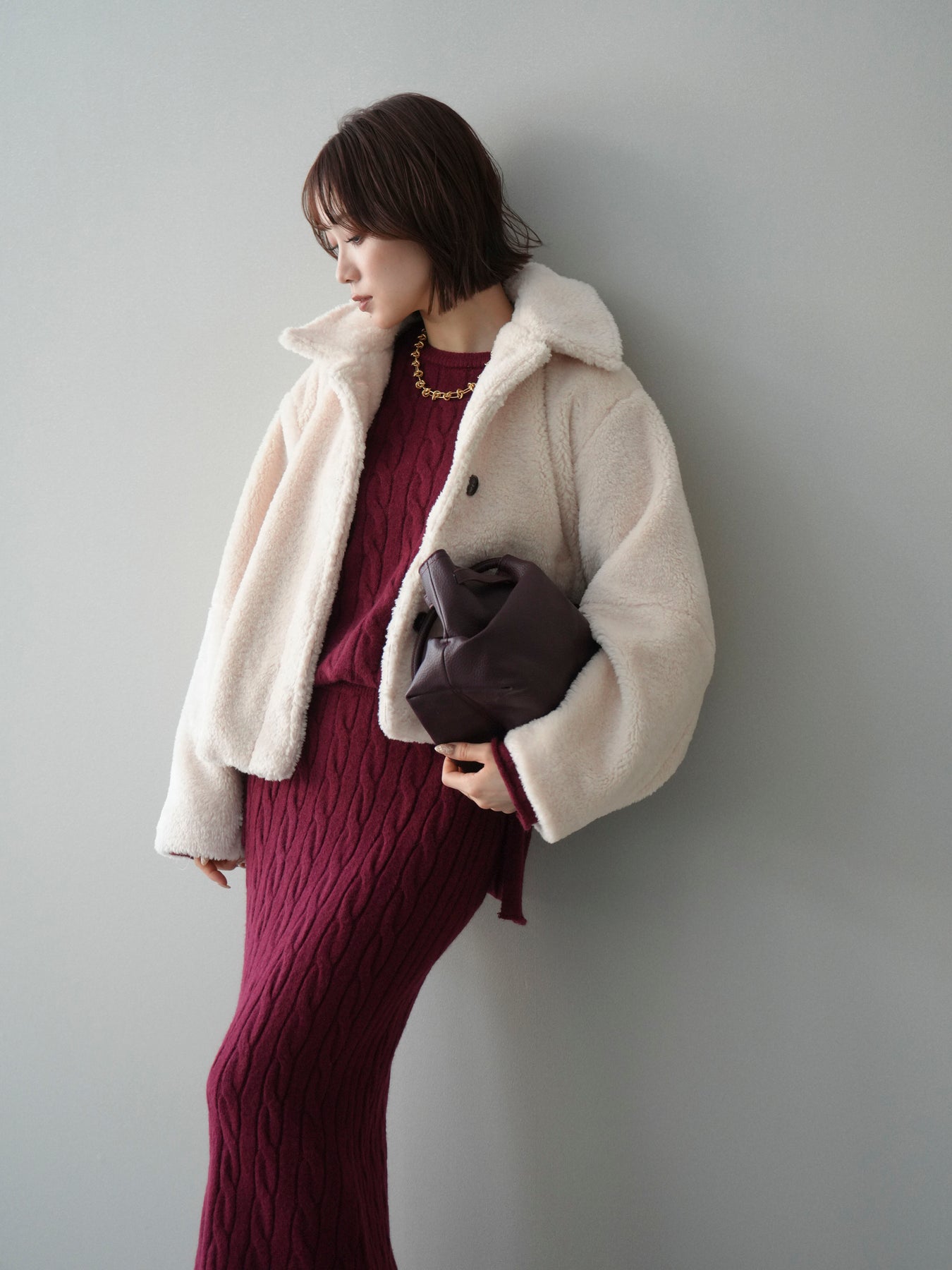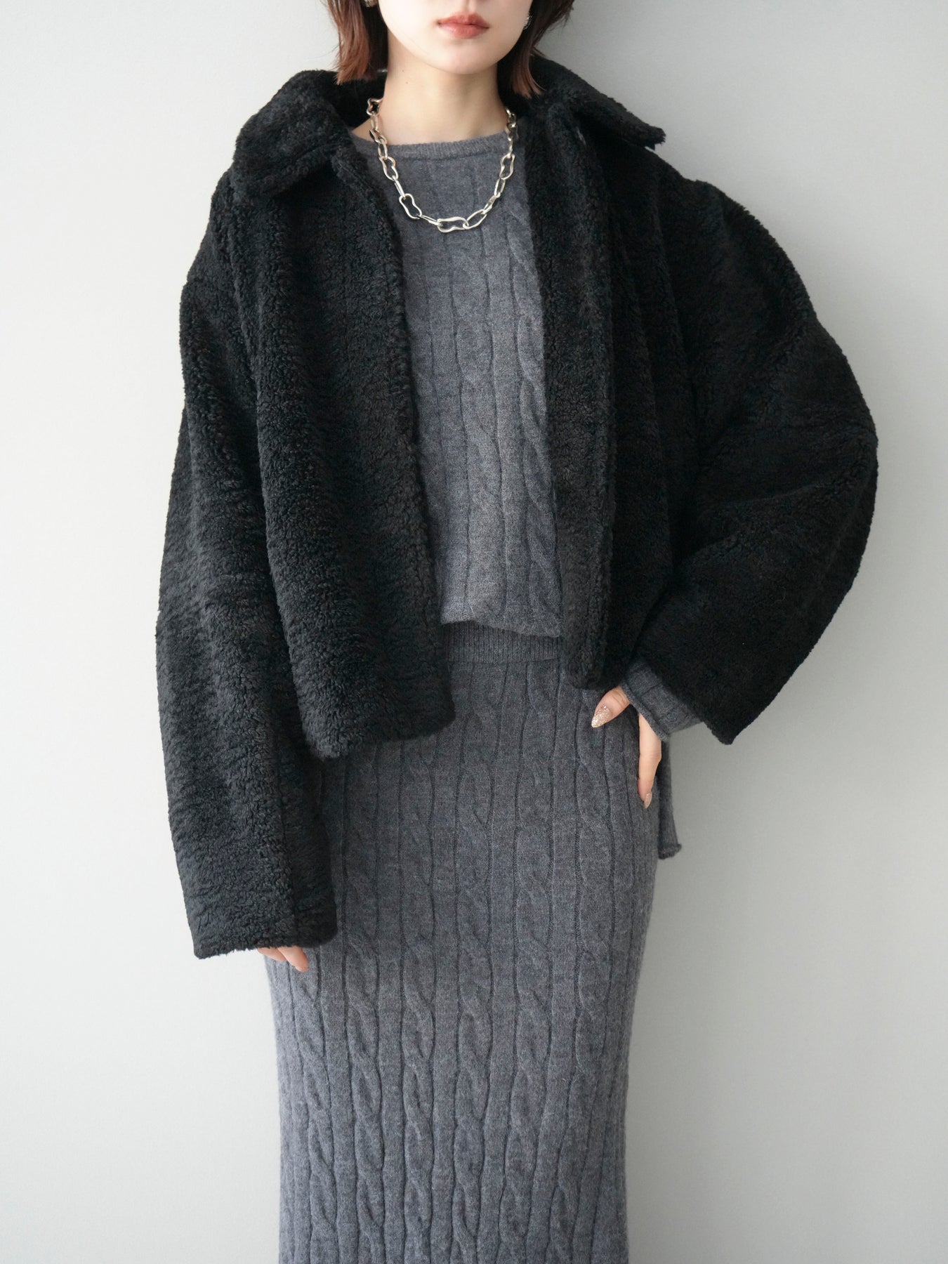 やわらかなエコファー素材を使用したステンカラージャケット。程よいボリューム感とコンパクトな丈感のバランスが良く、羽織るだけで季節感のあるスタイリングが完成します。カジュアルにもきれいめにも取り入れやすく、幅広いコーディネートに活躍する一着です。