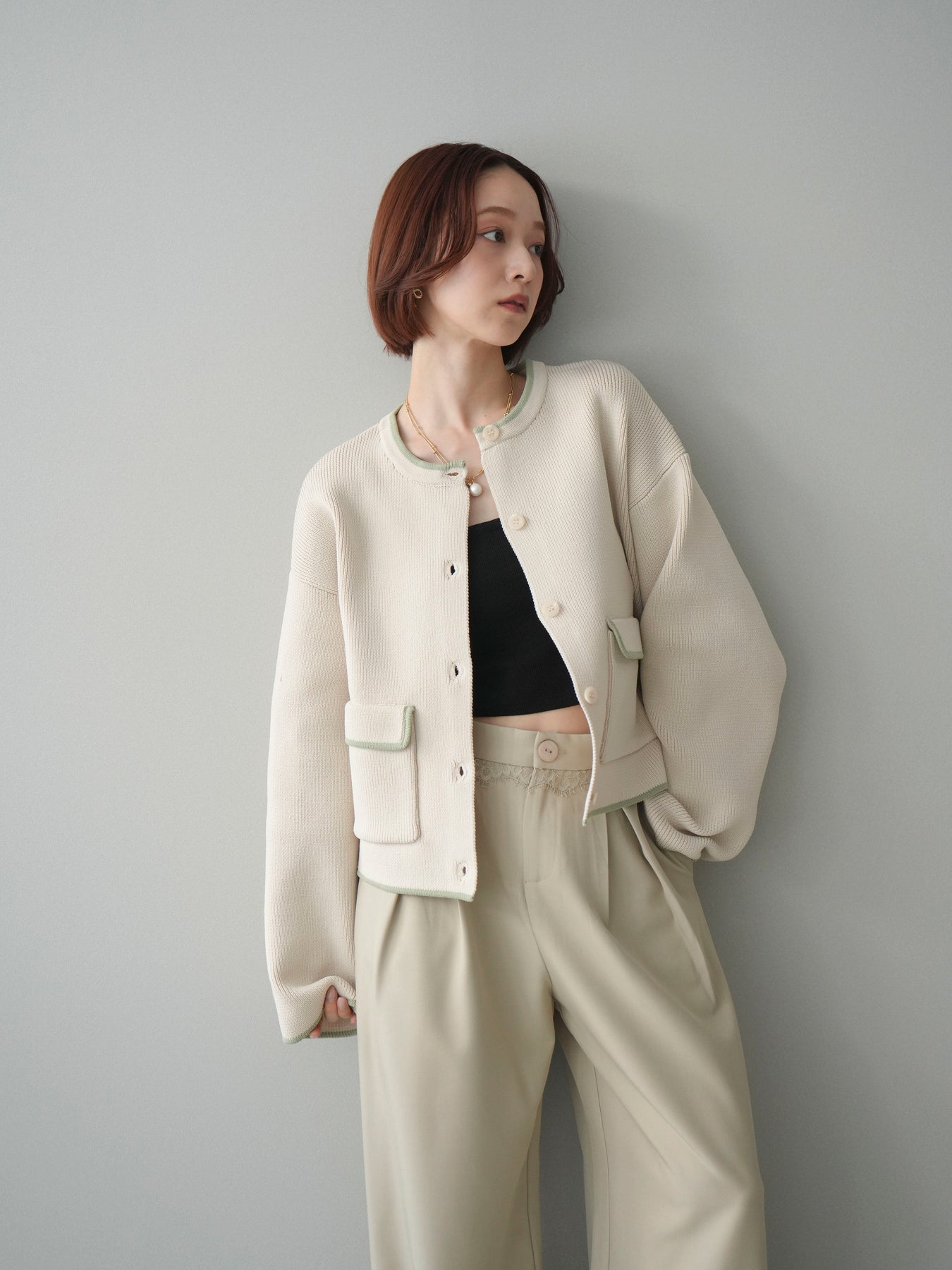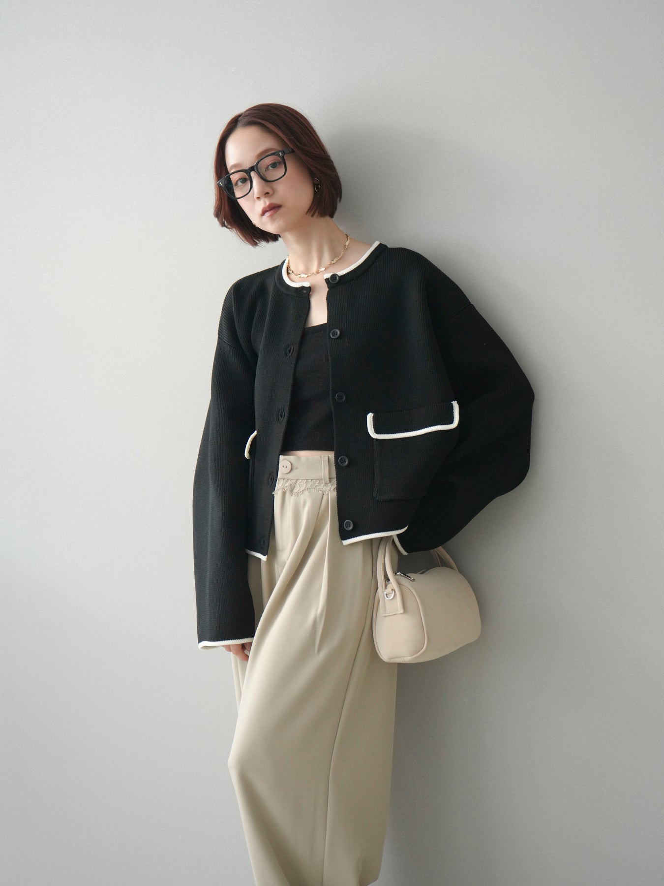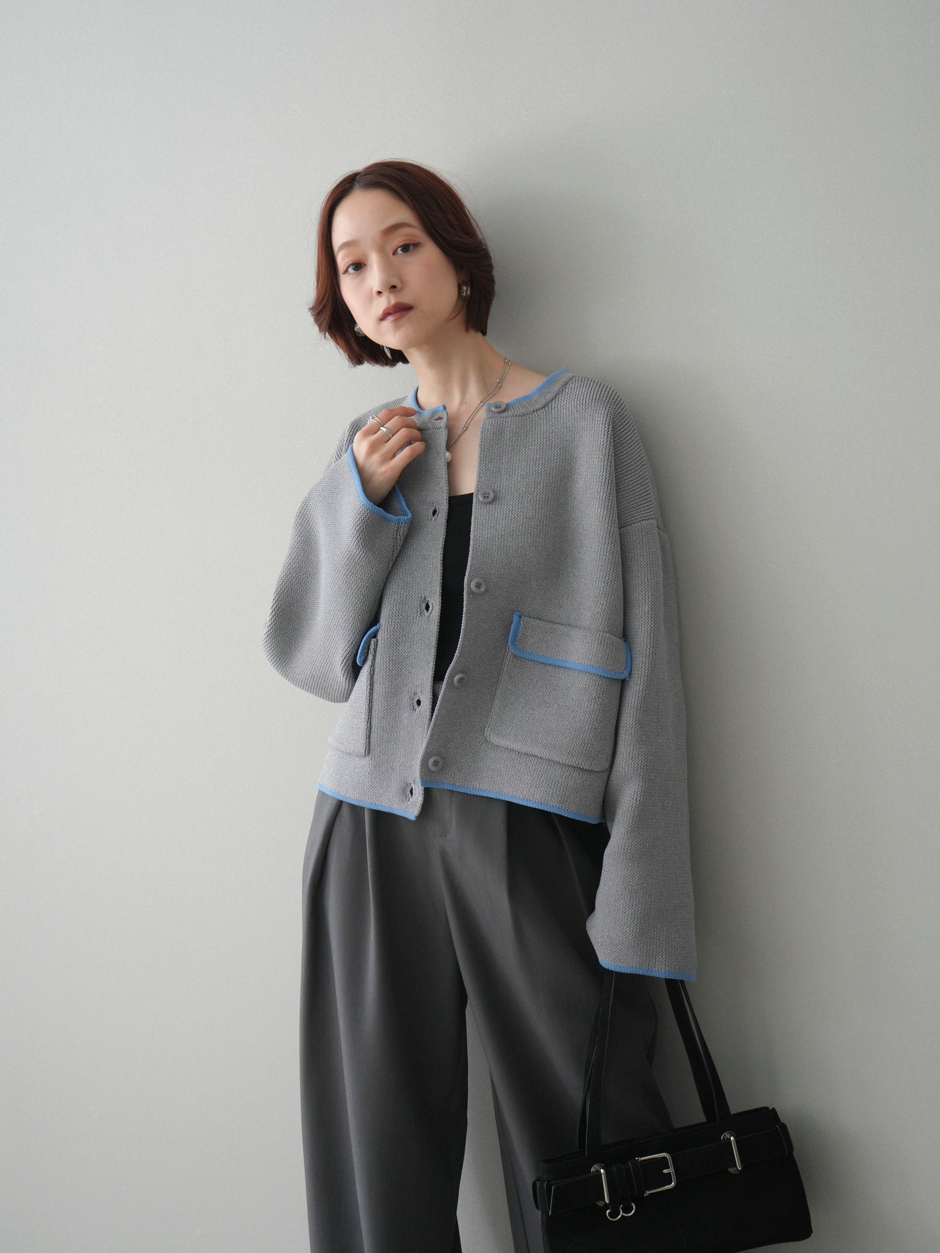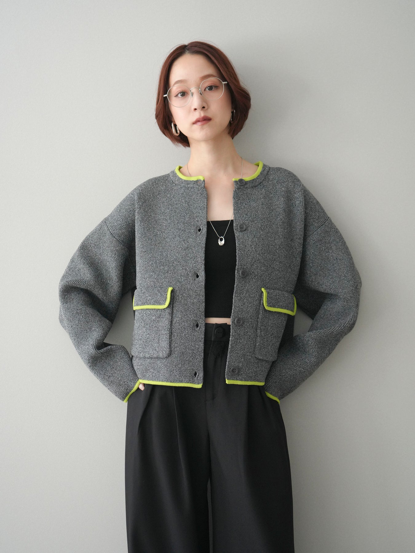 配色デザインをレイヤード風に取り入れたニットカーディガン。シンプルなシルエットに、襟元や裾、袖口から覗く配色がさりげないアクセントとなり、1枚で奥行きのあるスタイリングを叶えます。程よくゆとりのあるサイズ感で、前を閉じてトップスとしても、羽織りとしても着用可能。ベーシックながらも着映えするデザインで、カジュアルからきれいめまで幅広いコーディネートに取り入れやすい一着です。 ※ボトムス、キャミソール(インナー)以外の商品は一律でインナーは付属していません。