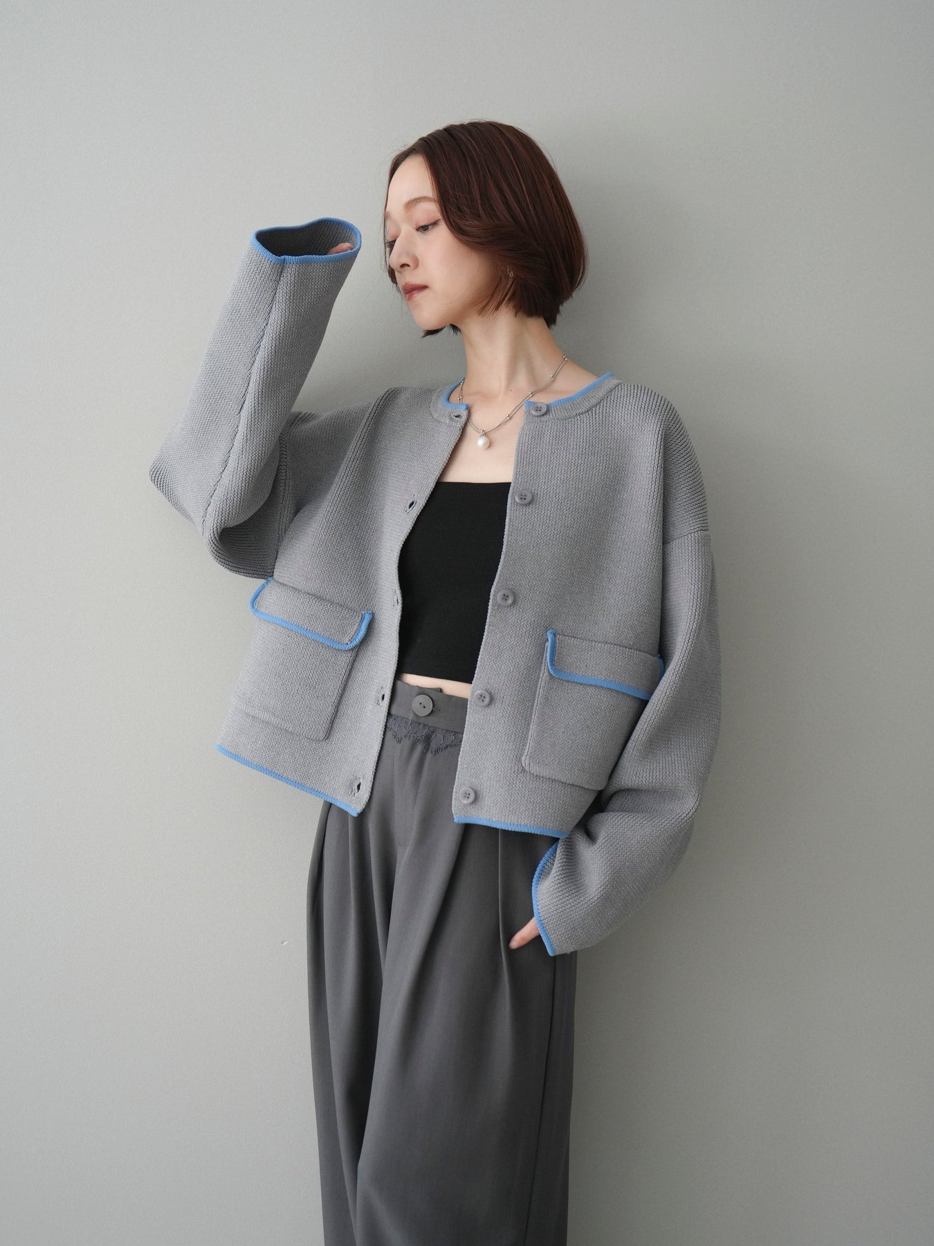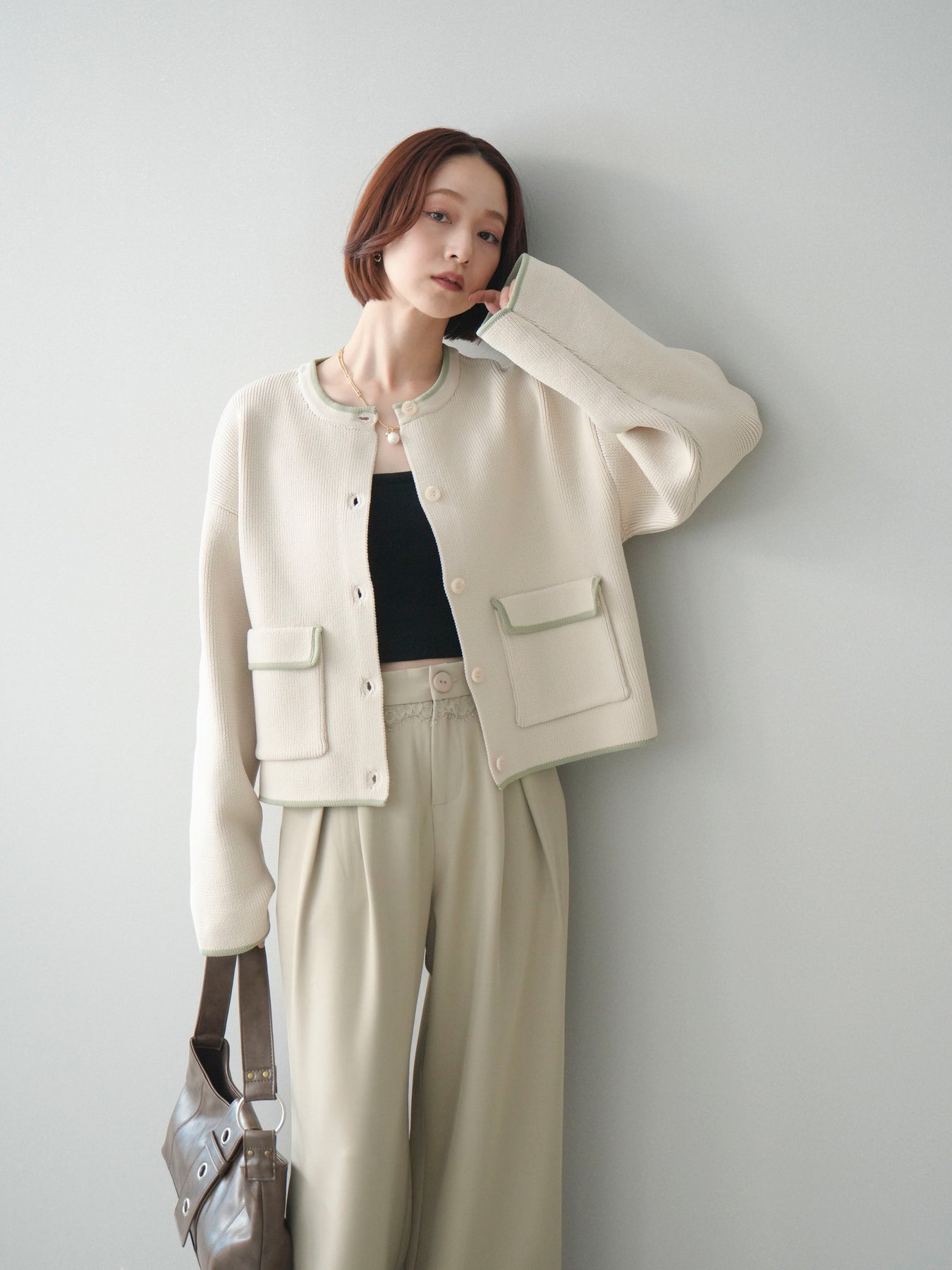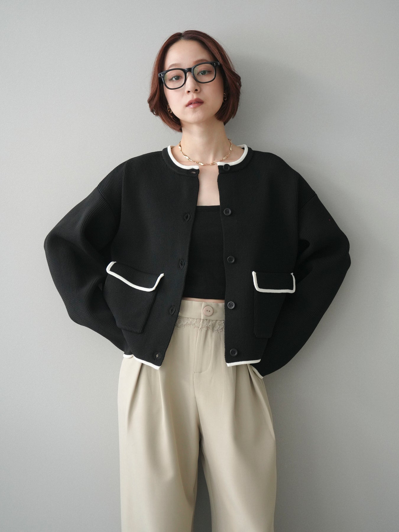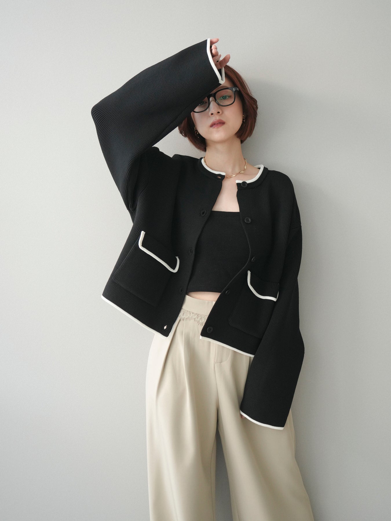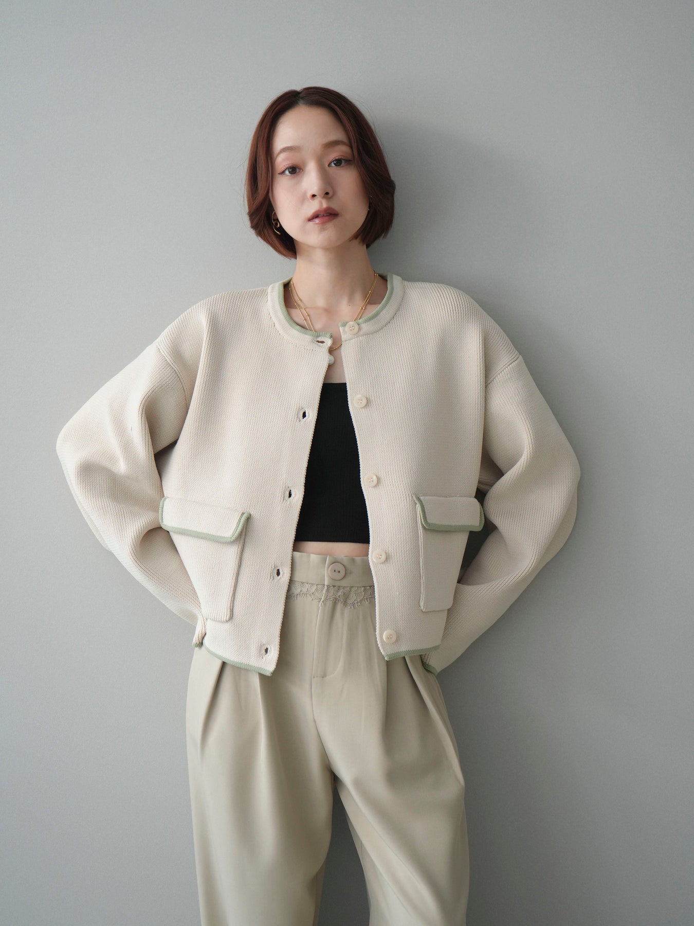 配色デザインをレイヤード風に取り入れたニットカーディガン。シンプルなシルエットに、襟元や裾、袖口から覗く配色がさりげないアクセントとなり、1枚で奥行きのあるスタイリングを叶えます。程よくゆとりのあるサイズ感で、前を閉じてトップスとしても、羽織りとしても着用可能。ベーシックながらも着映えするデザインで、カジュアルからきれいめまで幅広いコーディネートに取り入れやすい一着です。 ※ボトムス、キャミソール(インナー)以外の商品は一律でインナーは付属していません。
