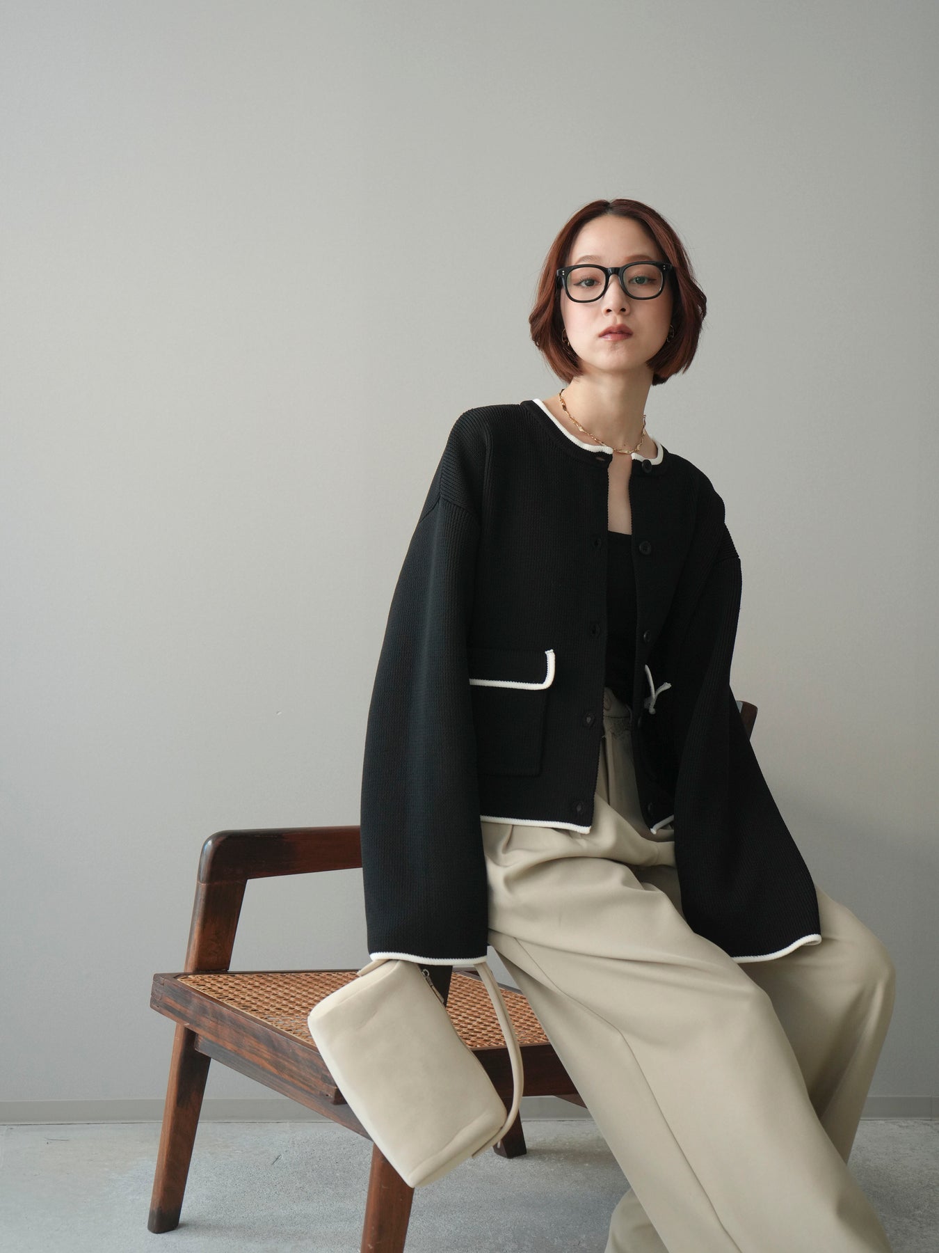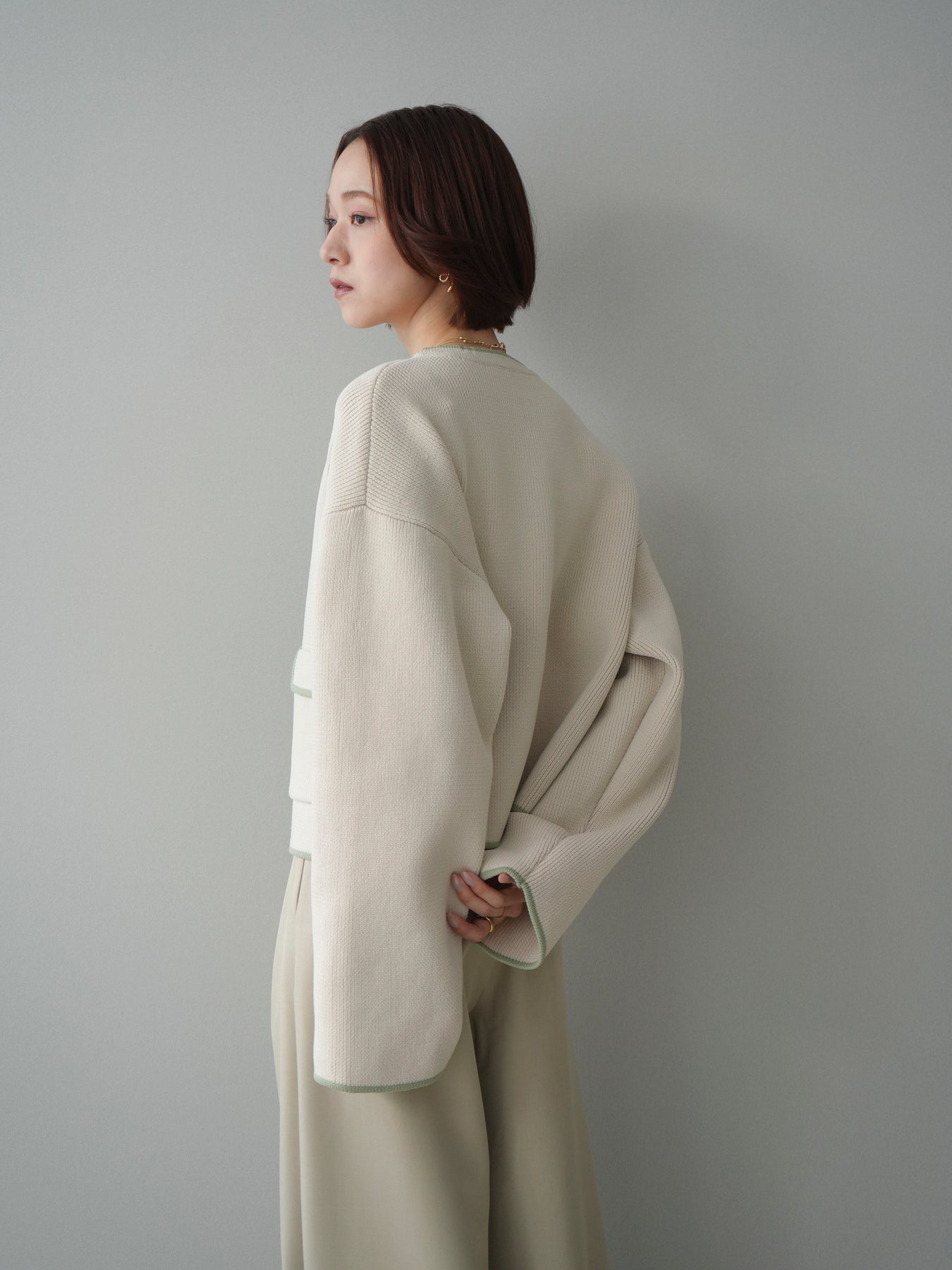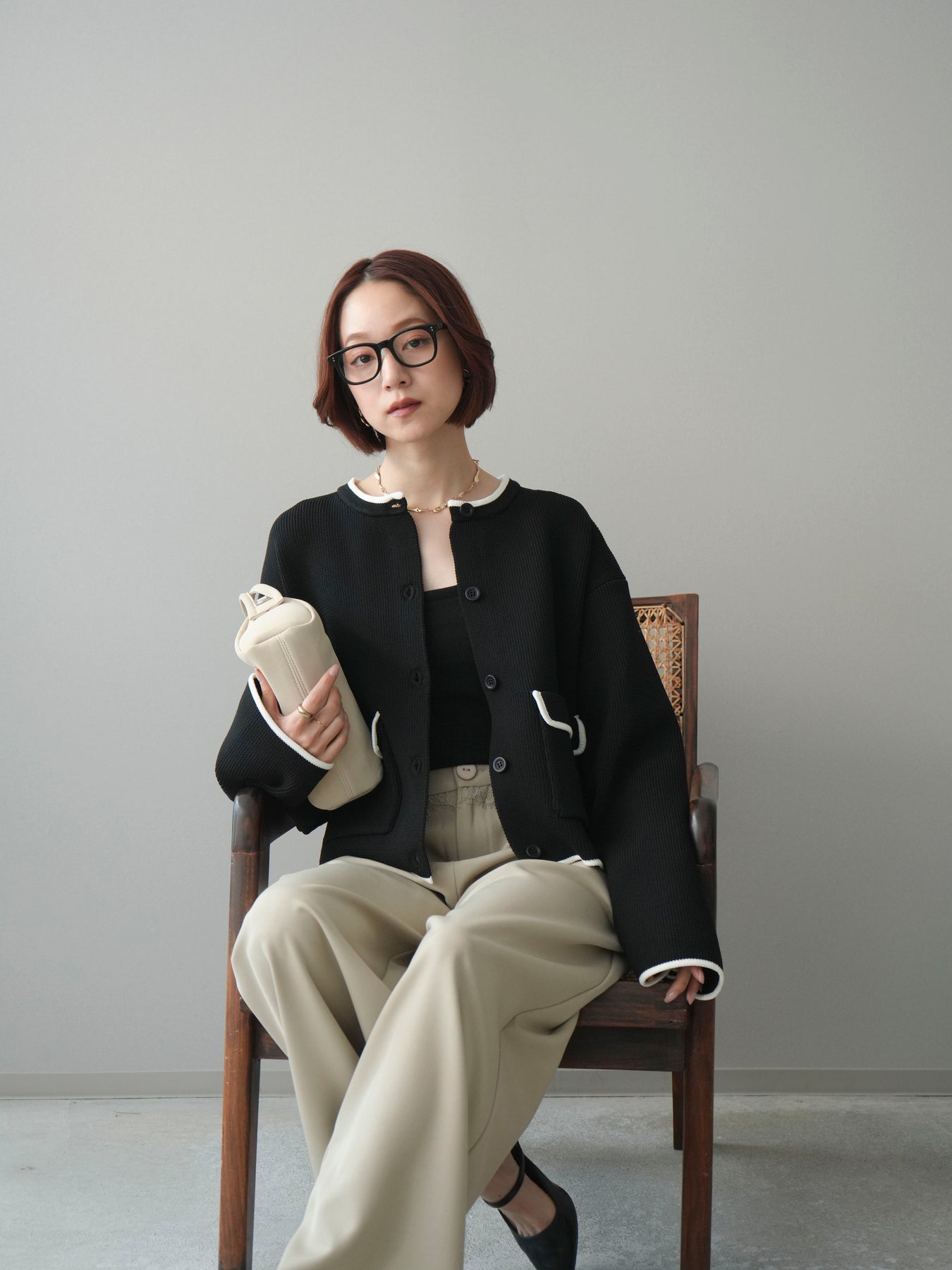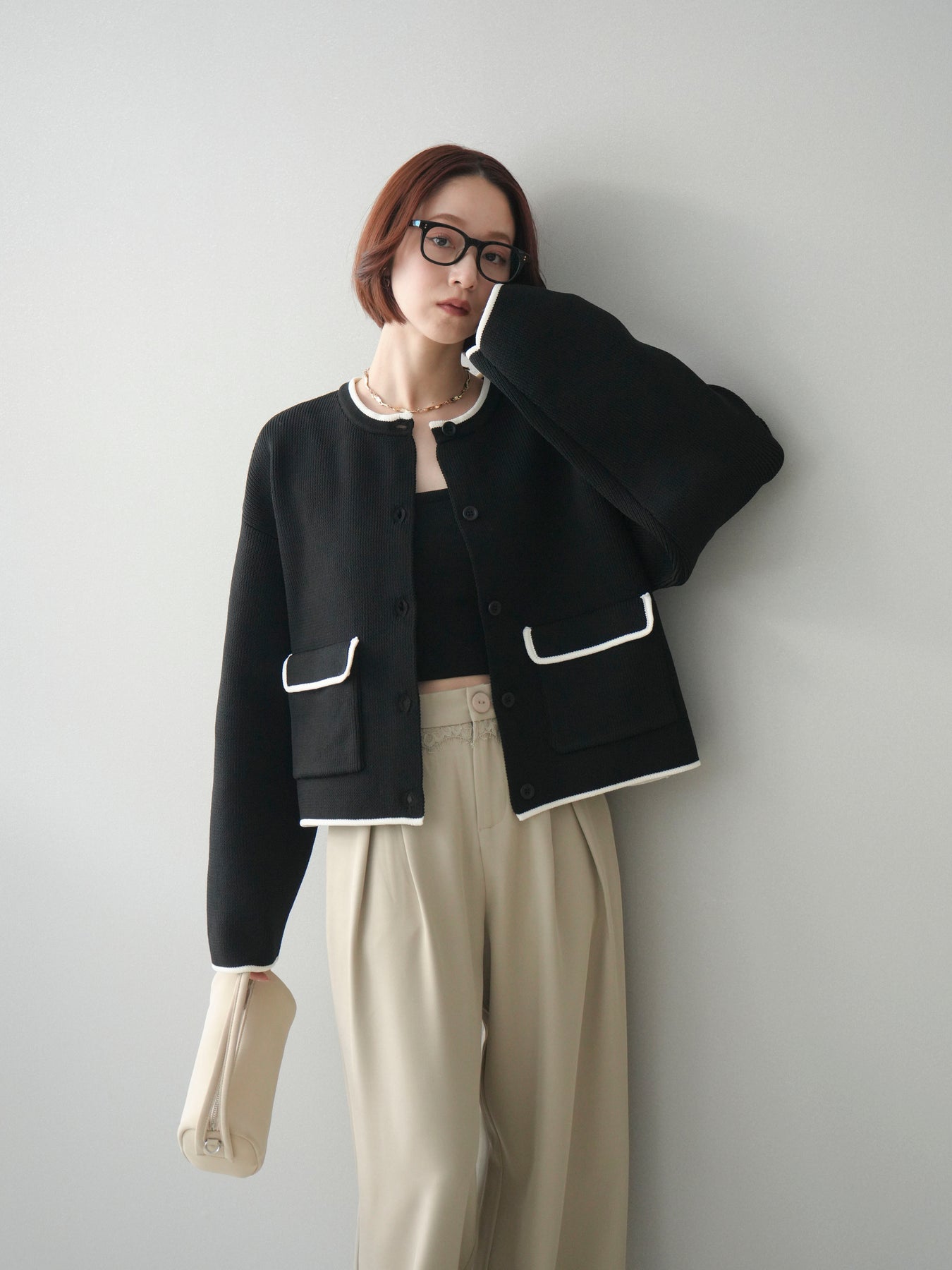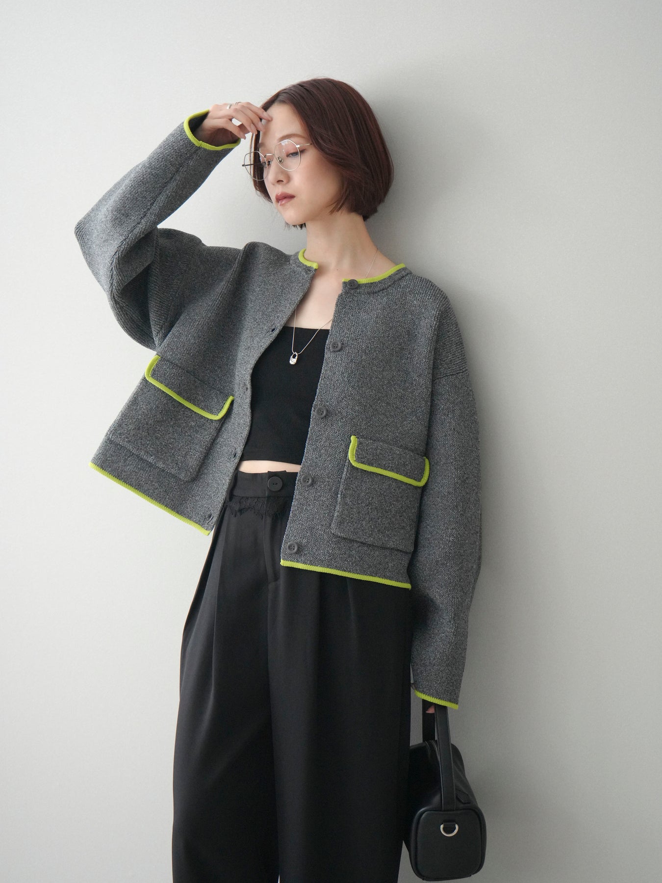 配色デザインをレイヤード風に取り入れたニットカーディガン。シンプルなシルエットに、襟元や裾、袖口から覗く配色がさりげないアクセントとなり、1枚で奥行きのあるスタイリングを叶えます。程よくゆとりのあるサイズ感で、前を閉じてトップスとしても、羽織りとしても着用可能。ベーシックながらも着映えするデザインで、カジュアルからきれいめまで幅広いコーディネートに取り入れやすい一着です。 ※ボトムス、キャミソール(インナー)以外の商品は一律でインナーは付属していません。