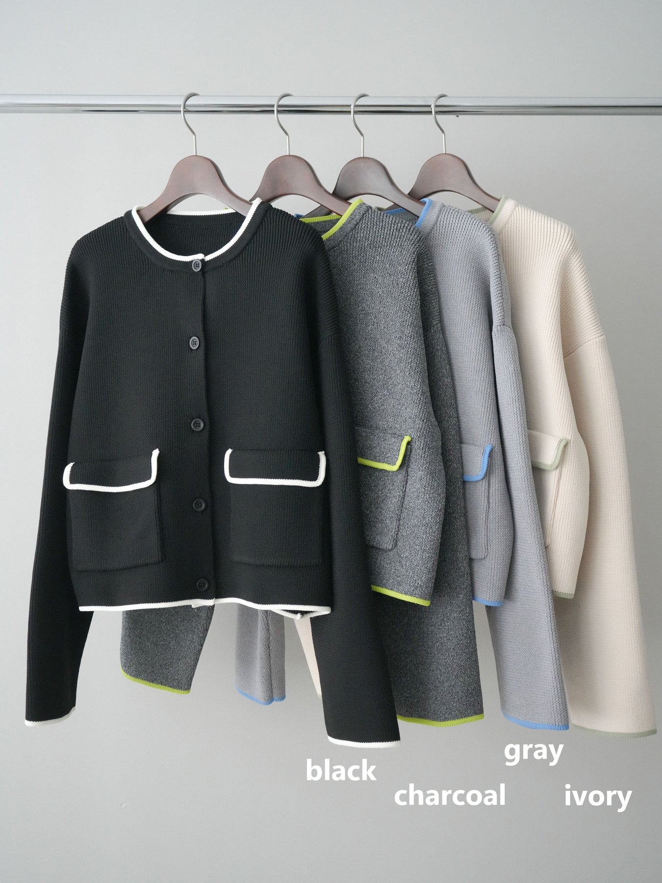 ◆ [予約]ポリエステル配色ニットカーディガン