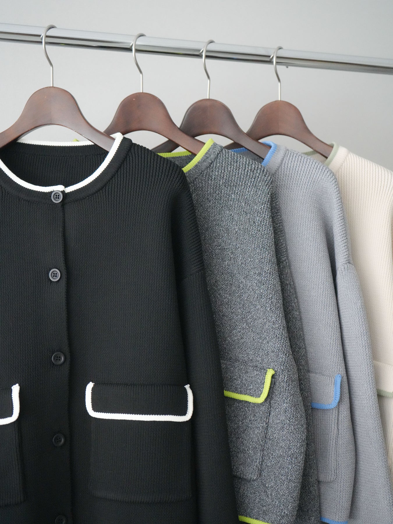 [予約]ポリエステル配色ニットカーディガン