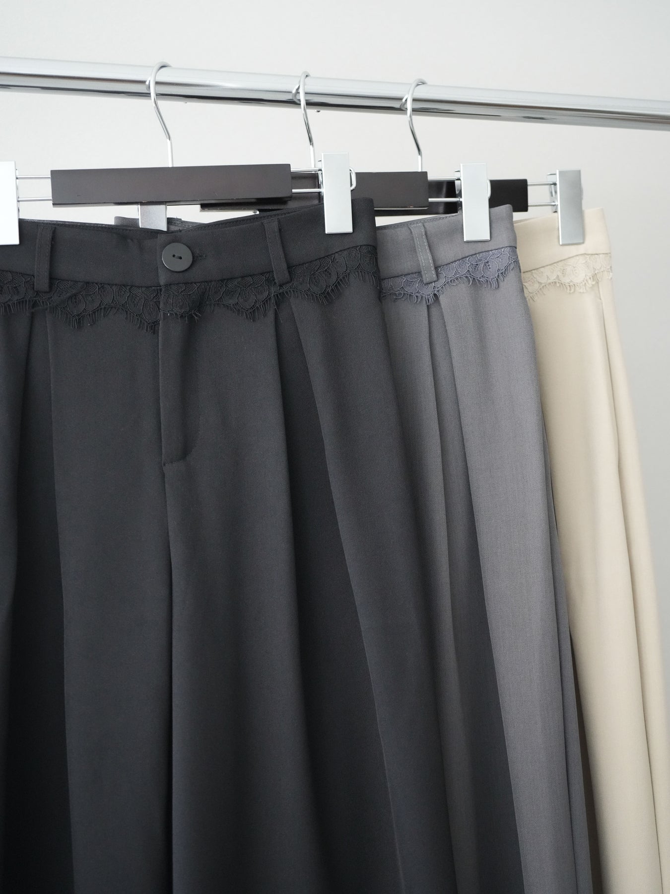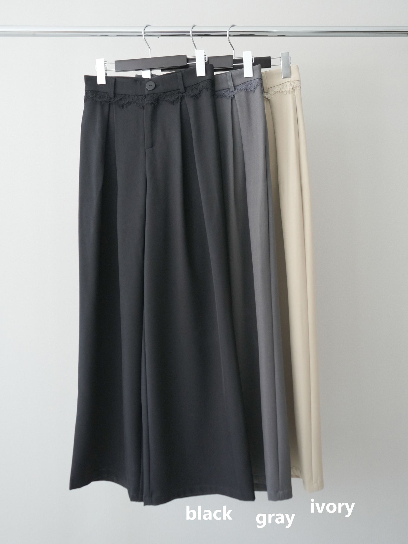 [予約]ウエストレースタックワイドパンツ