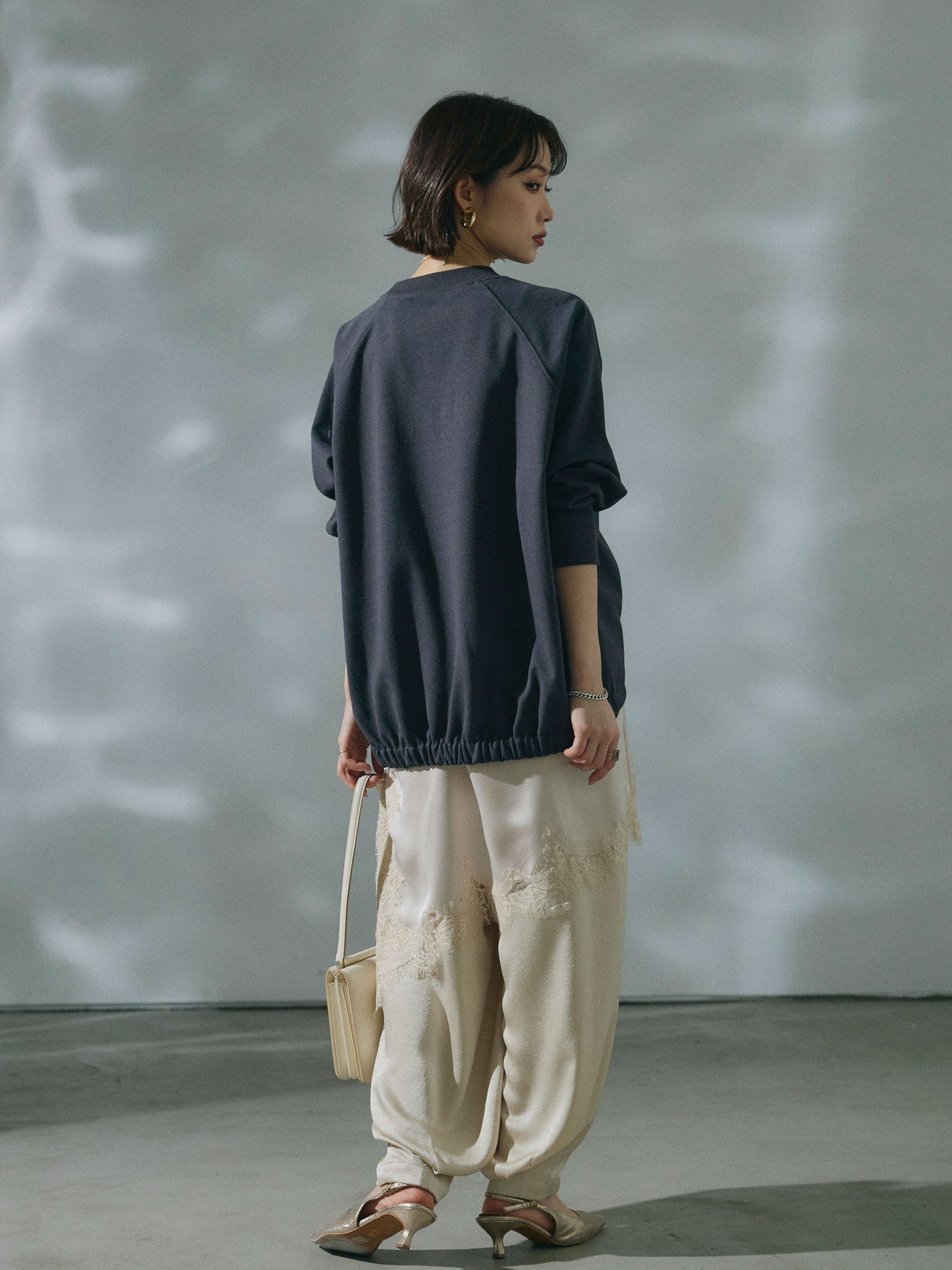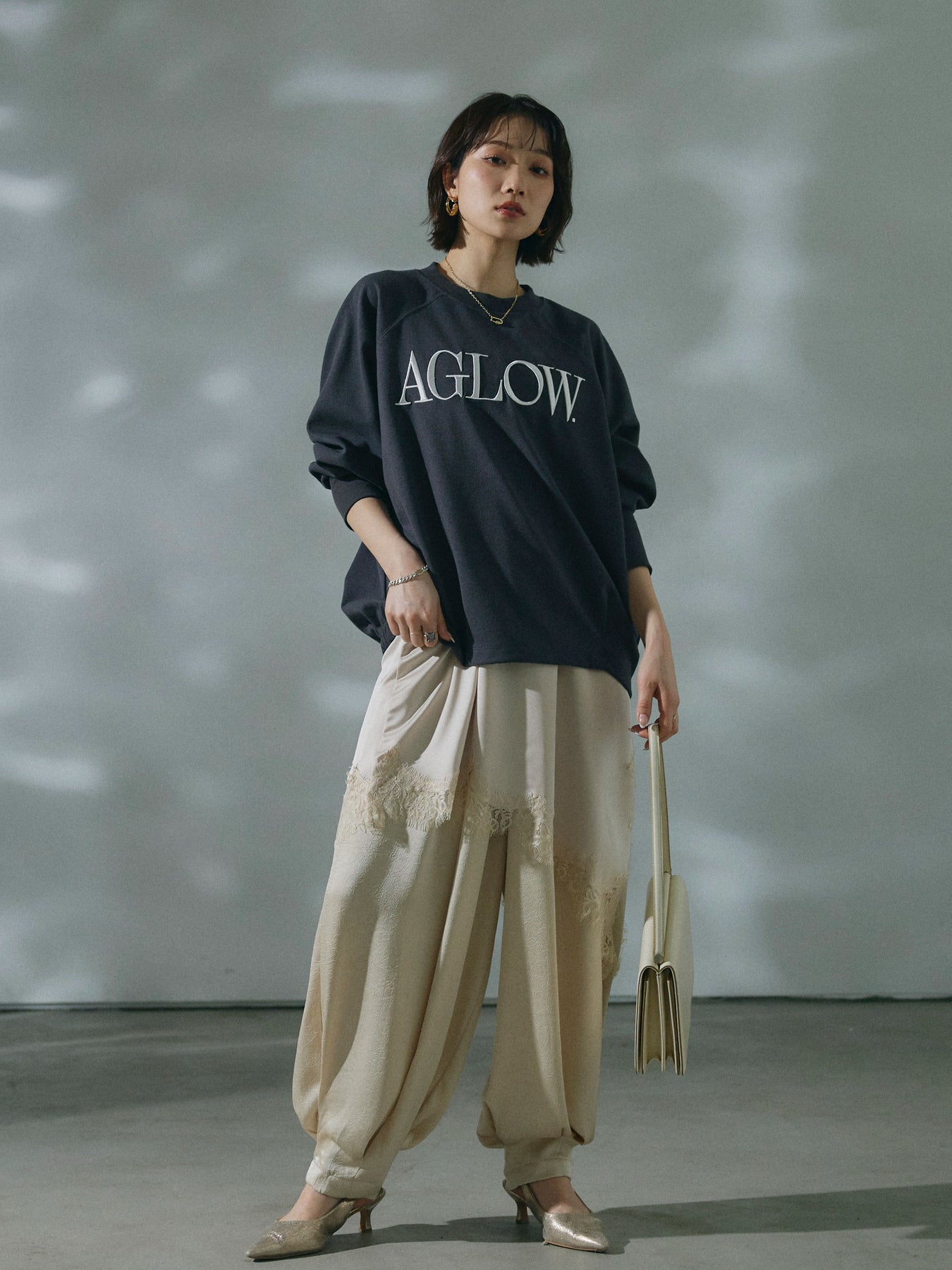 【Allure】[SET]ブークレダンボールロゴ刺繍プルオーバー+ワッシャーサテンタックジョガーパンツ(2set)