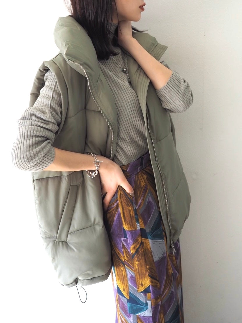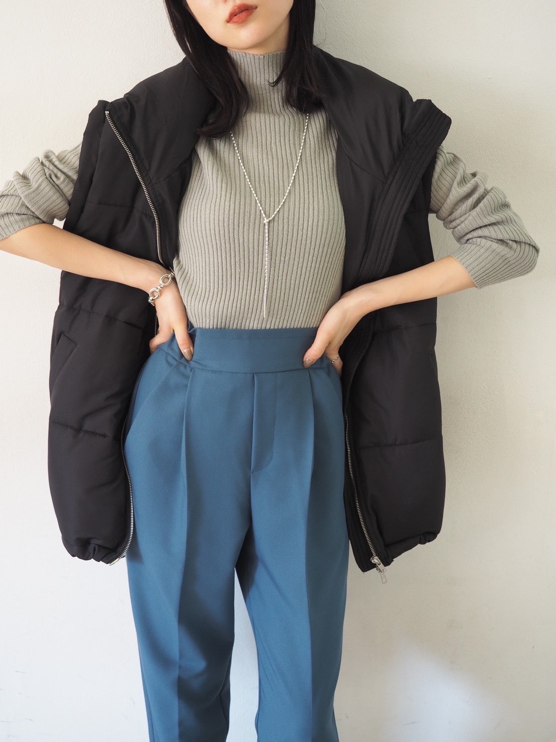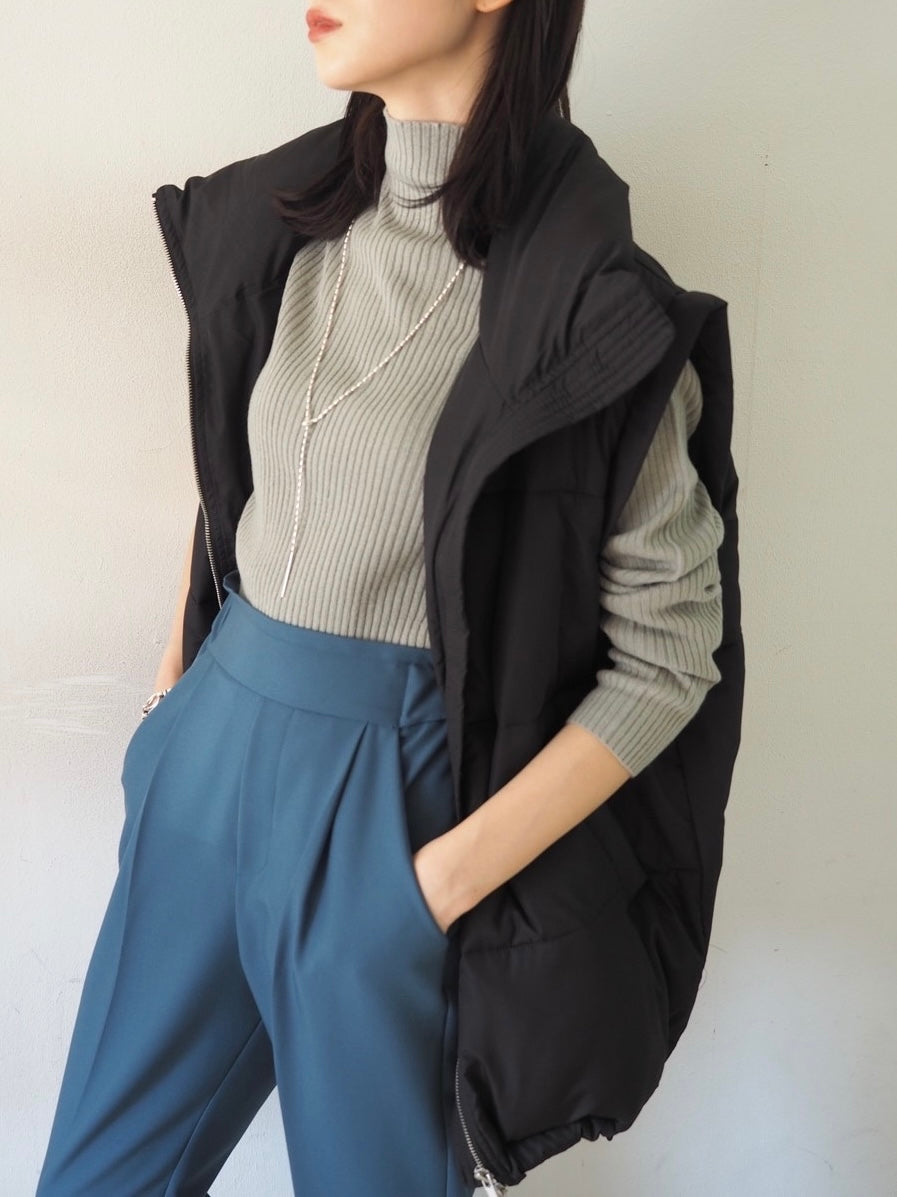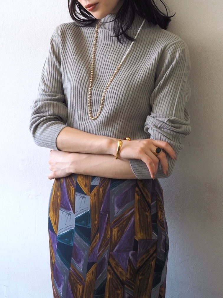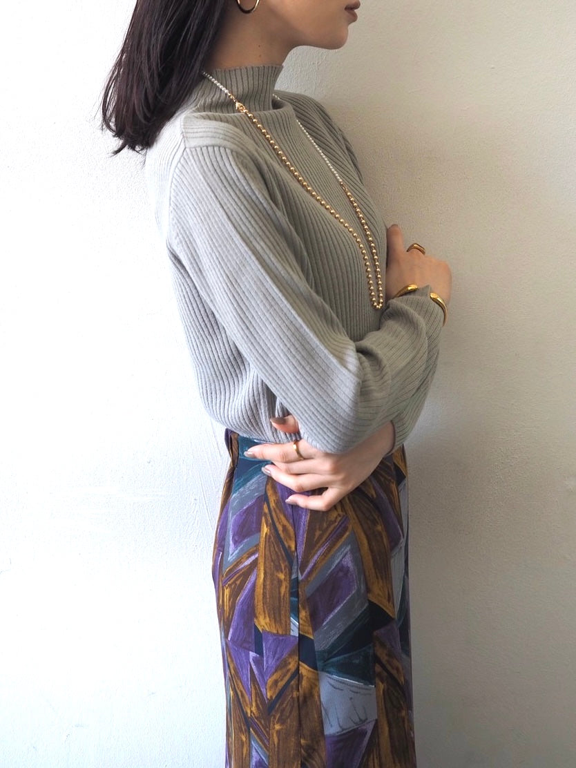 シームレスなネックラインがニュアンスを生むモックネックニットは、リブ素材で着心地の良い一着です。さりげなくドロップショルダーで切り替えることにより、リラックス感がプラスされています。適度に体にフィットするサイズ感で、そのままではもちろん、インナーとしても重宝します。色違いで抑えておくのもおすすめの、秋冬ヘビロテ間違いなしの一着です。