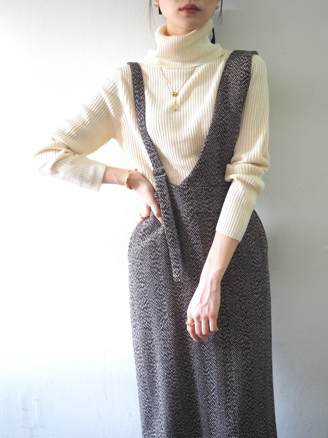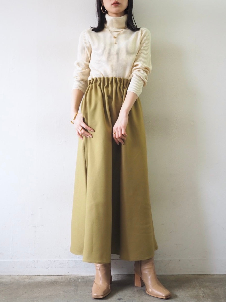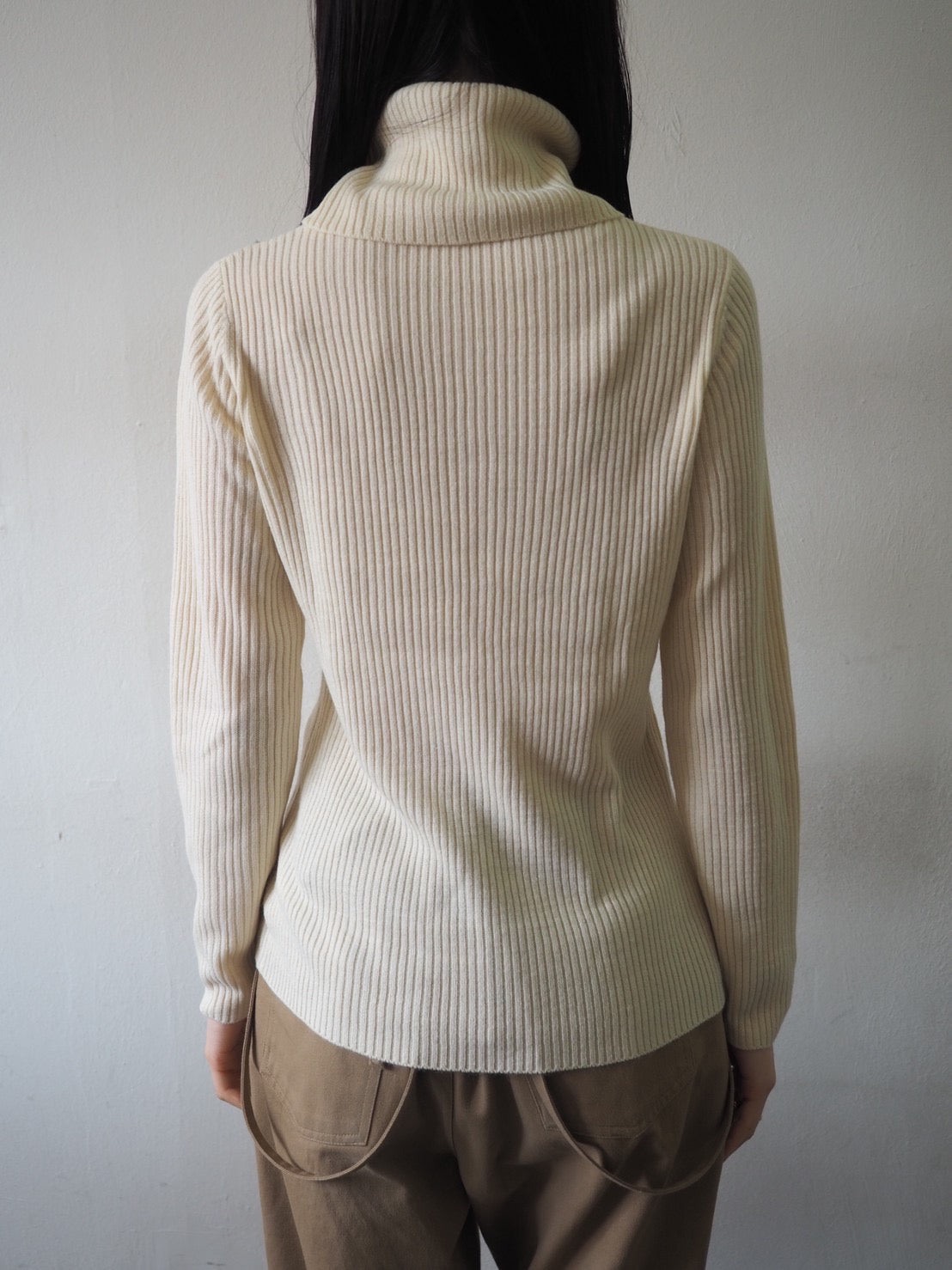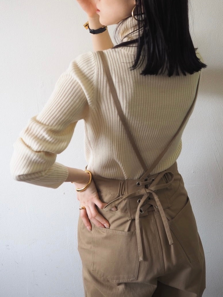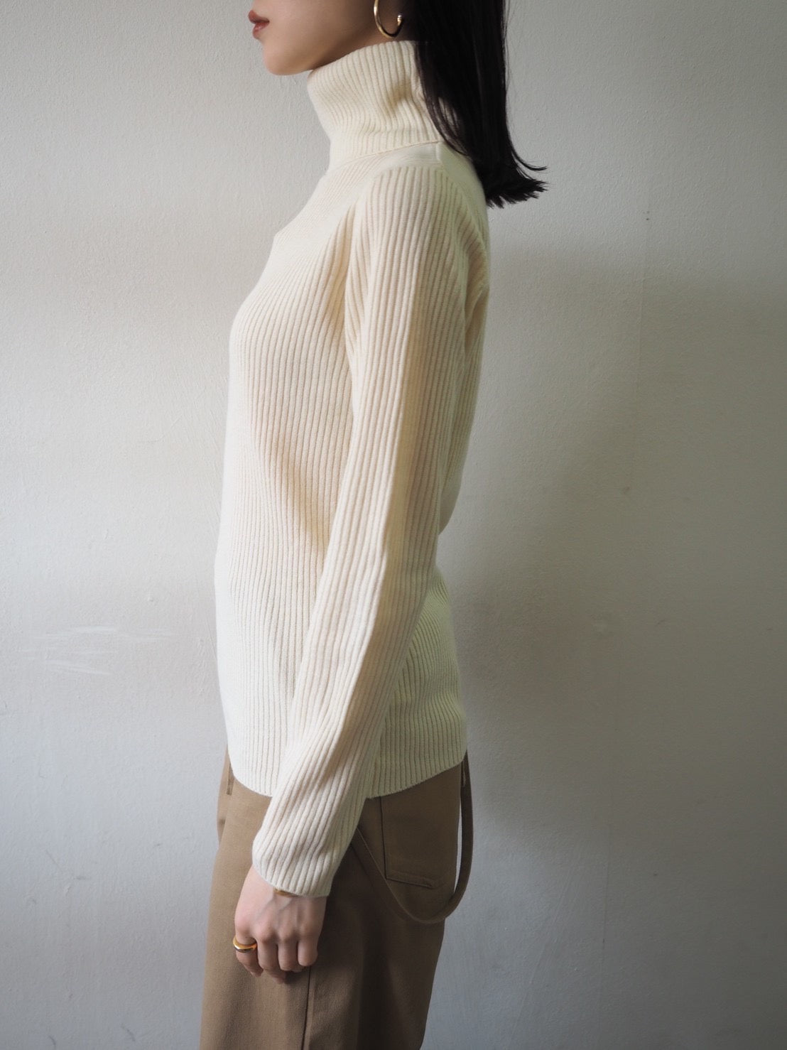 秋冬のスタイリングに欠かせないリブタートルネックニットは、スタンダードなデザインで着回し力に優れた一着です。ネック部分は折り返しを大きくしたボリュームが出る仕様で、クシュクシュと弛ませるなど、印象変えができます。そのままではもちろん、ベストやカーディガン、ジャンスカのインナーとしても重宝し、シーンレスに取り入れていただけます。