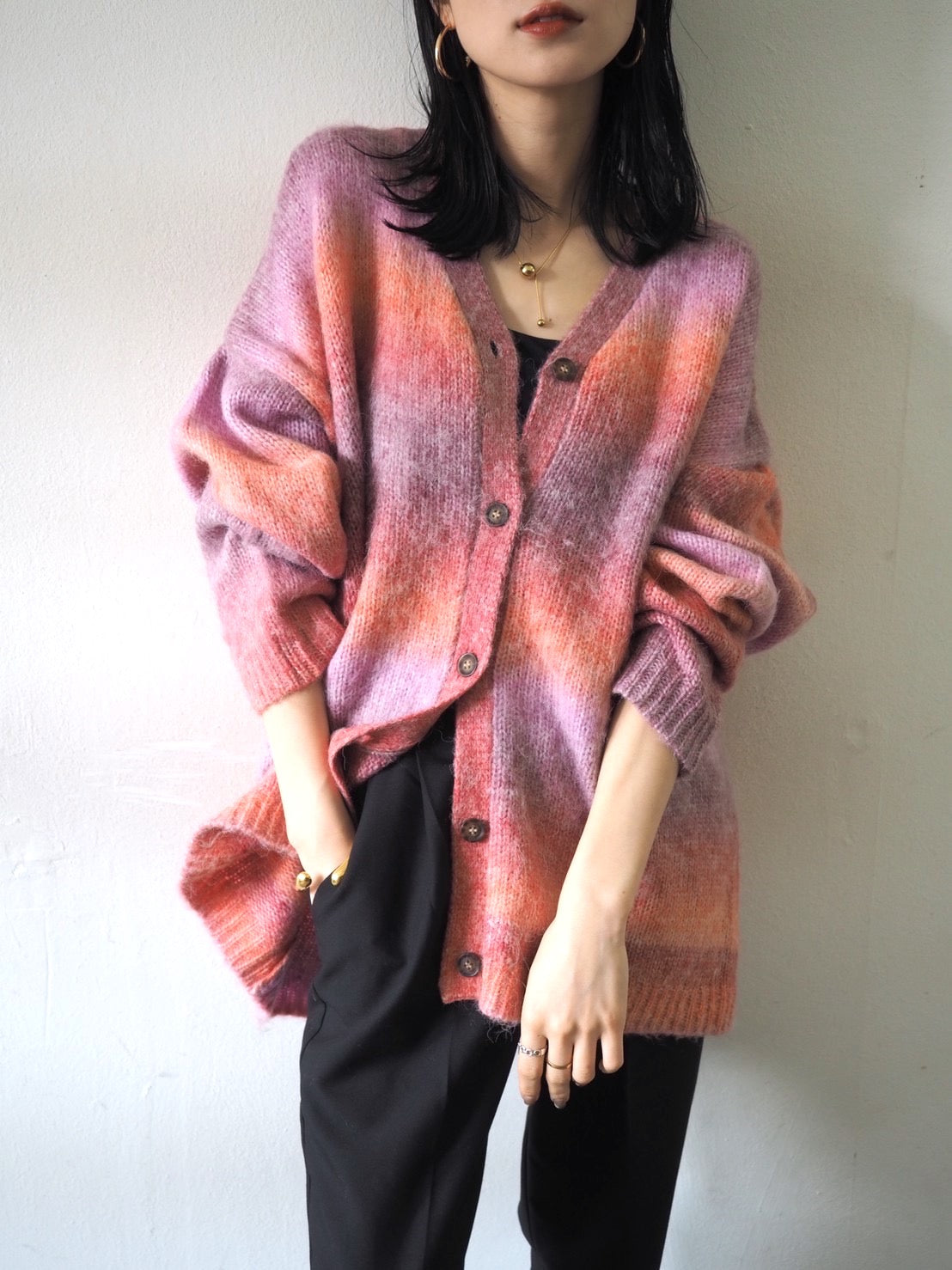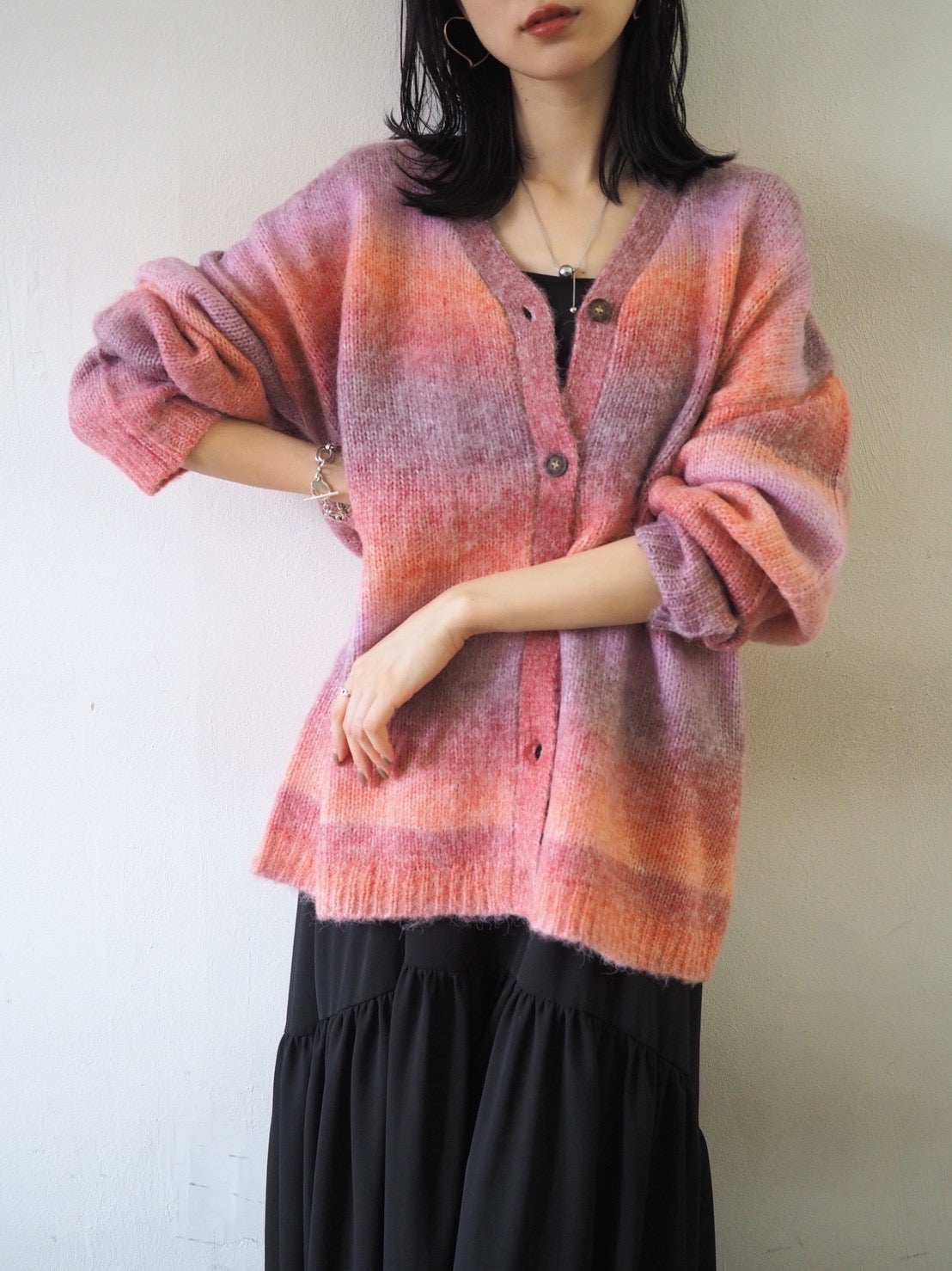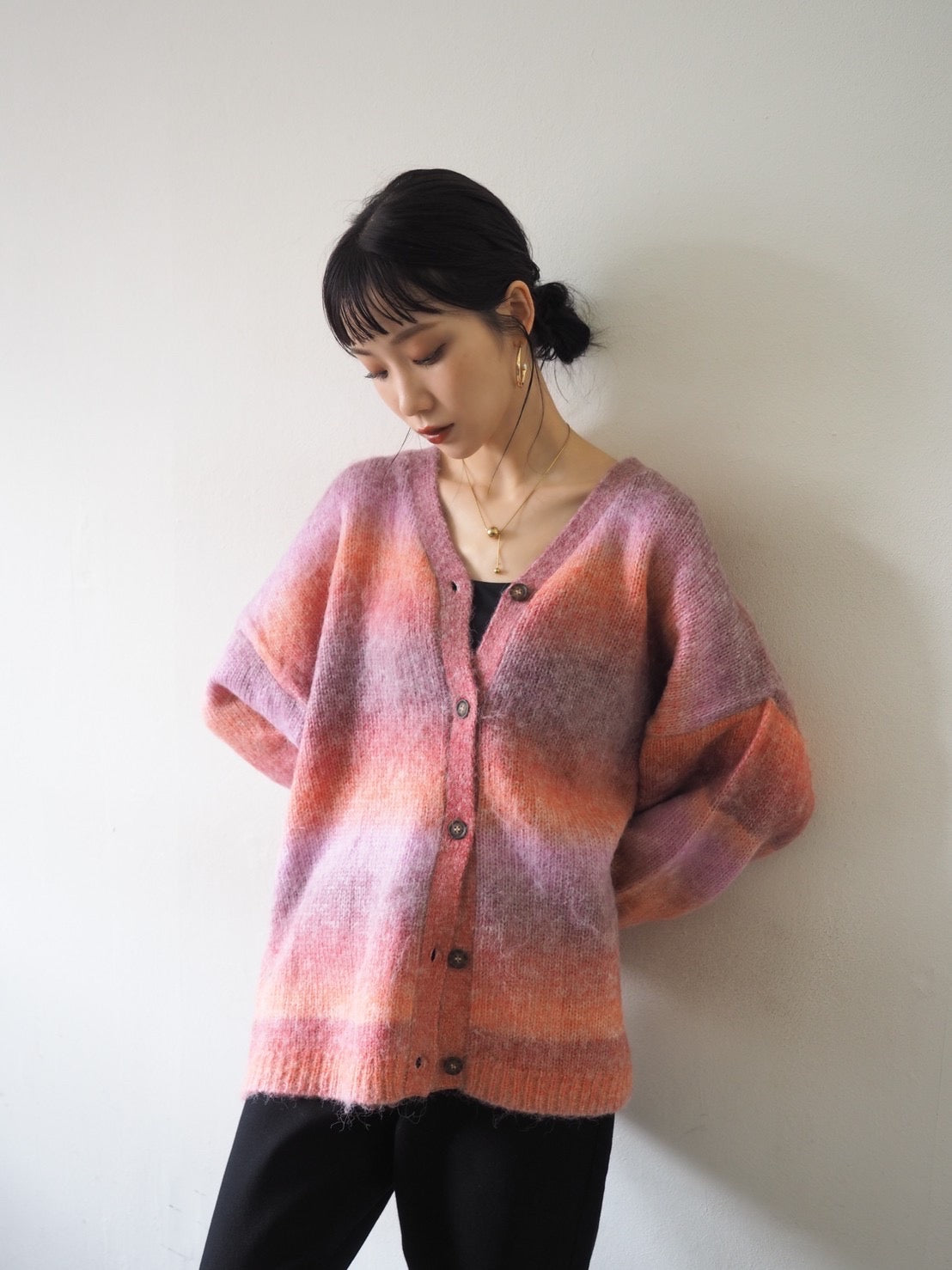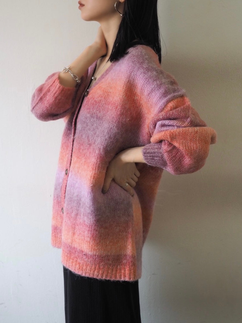 [予約]グラデーションオーバーシャギーニットカーディガン/ピンク