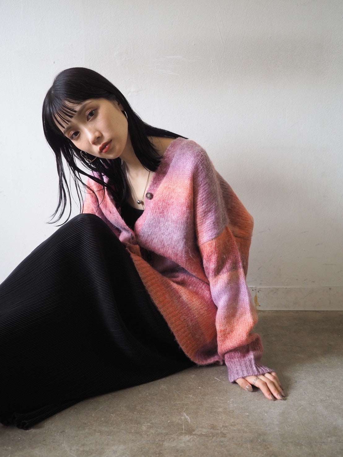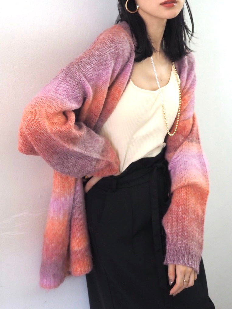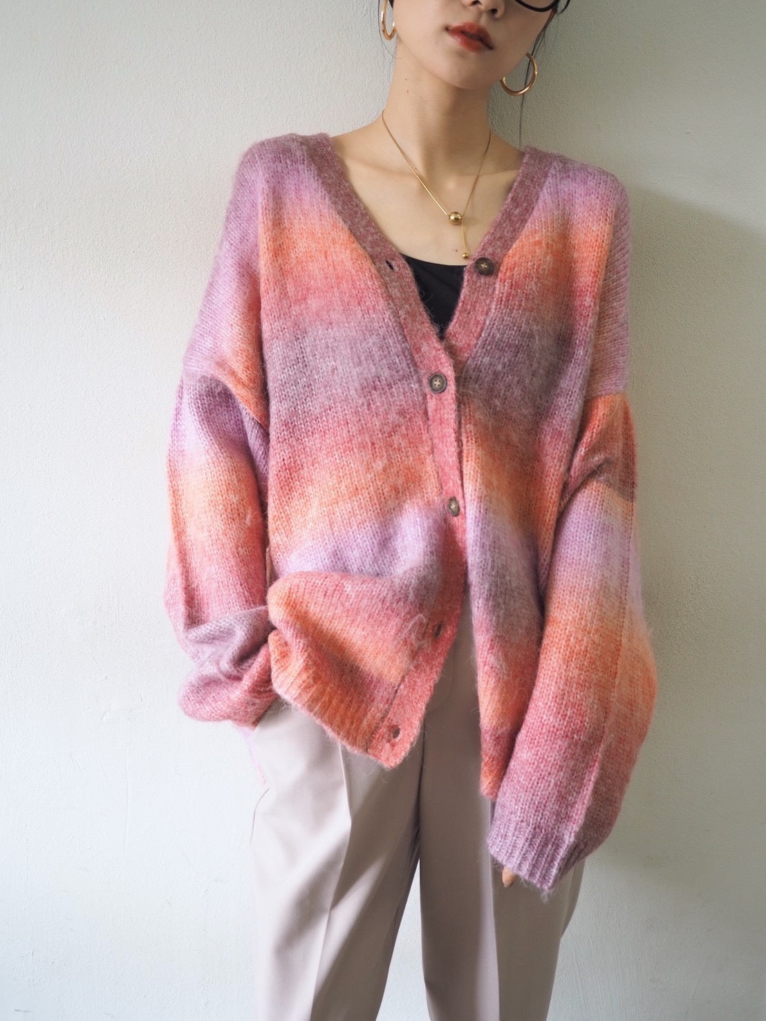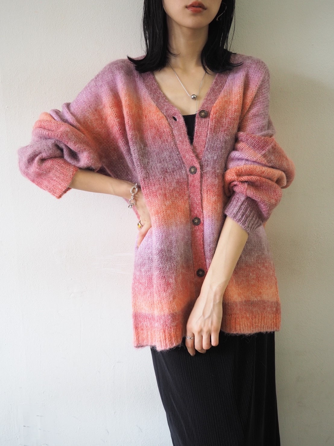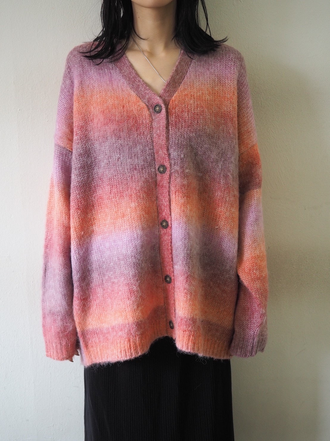 [予約]グラデーションオーバーシャギーニットカーディガン/ピンク