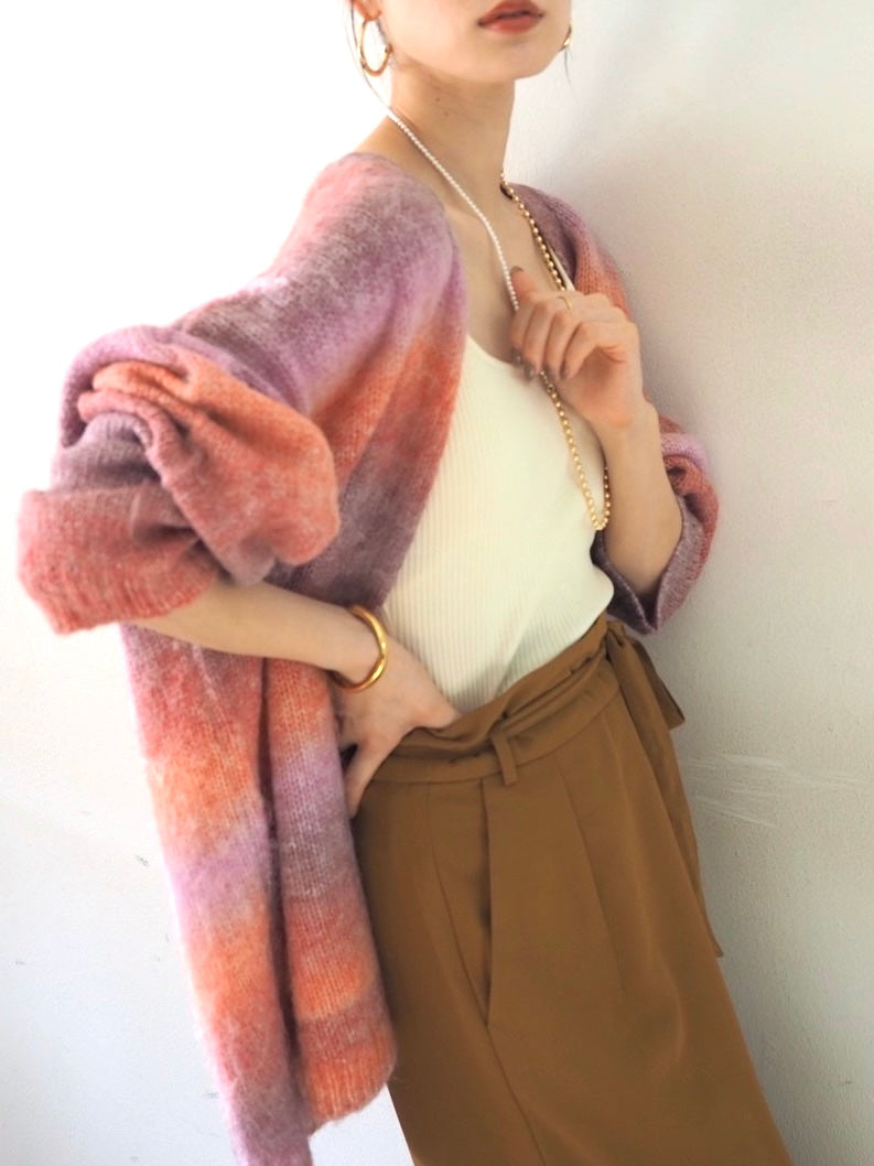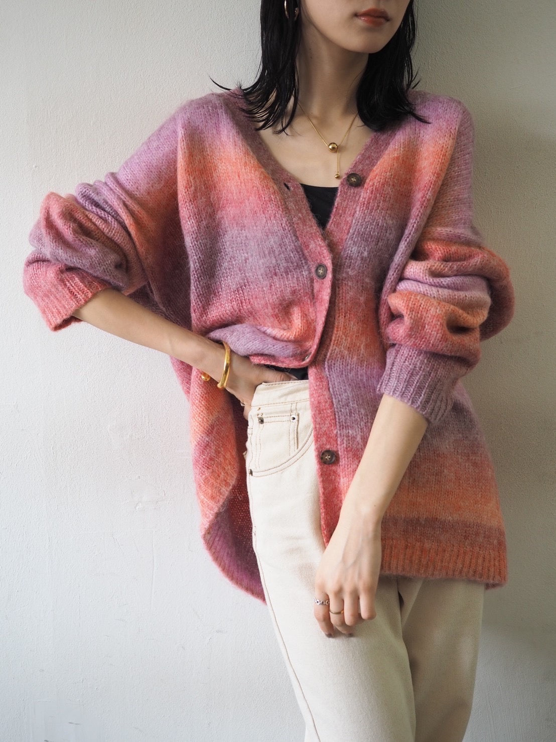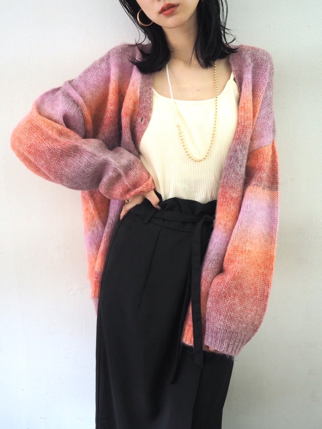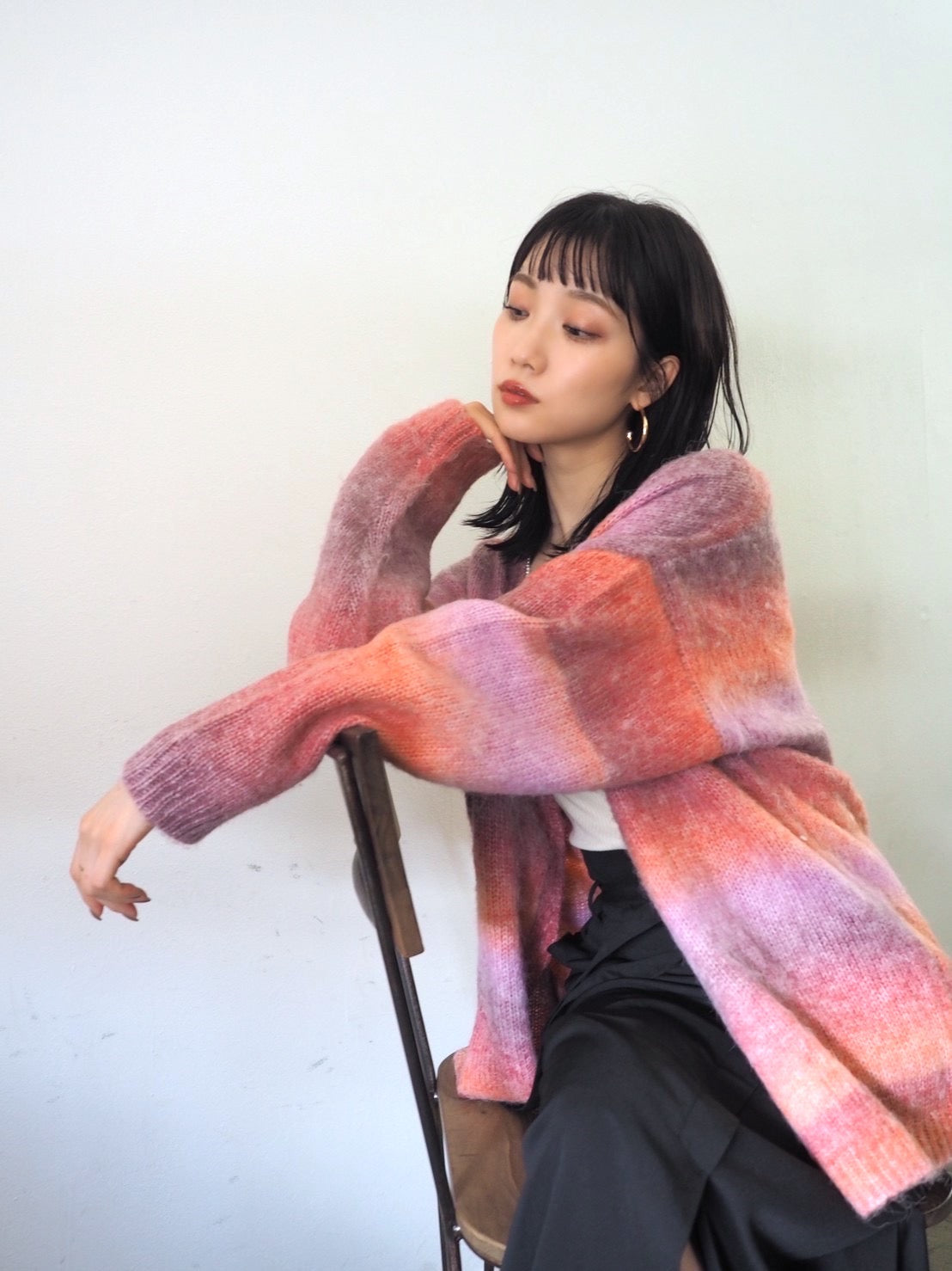 [予約]グラデーションオーバーシャギーニットカーディガン/ピンク