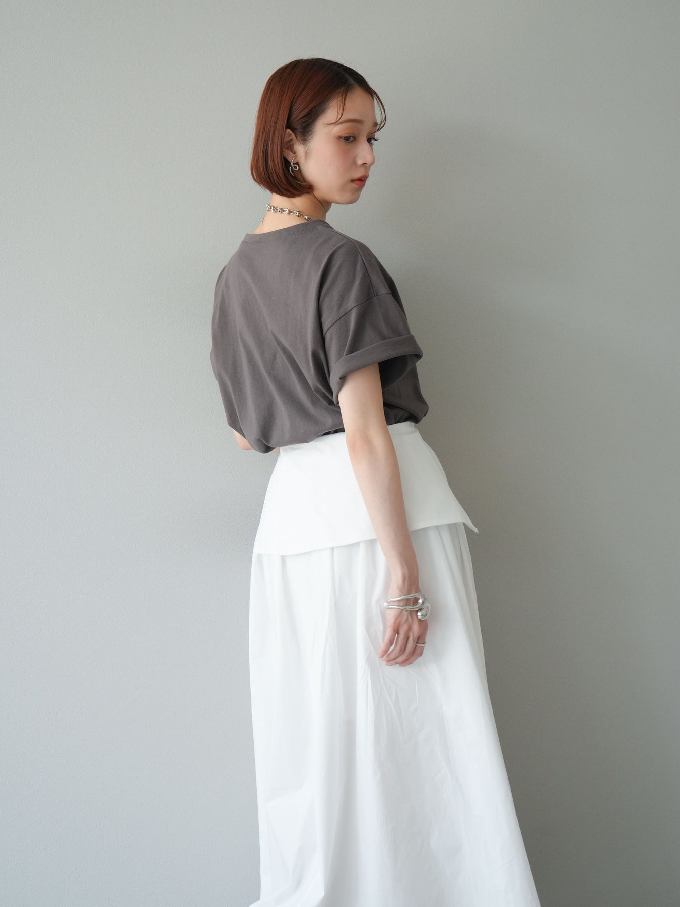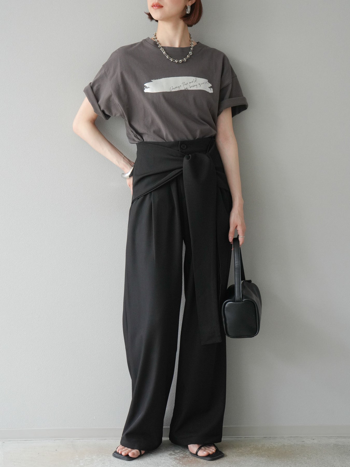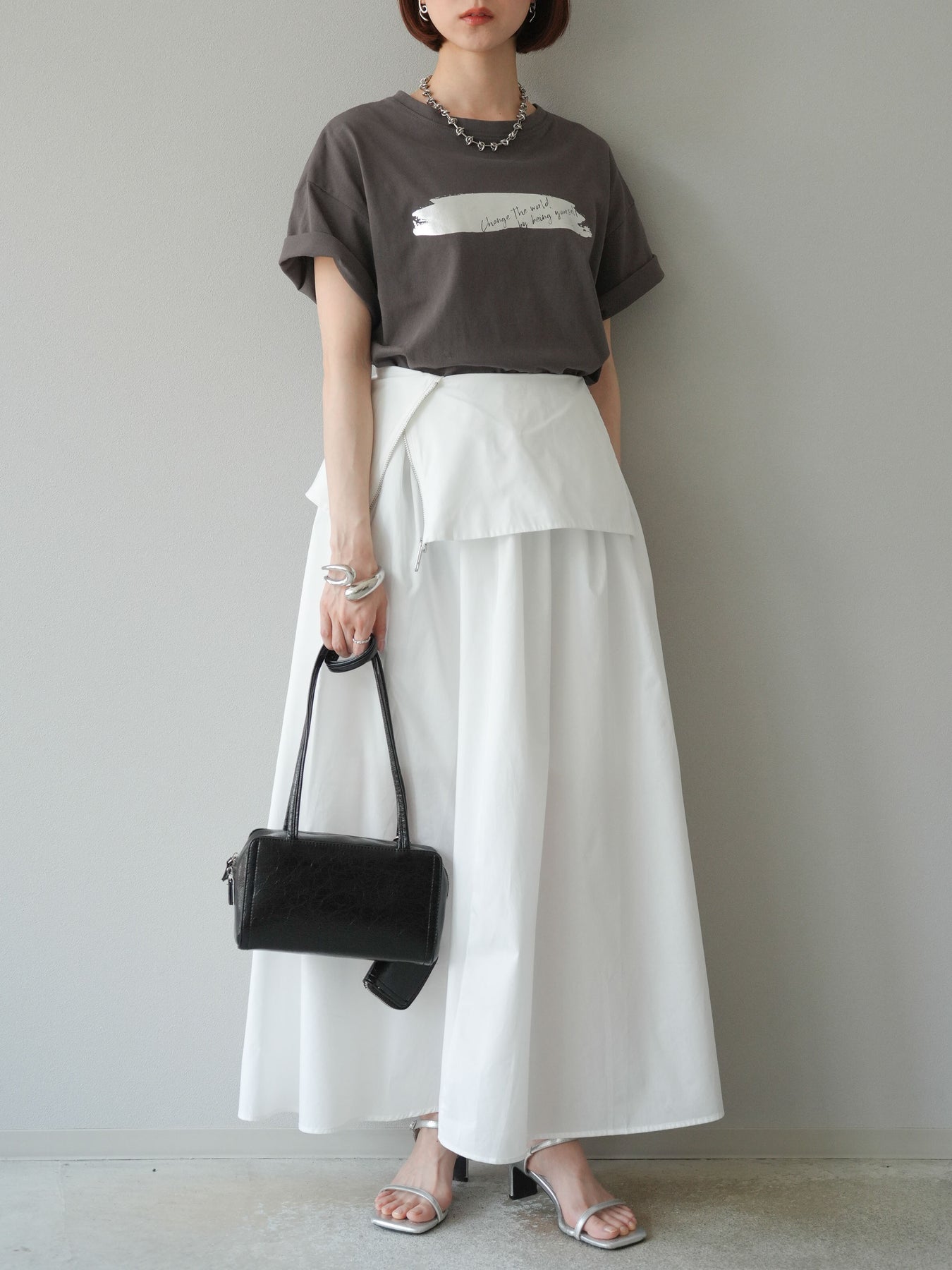 シンプルなデザインに箔プリントがアクセントとなったTシャツ。胸元に施された箔プリントがスタイリッシュな印象を与え、シンプルながらも存在感のある一枚です。ゆったりとしたシルエットでリラックス感のある着心地を提供し、カジュアルなコーディネートにぴったりです。 ※ボトムス、キャミソール(インナー)以外の商品は一律でインナーは付属していません