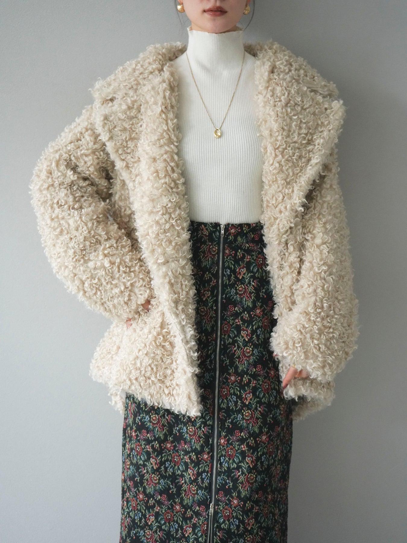 [予約]プードルファーダブルミドルコート/ivory