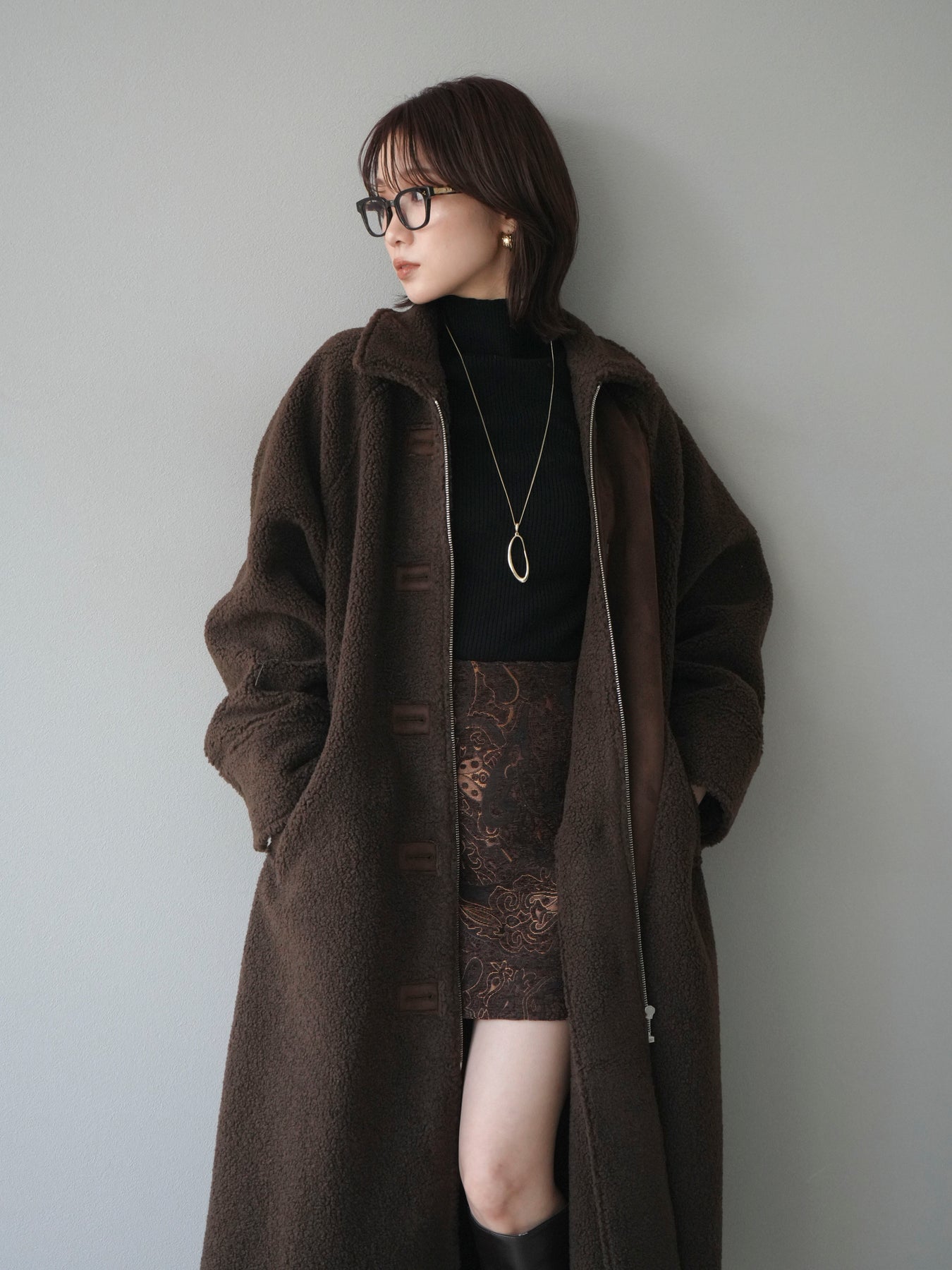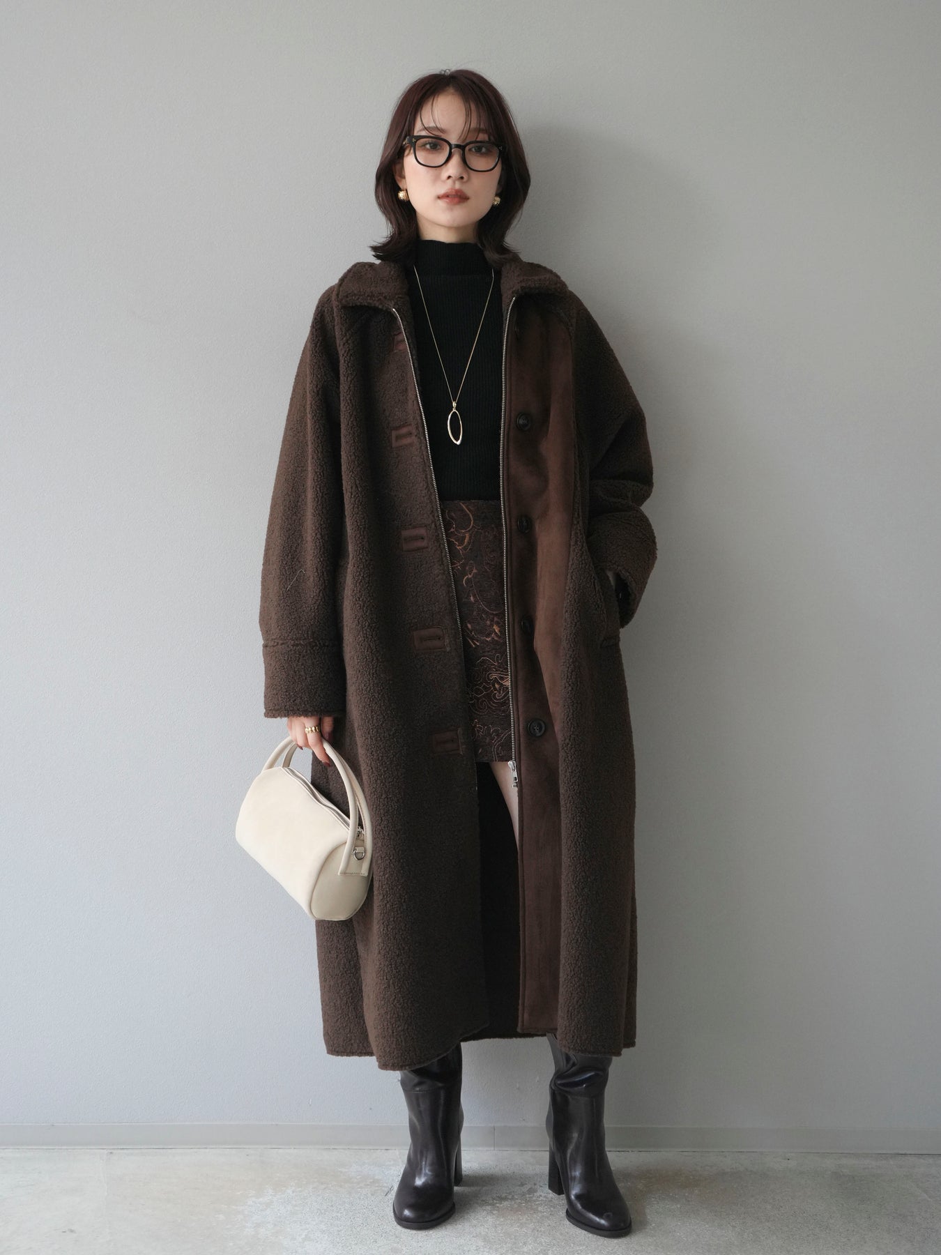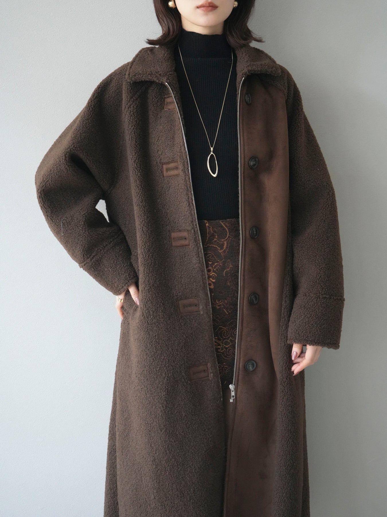 [予約]ボアxムートンロングコート/brown