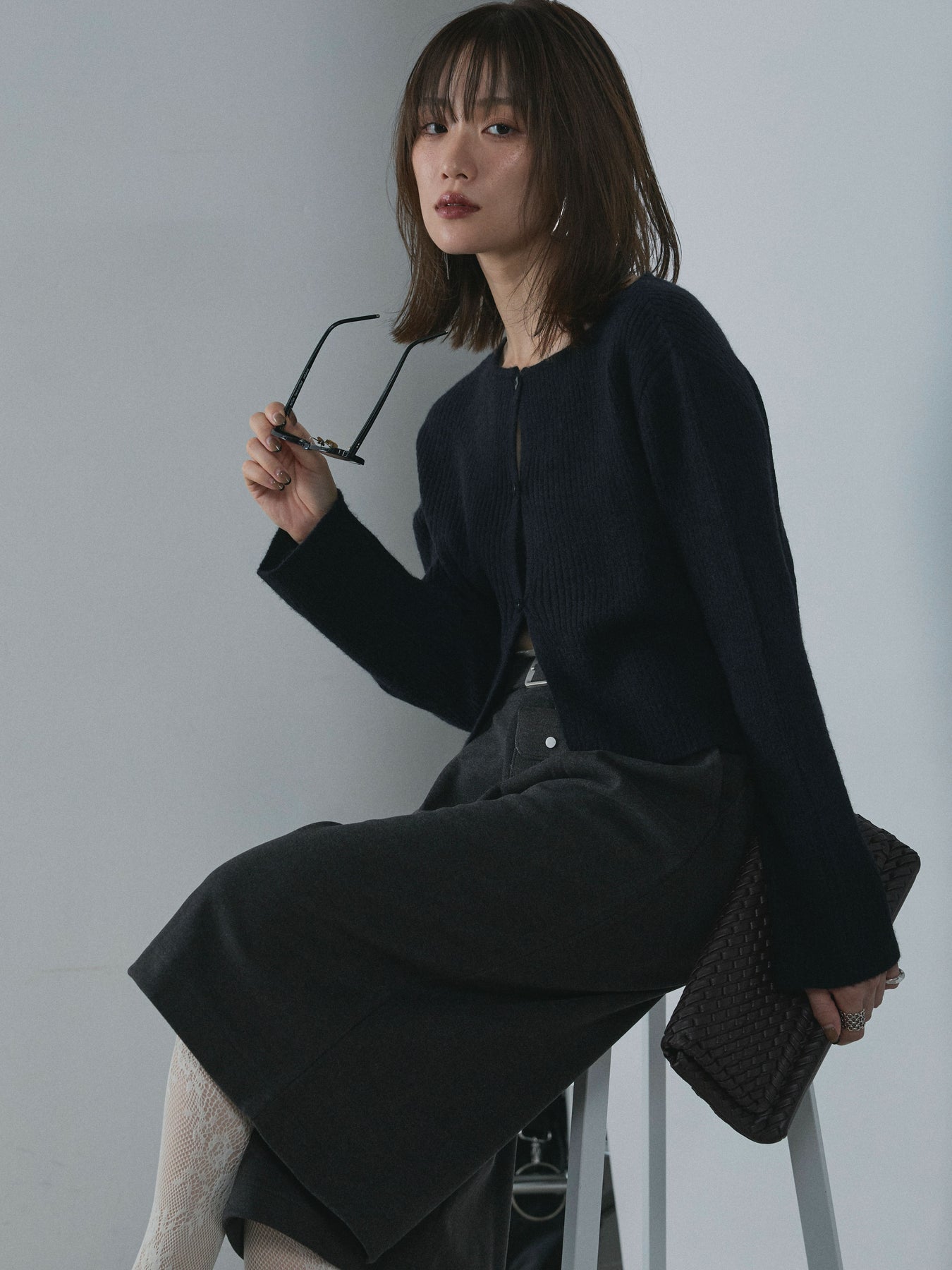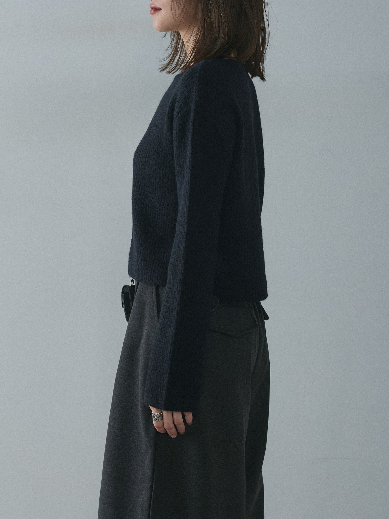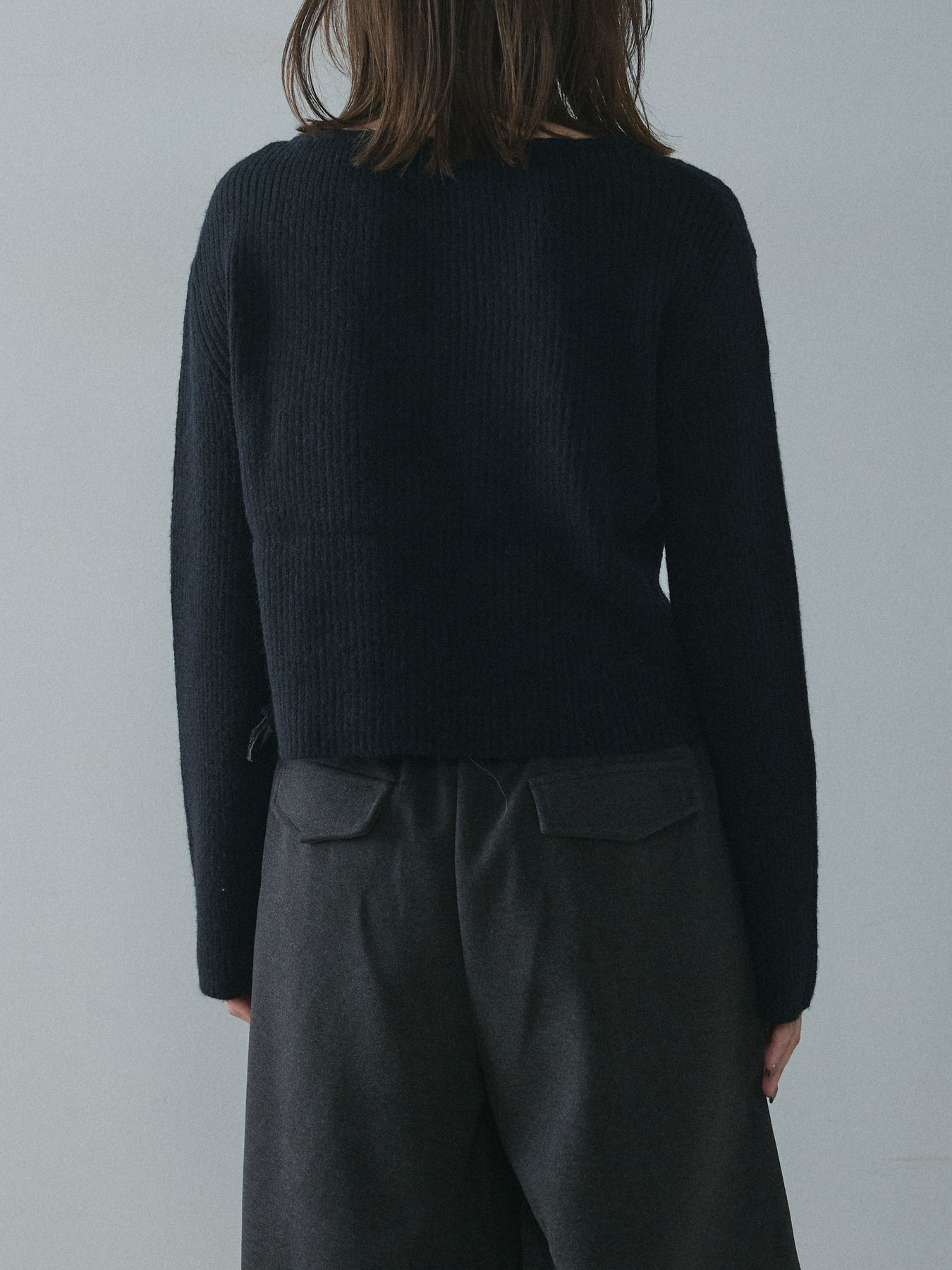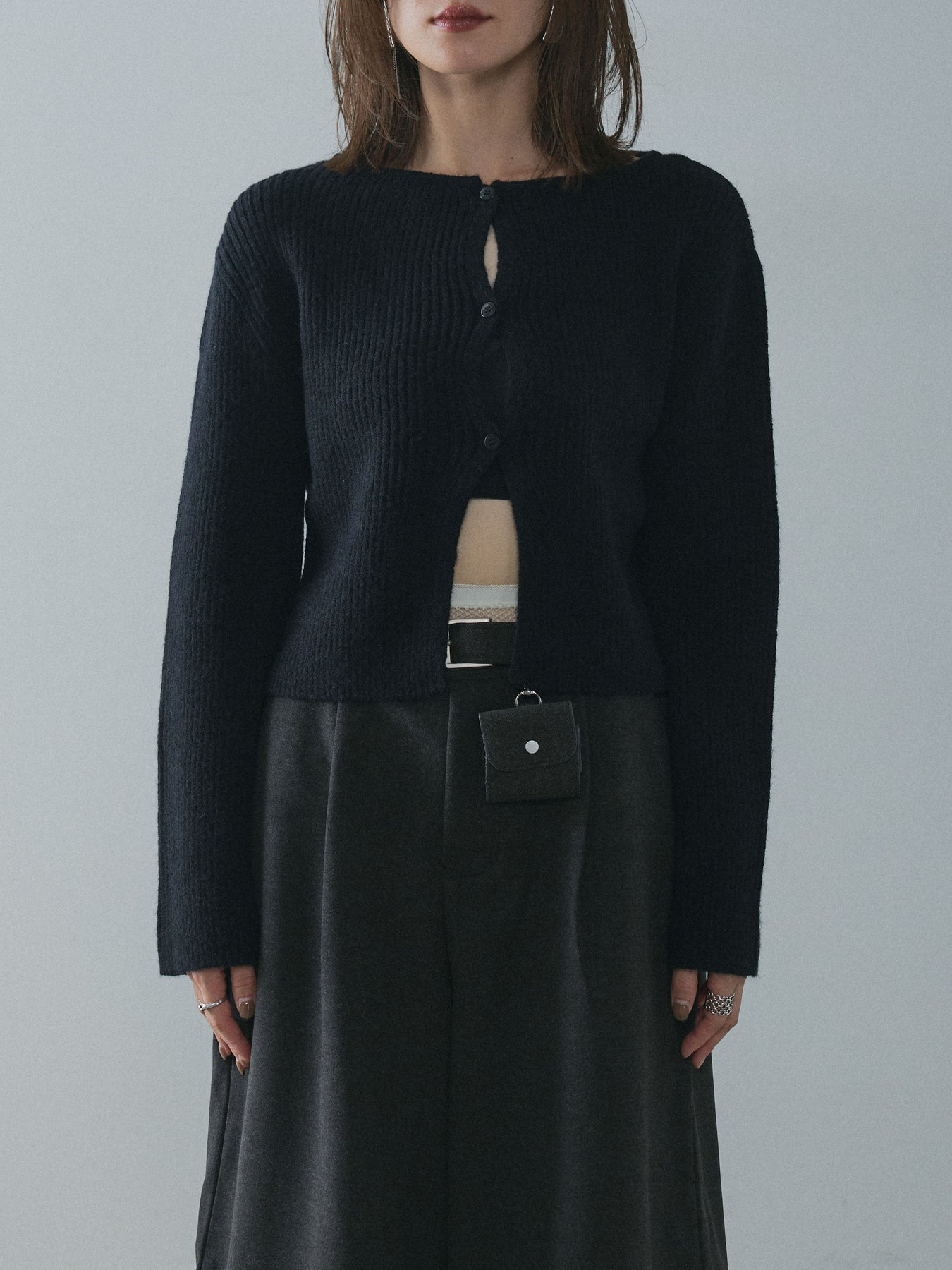 [予約]デザインショートニットカーディガン/black