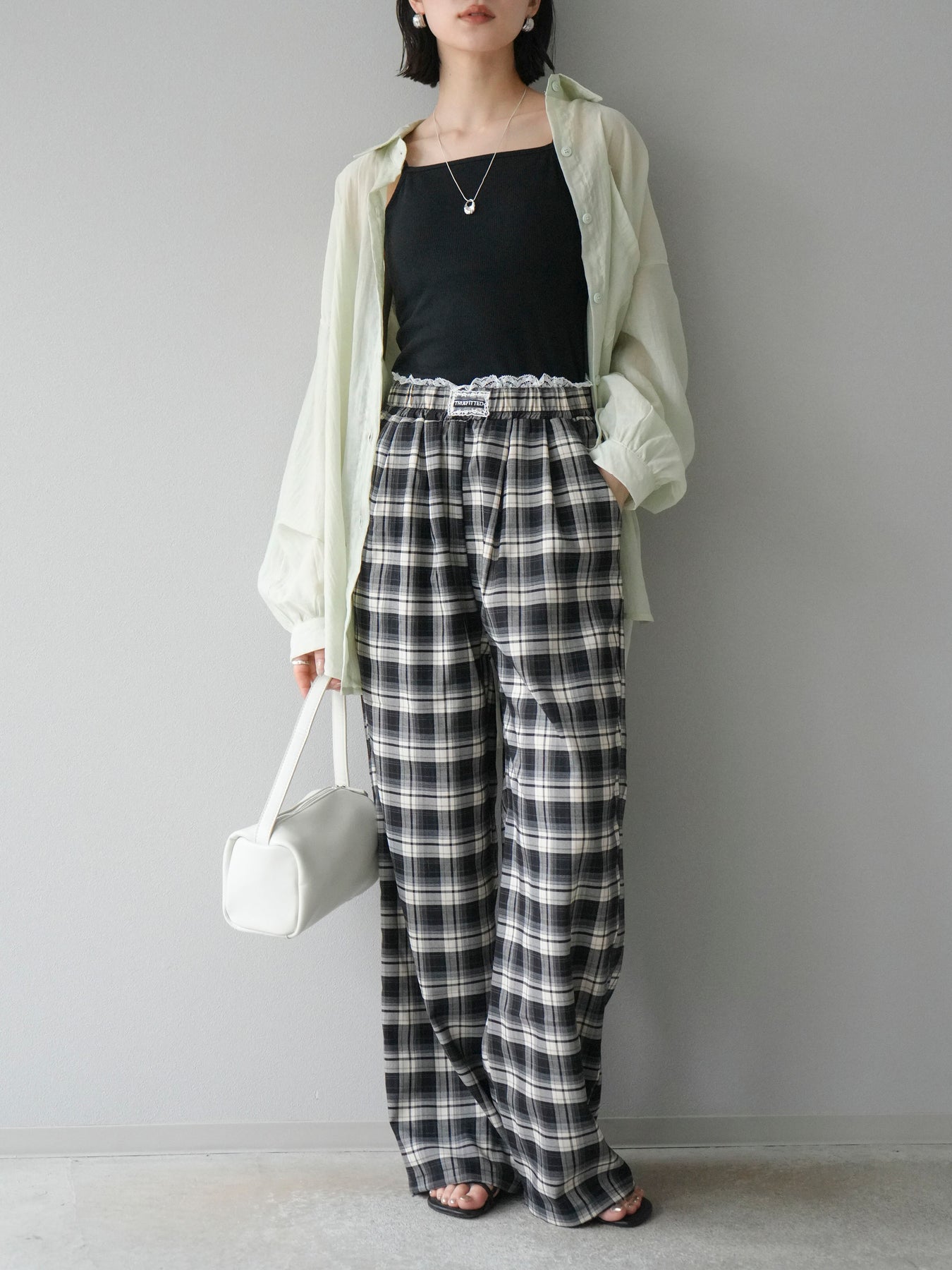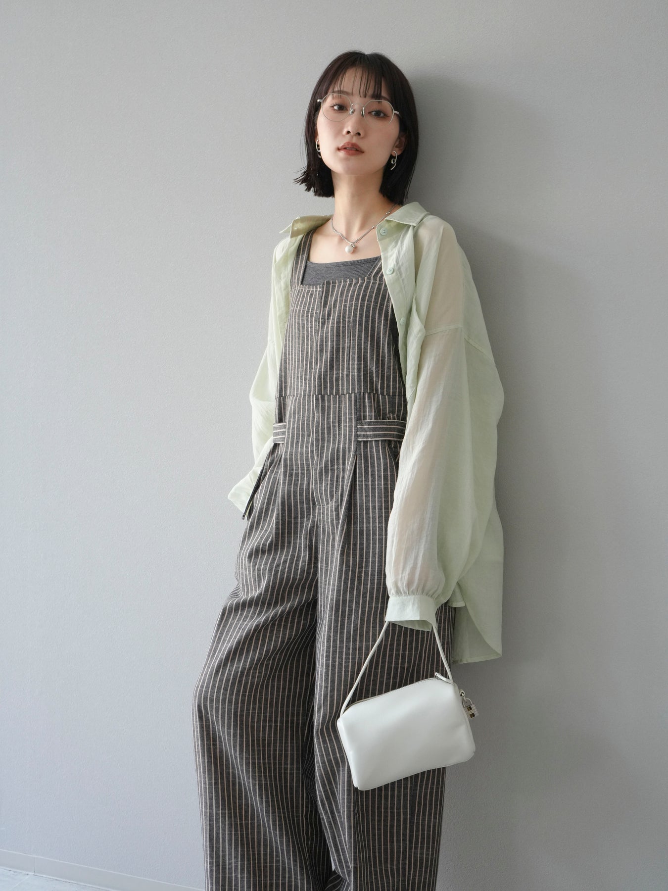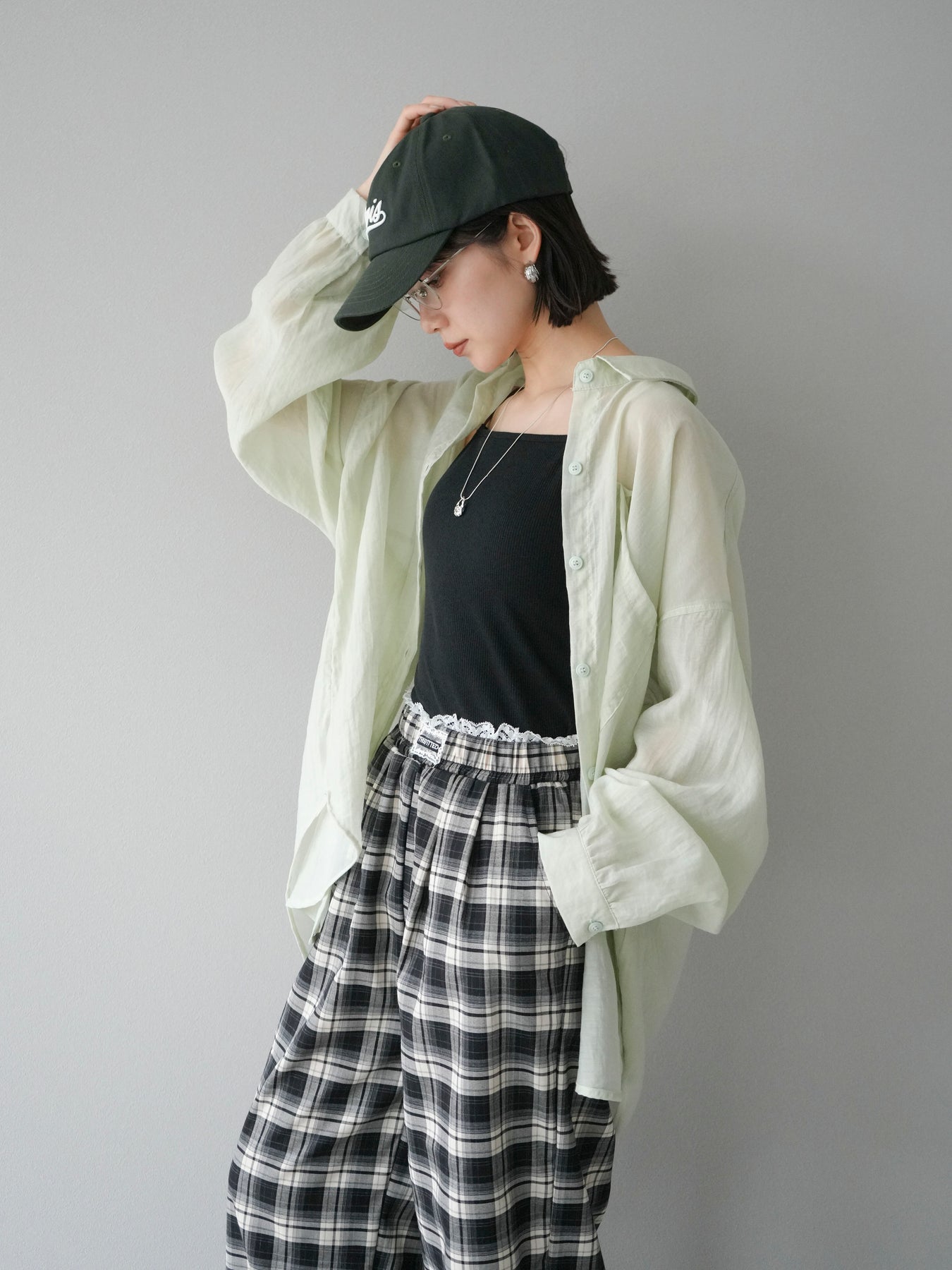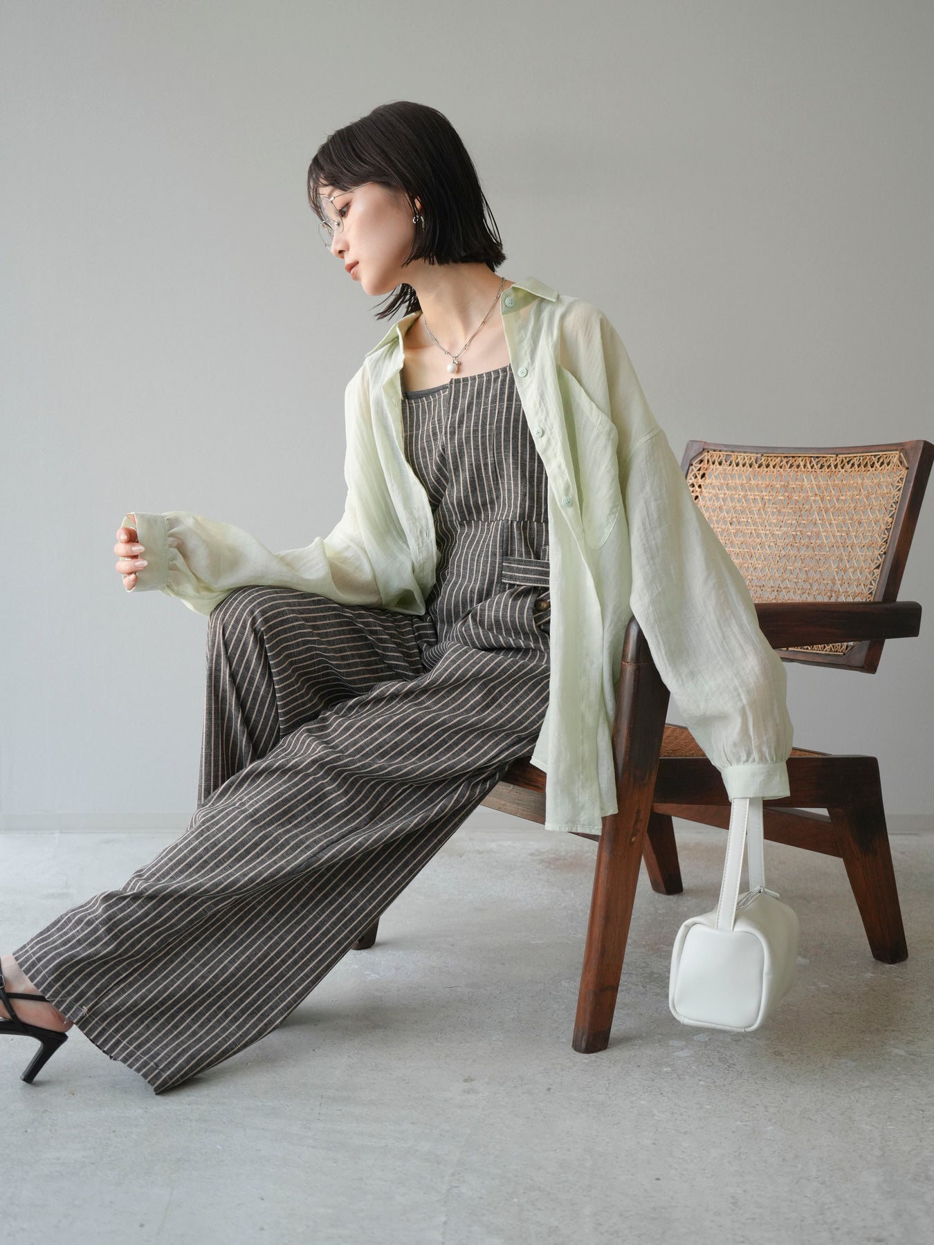 軽やかなシアー素材を使用したオーバーシャツ。ドライタッチな風合いが涼しげで、春夏にぴったりの一枚です。ゆったりとしたシルエットで、リラックスした着心地を提供し、シンプルながらも清涼感のあるスタイルを演出します。ワイドな袖と、前開きのデザインがアクセントとなり、さまざまなコーディネートに活躍するアイテムです。 ※ボトムス、キャミソール(インナー)以外の商品は一律でインナーは付属していません