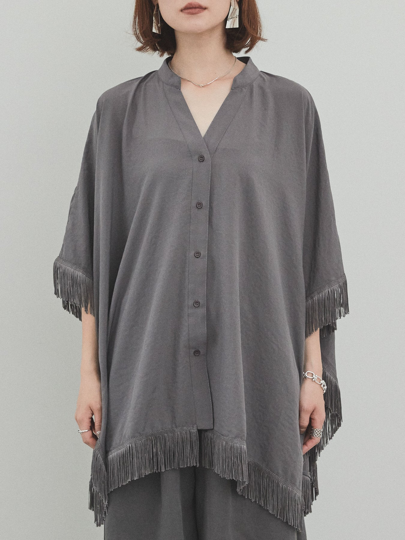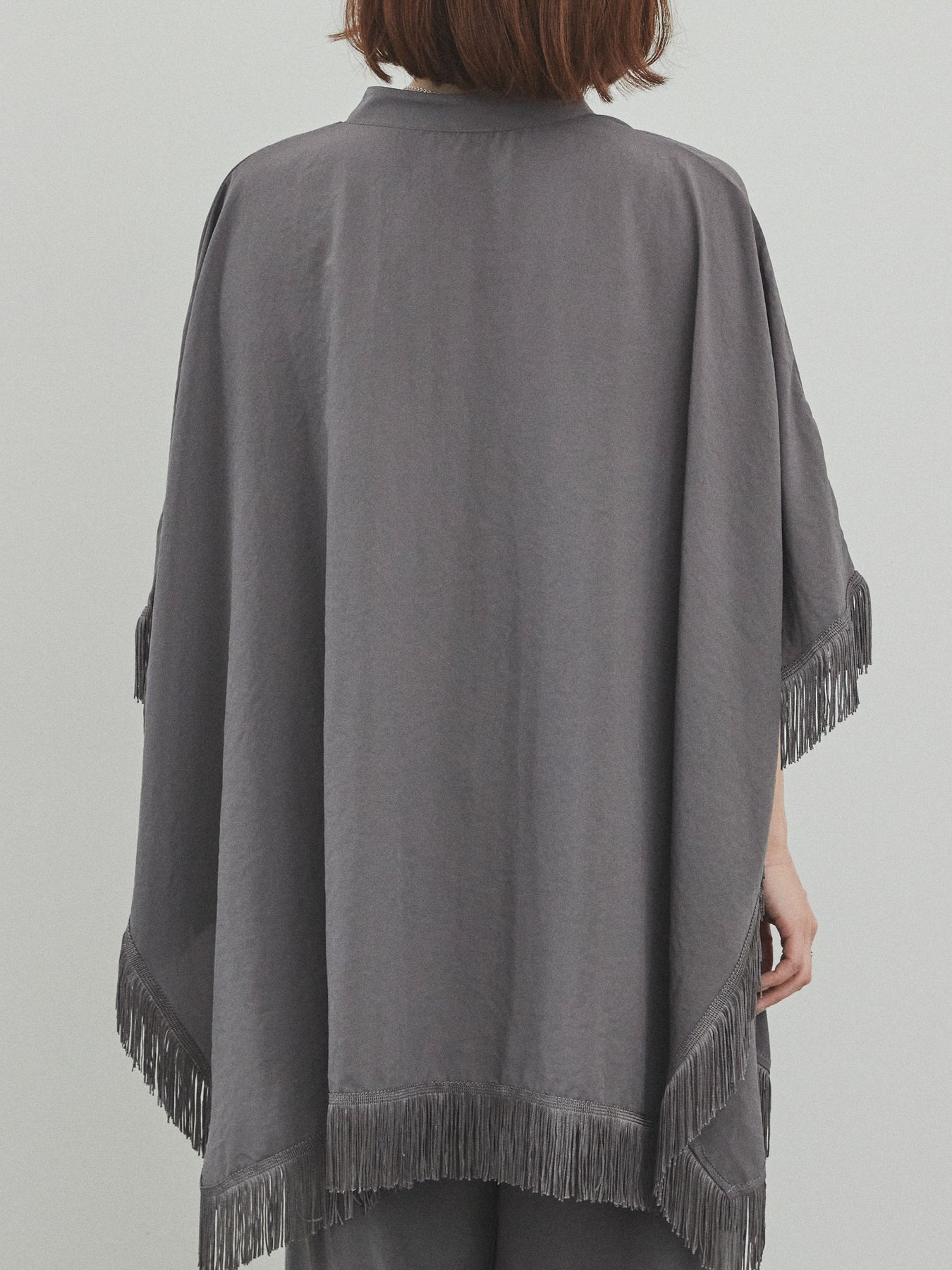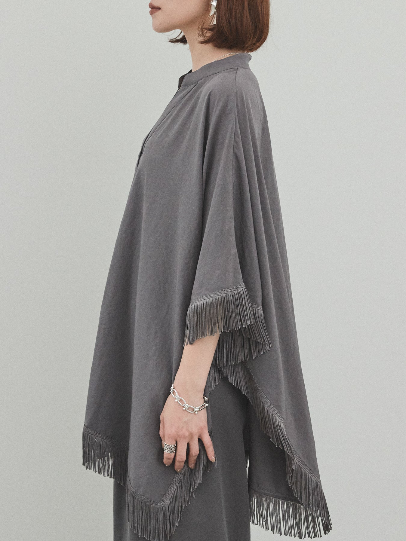 [予約]スクエアフリンジポンチョブラウス/チャコール