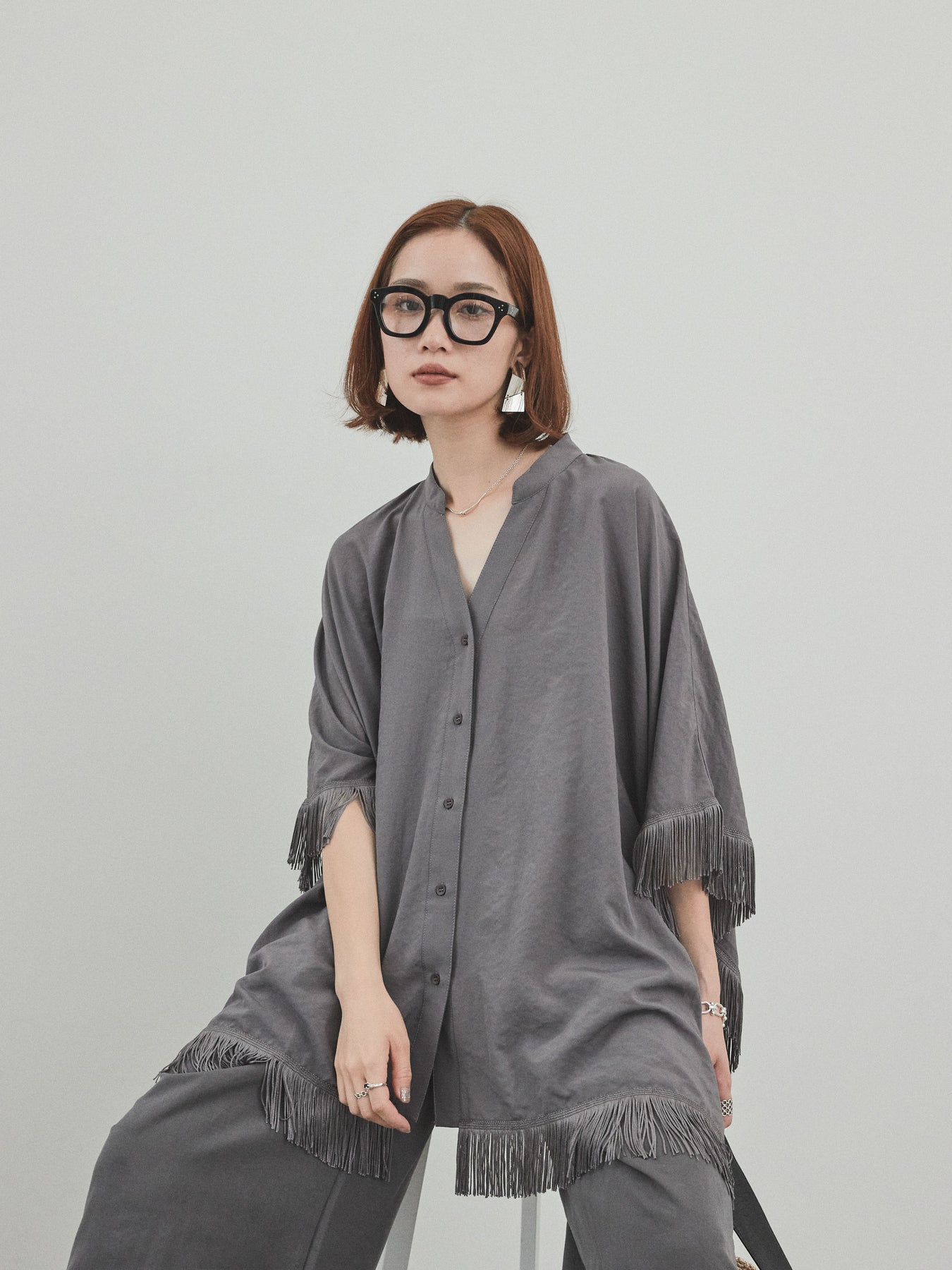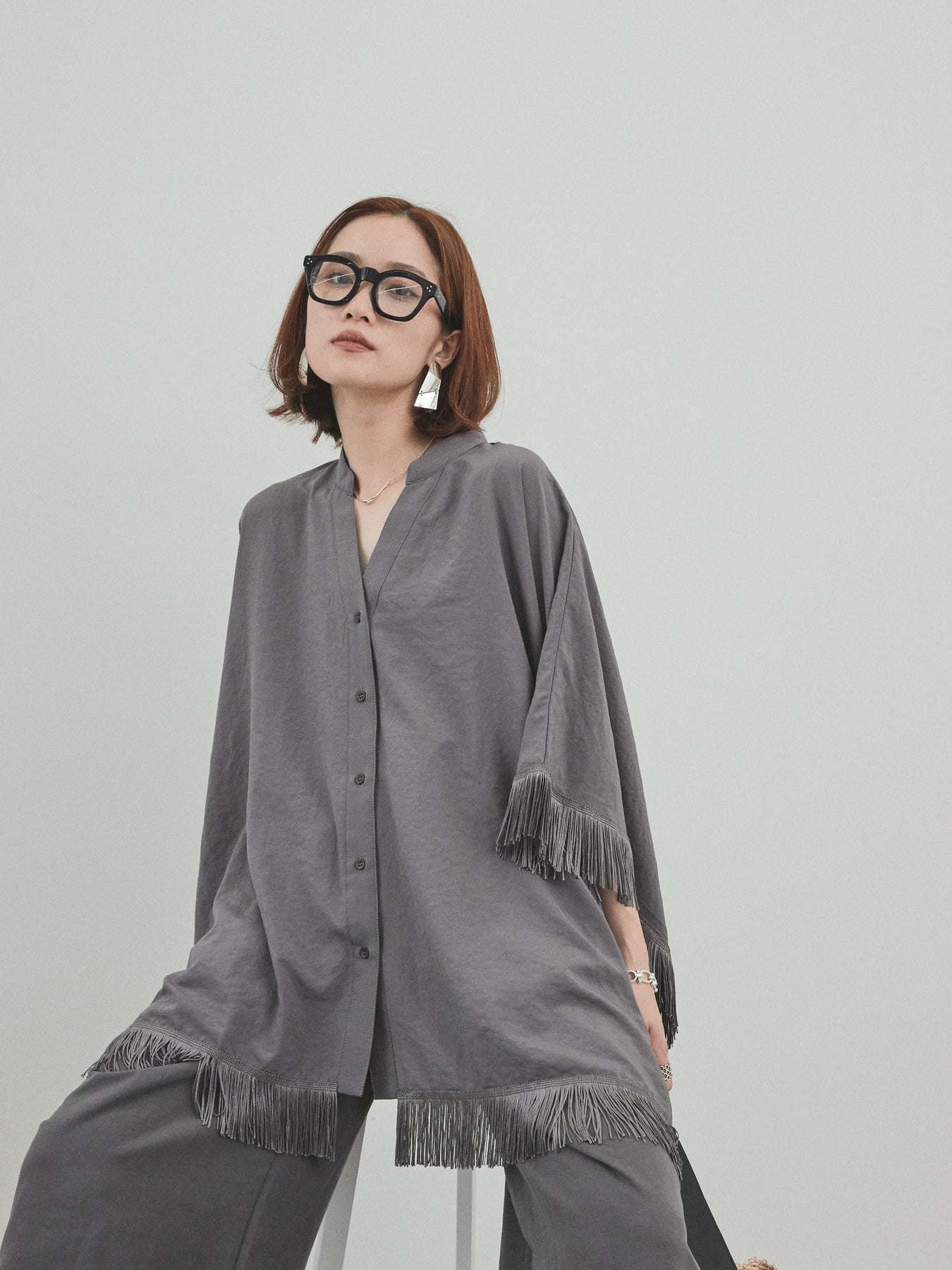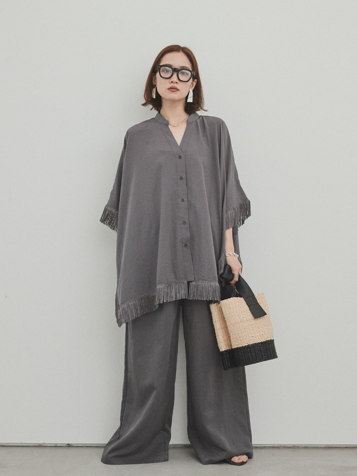 [予約]スクエアフリンジポンチョブラウス/チャコール