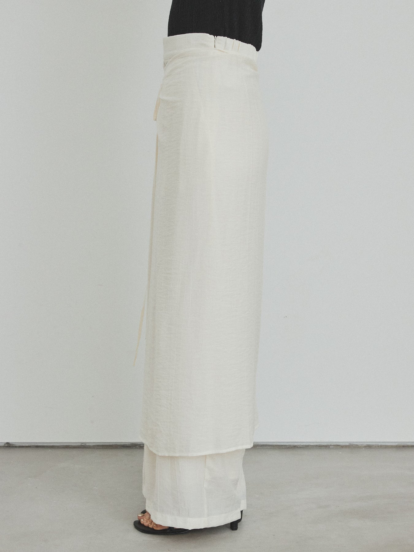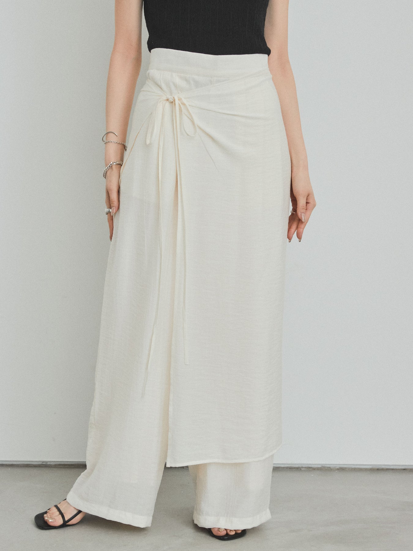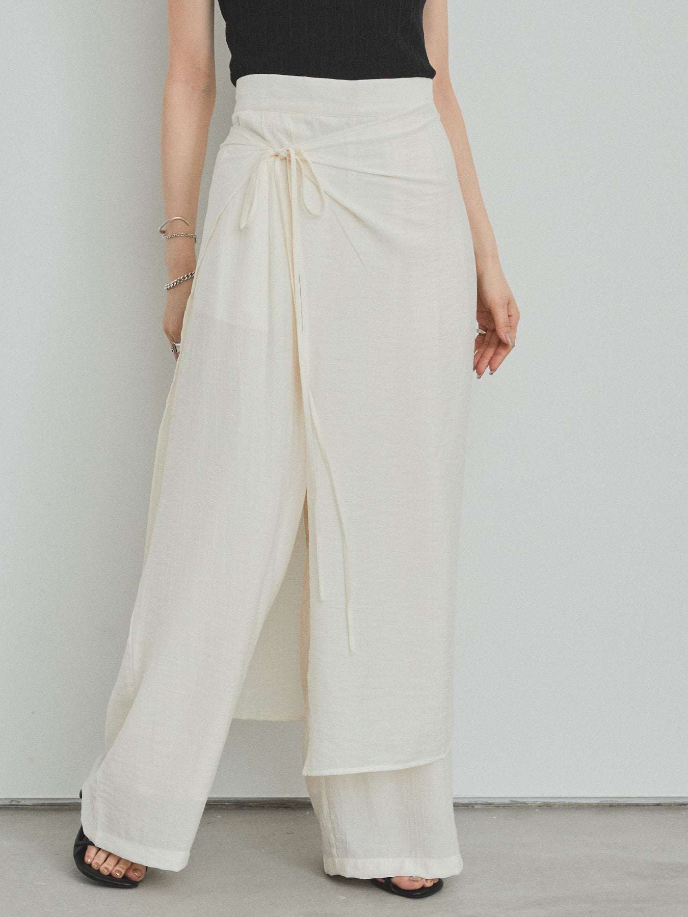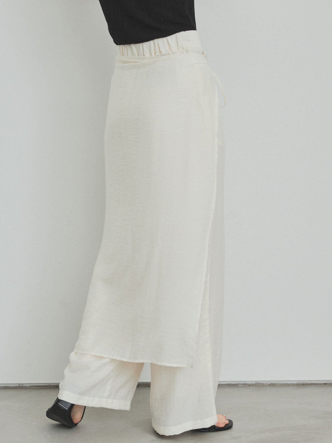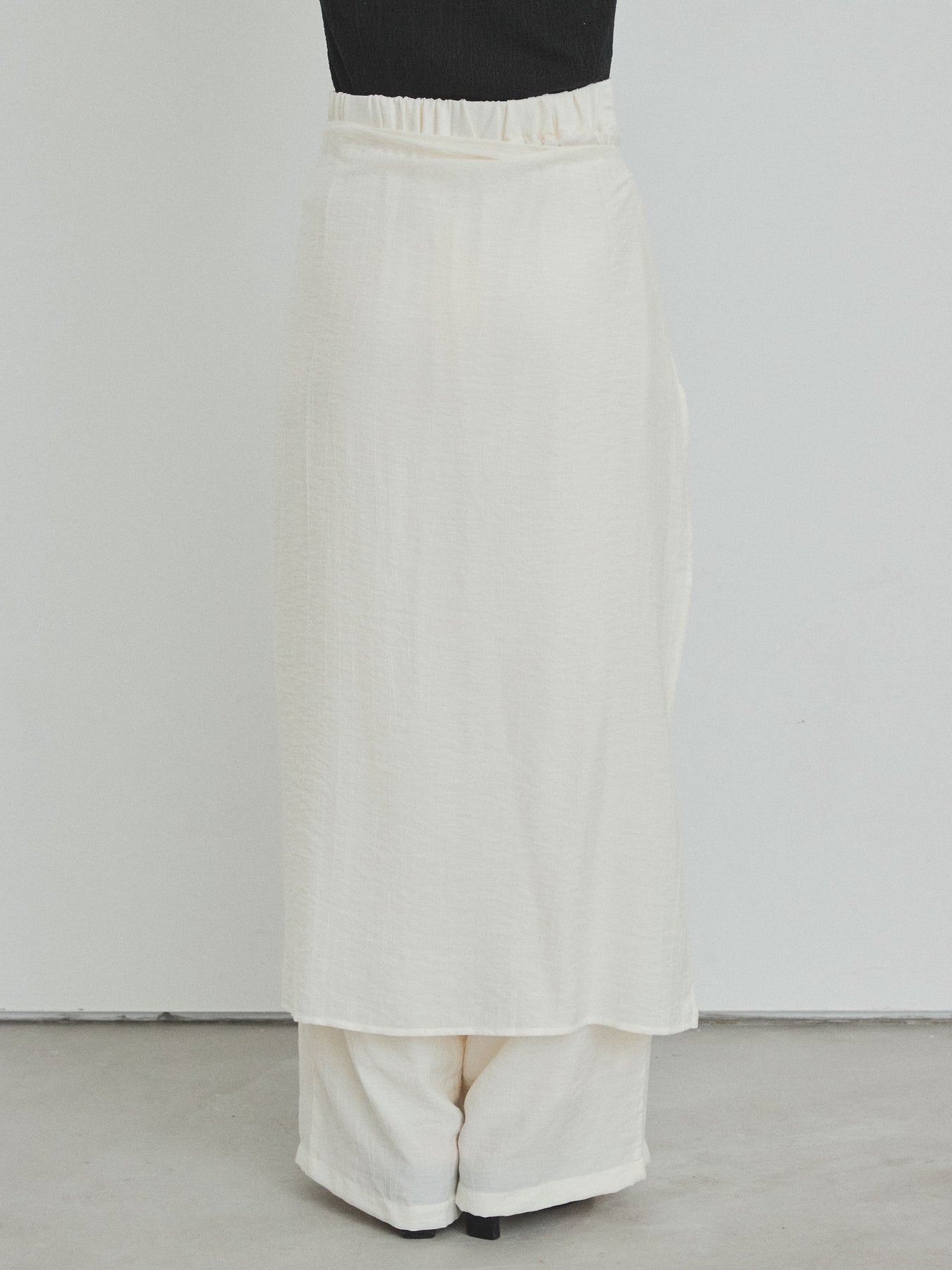 [予約]ワッシャーサテンレイヤードスカートパンツ/アイボリー