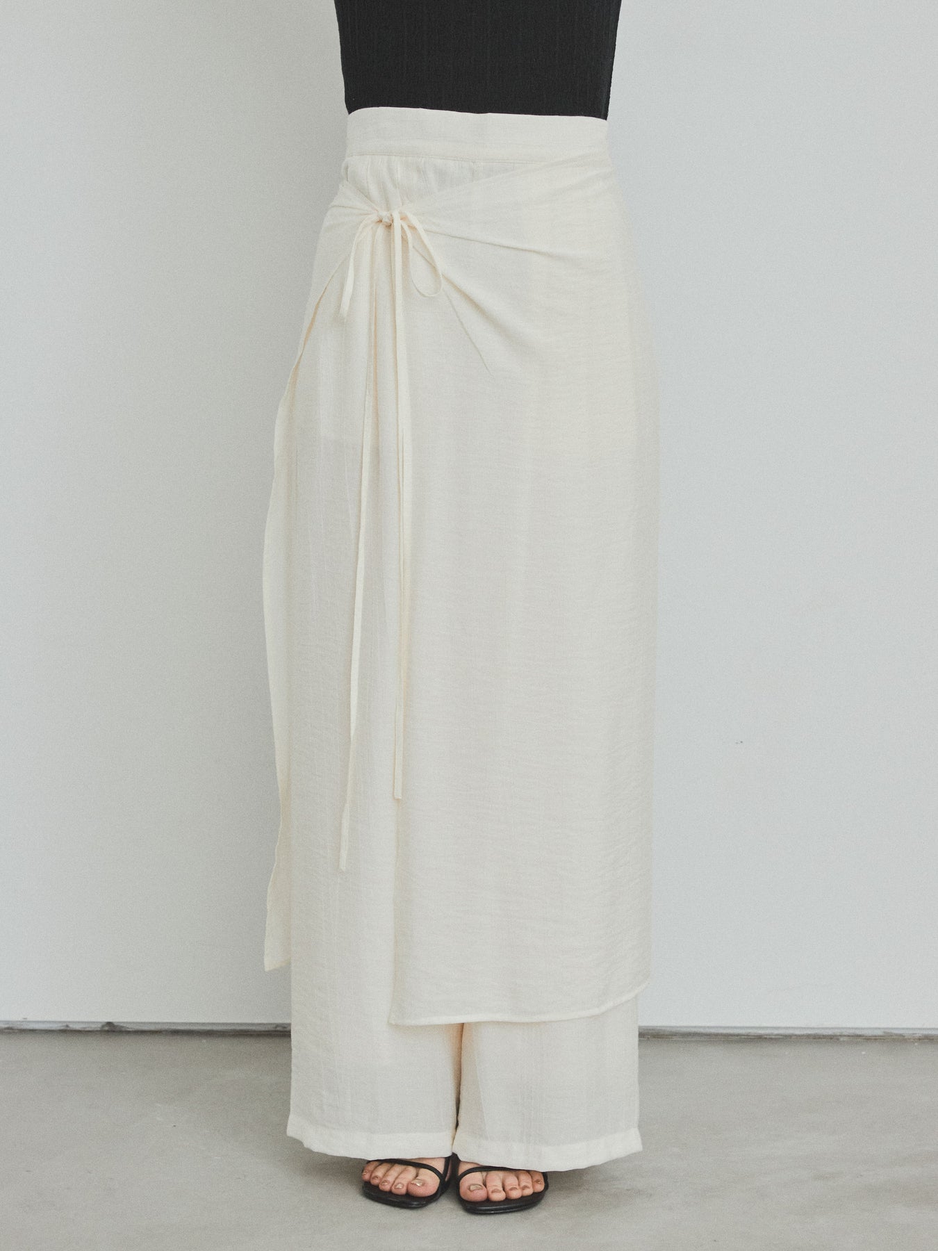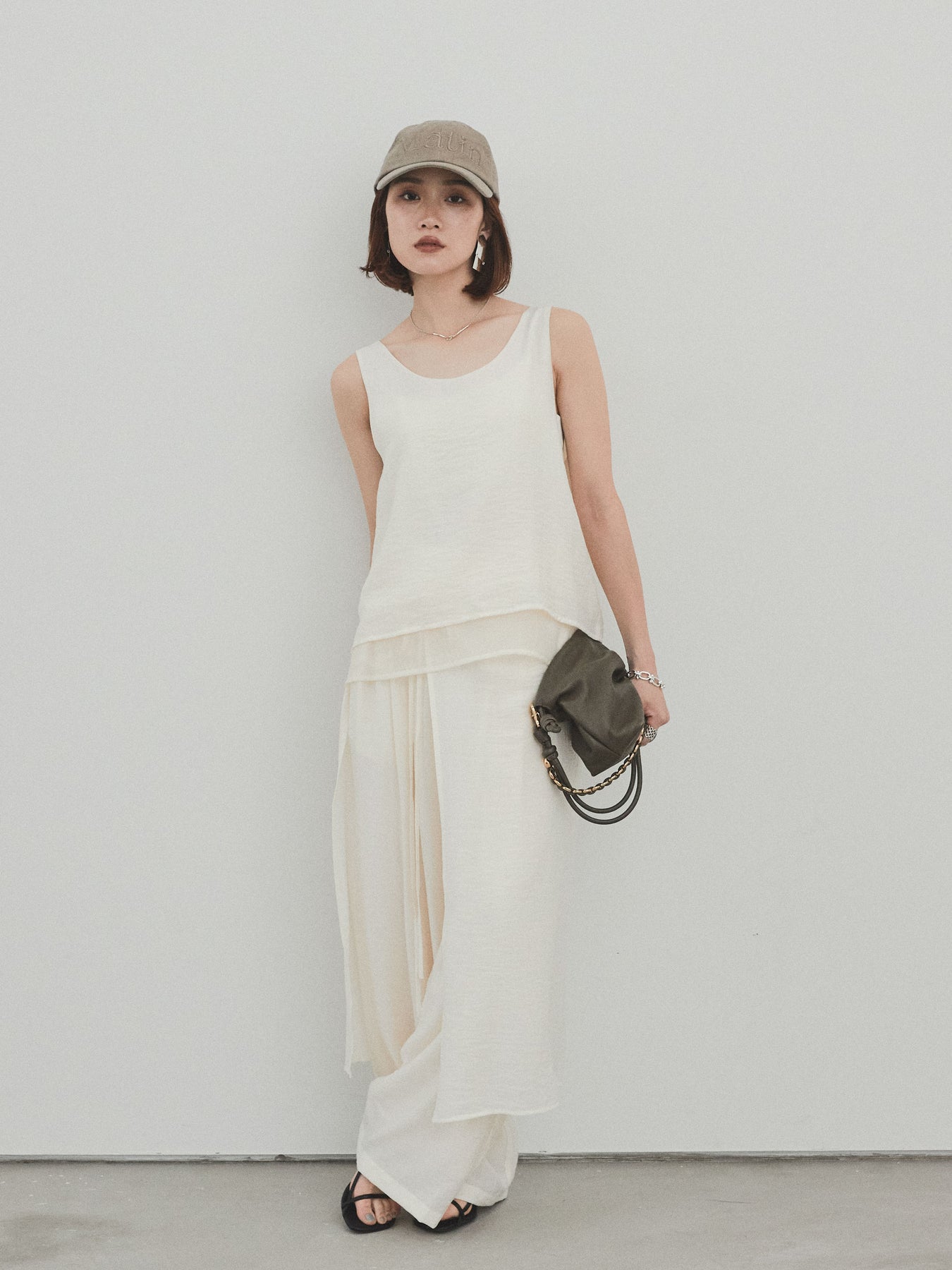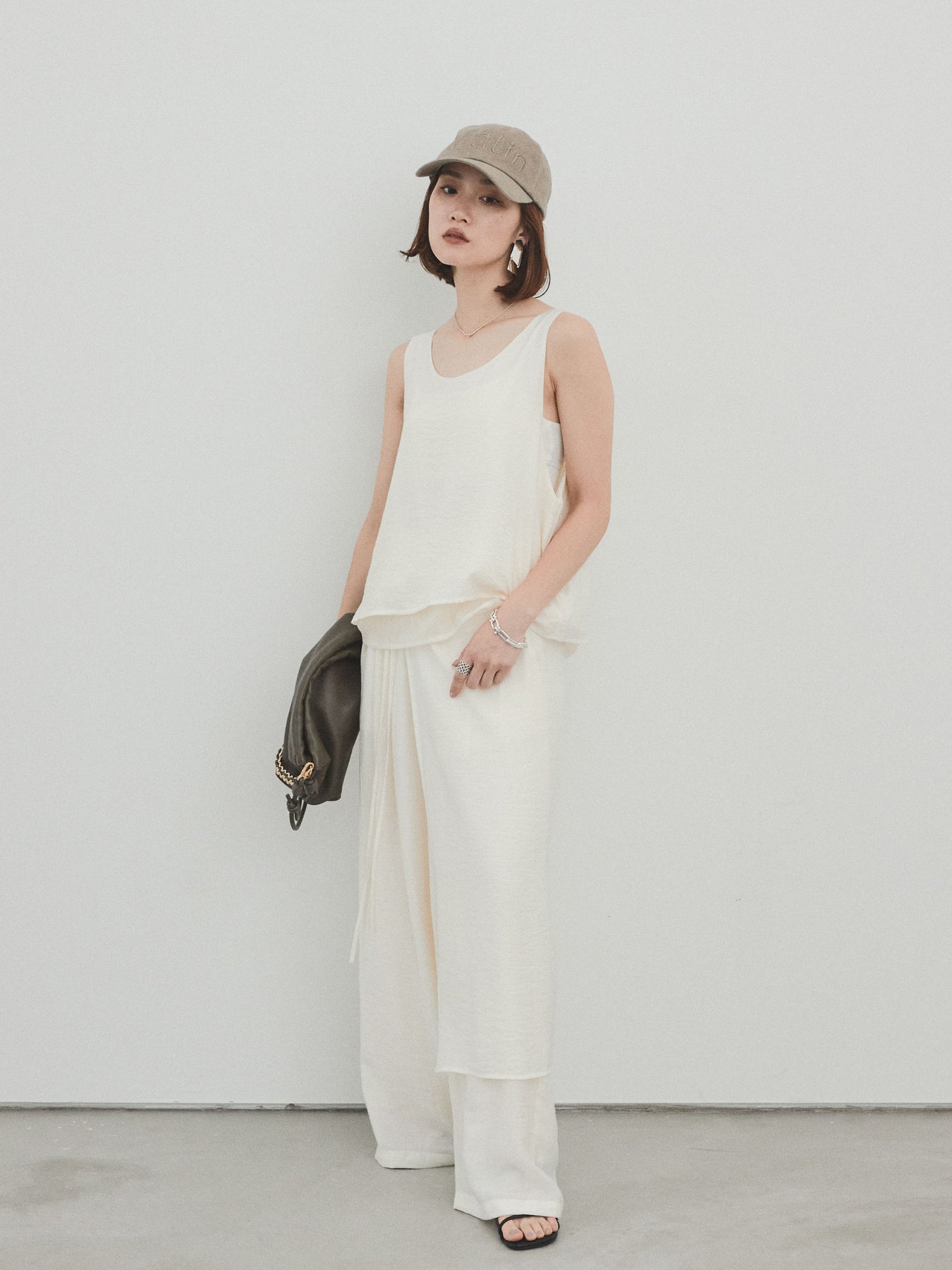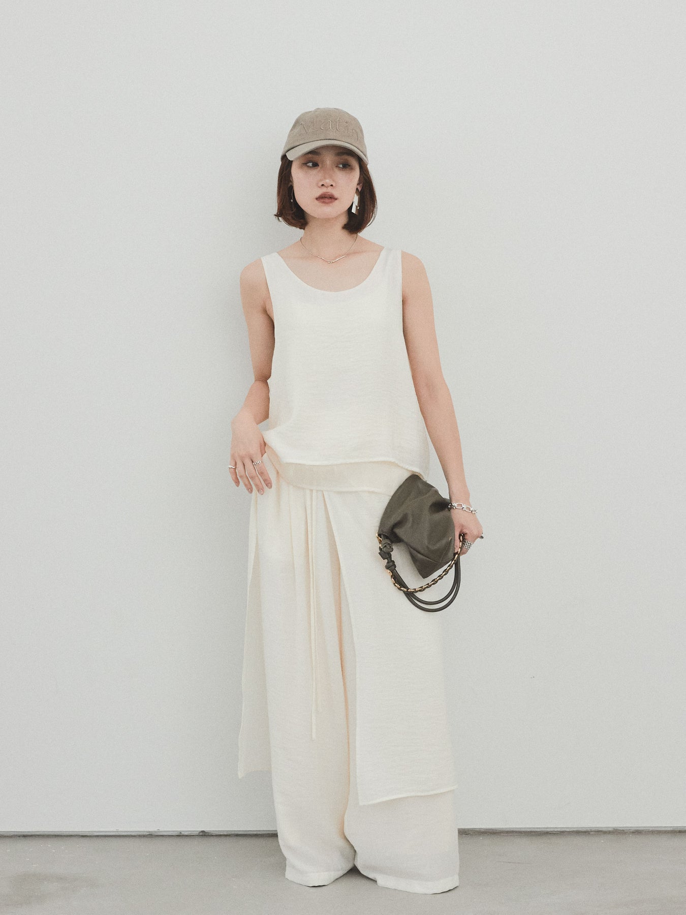 [予約]ワッシャーサテンレイヤードスカートパンツ/アイボリー