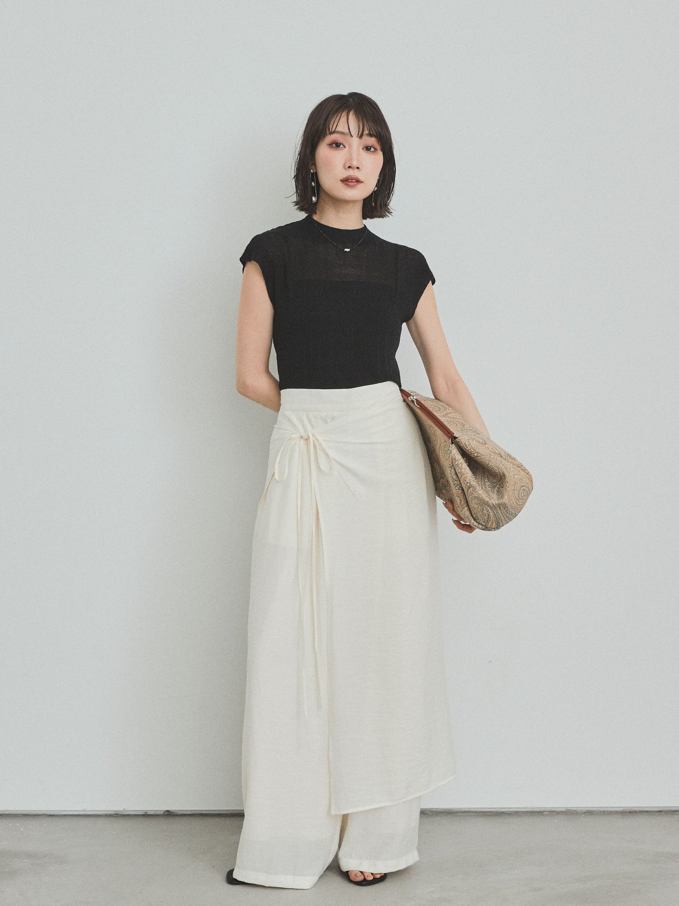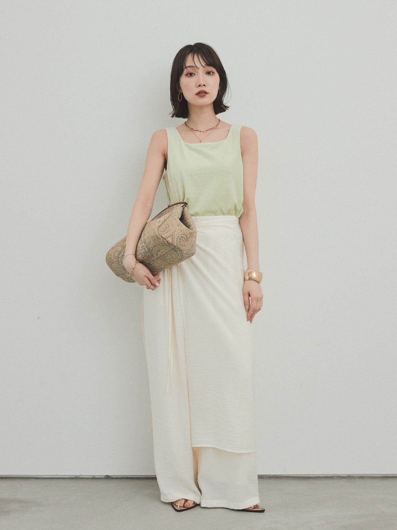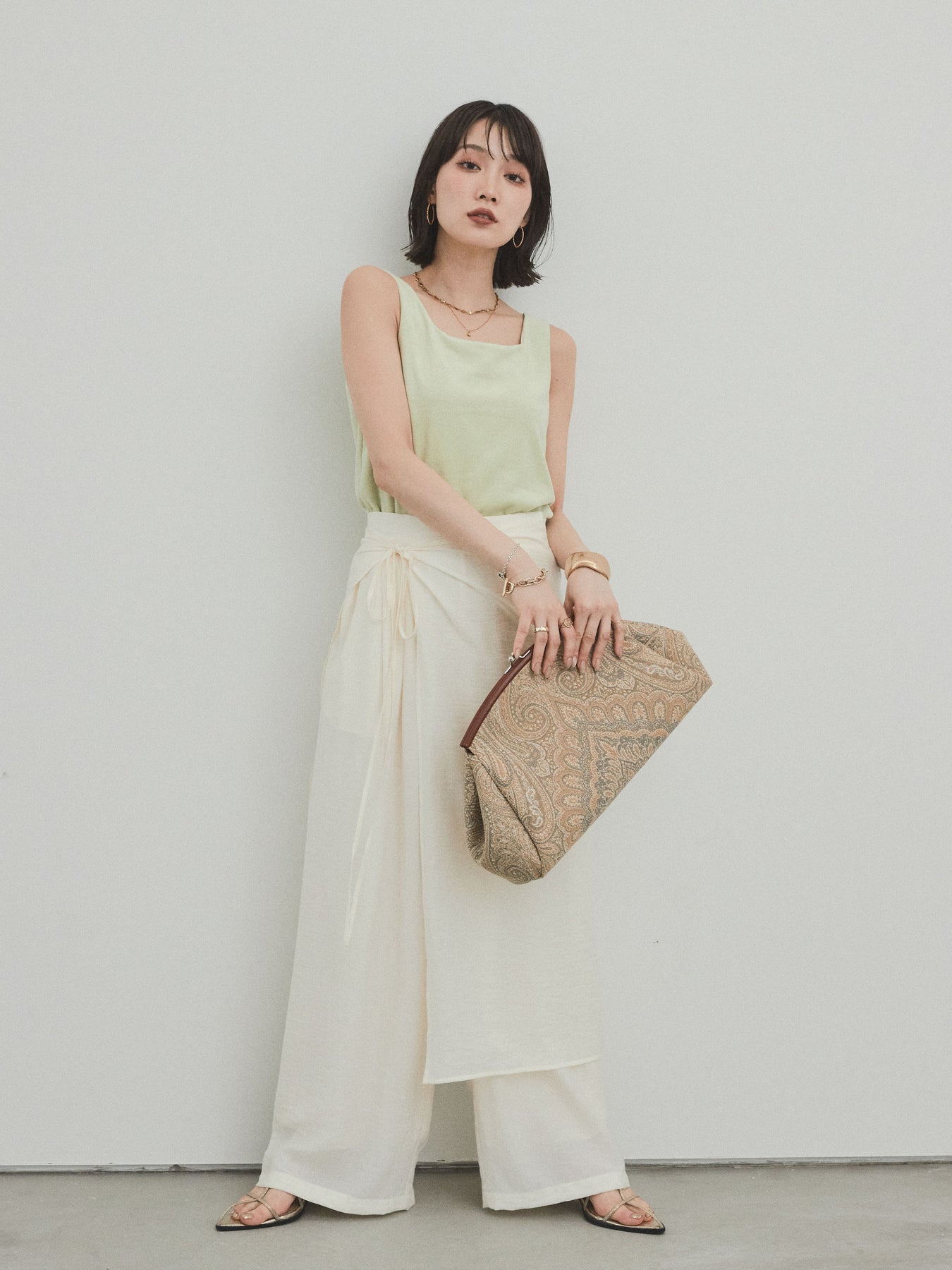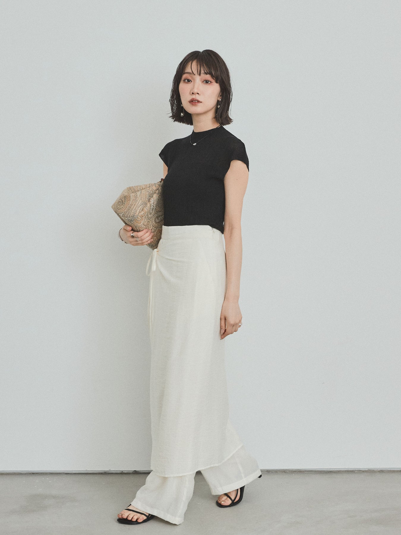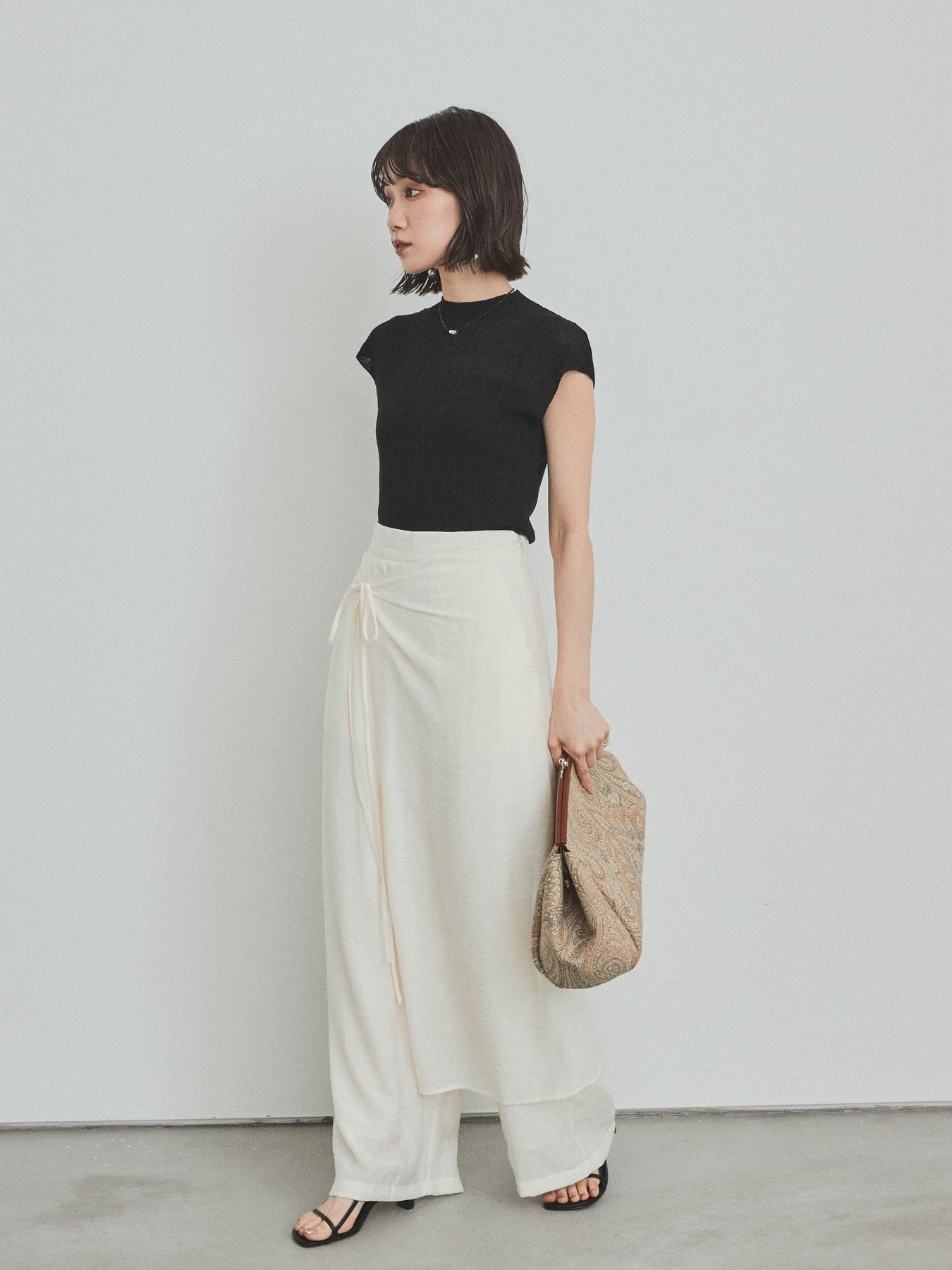 [予約]ワッシャーサテンレイヤードスカートパンツ/アイボリー