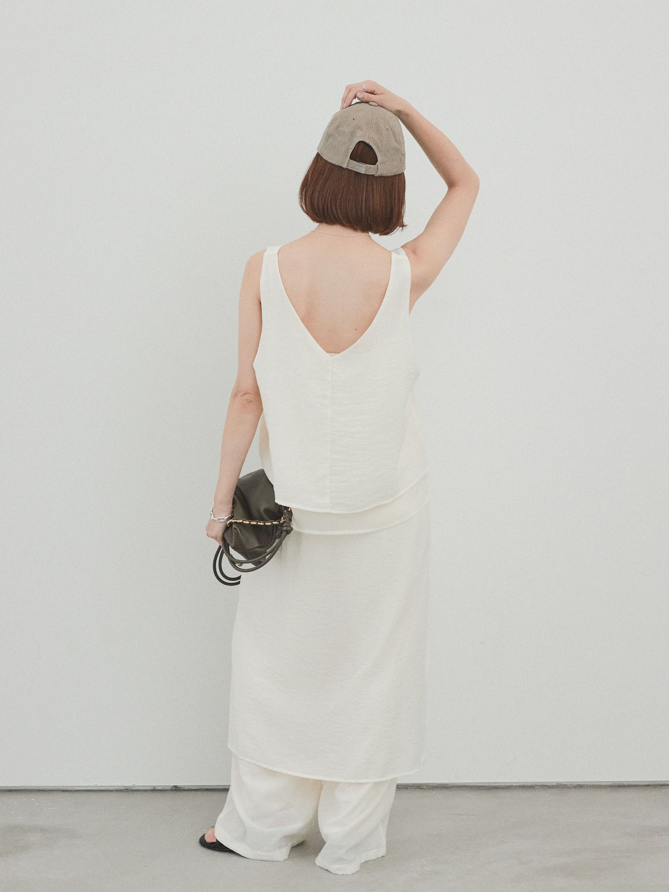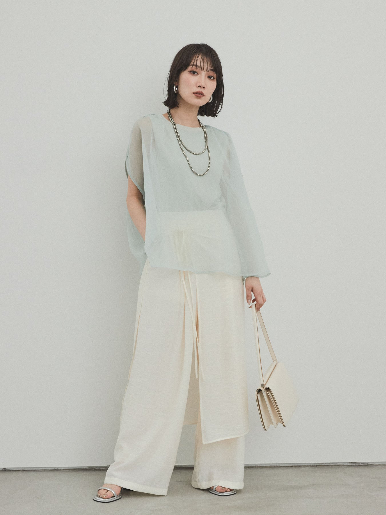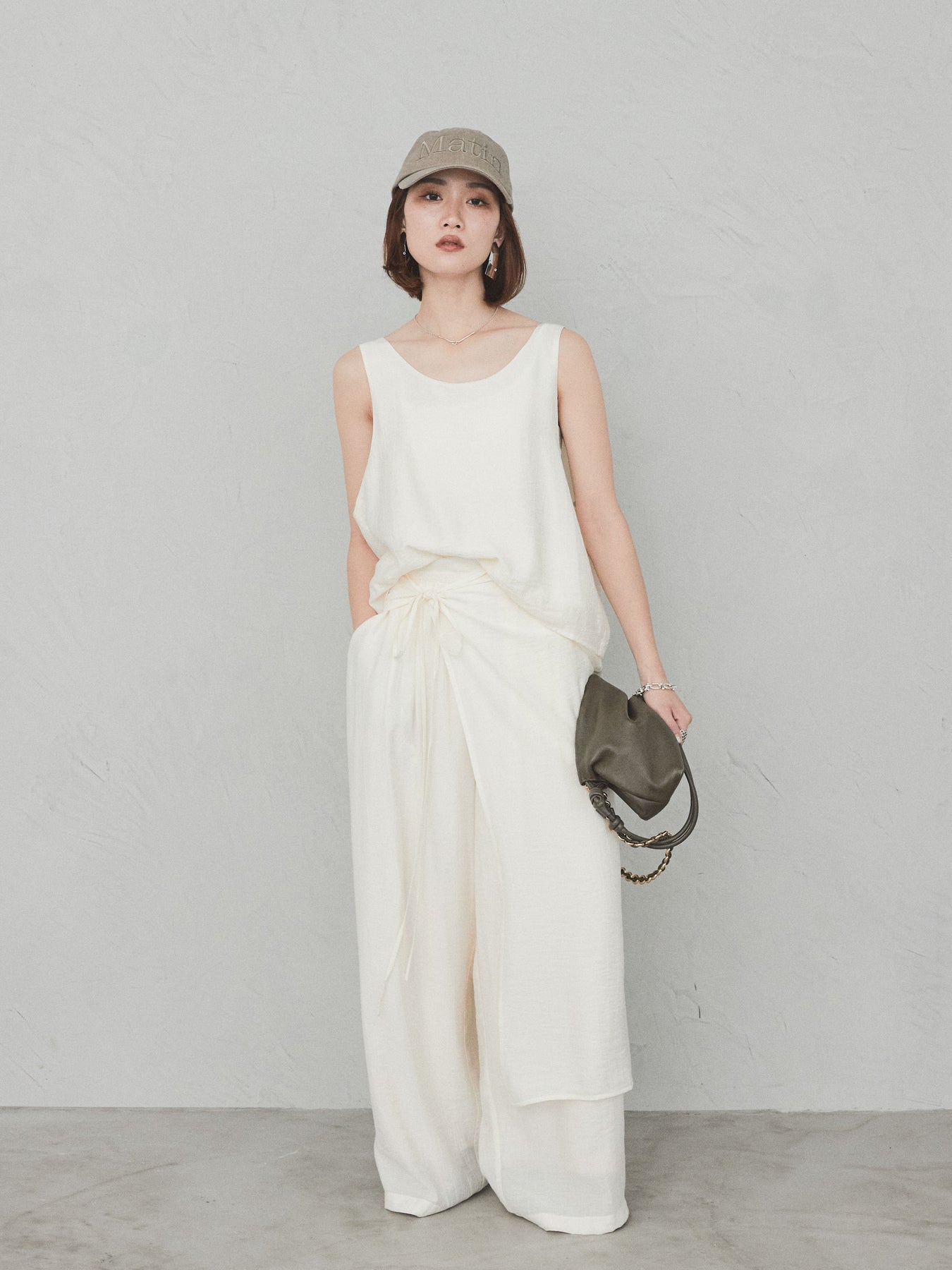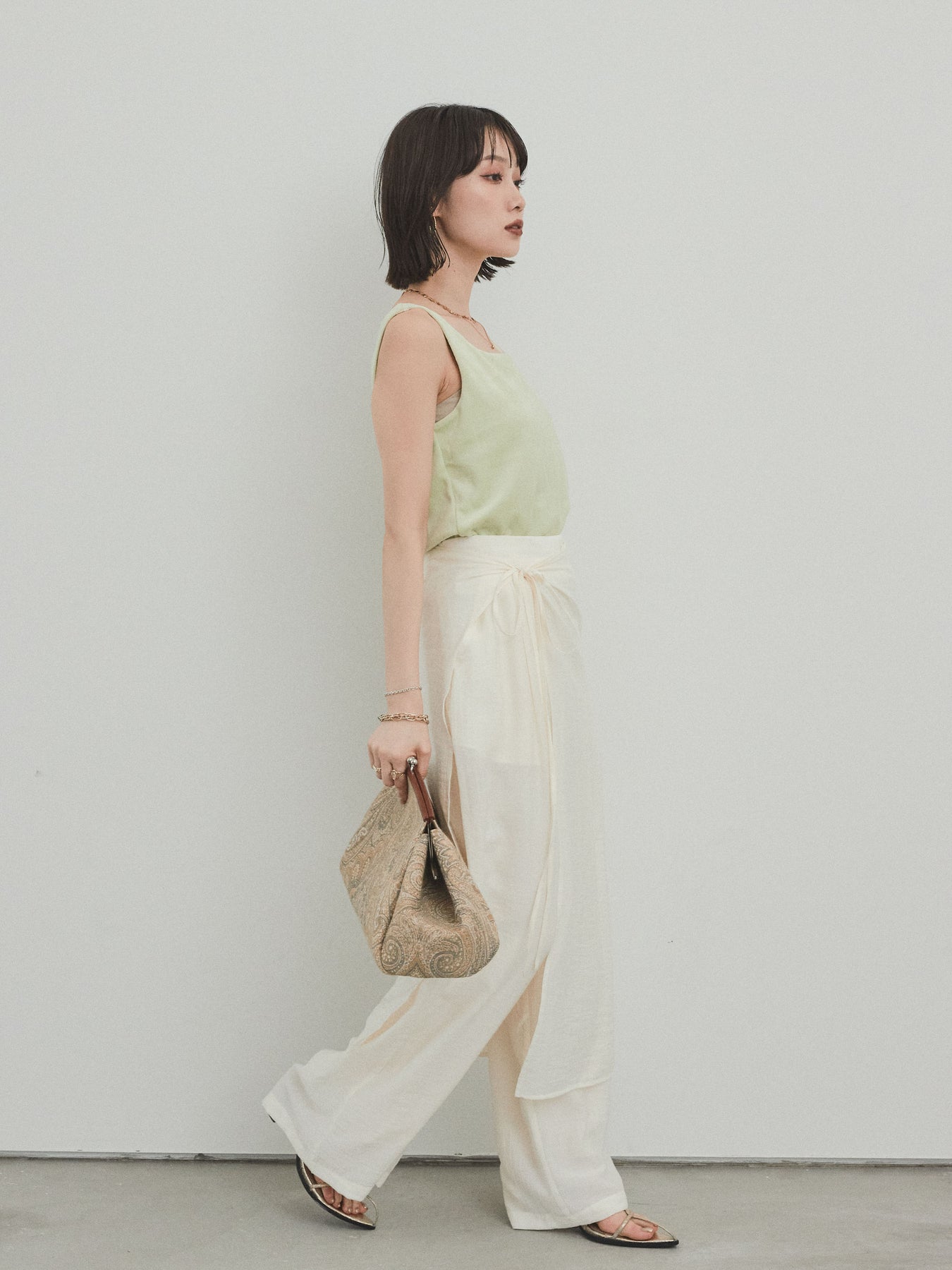 [予約]ワッシャーサテンレイヤードスカートパンツ/アイボリー
