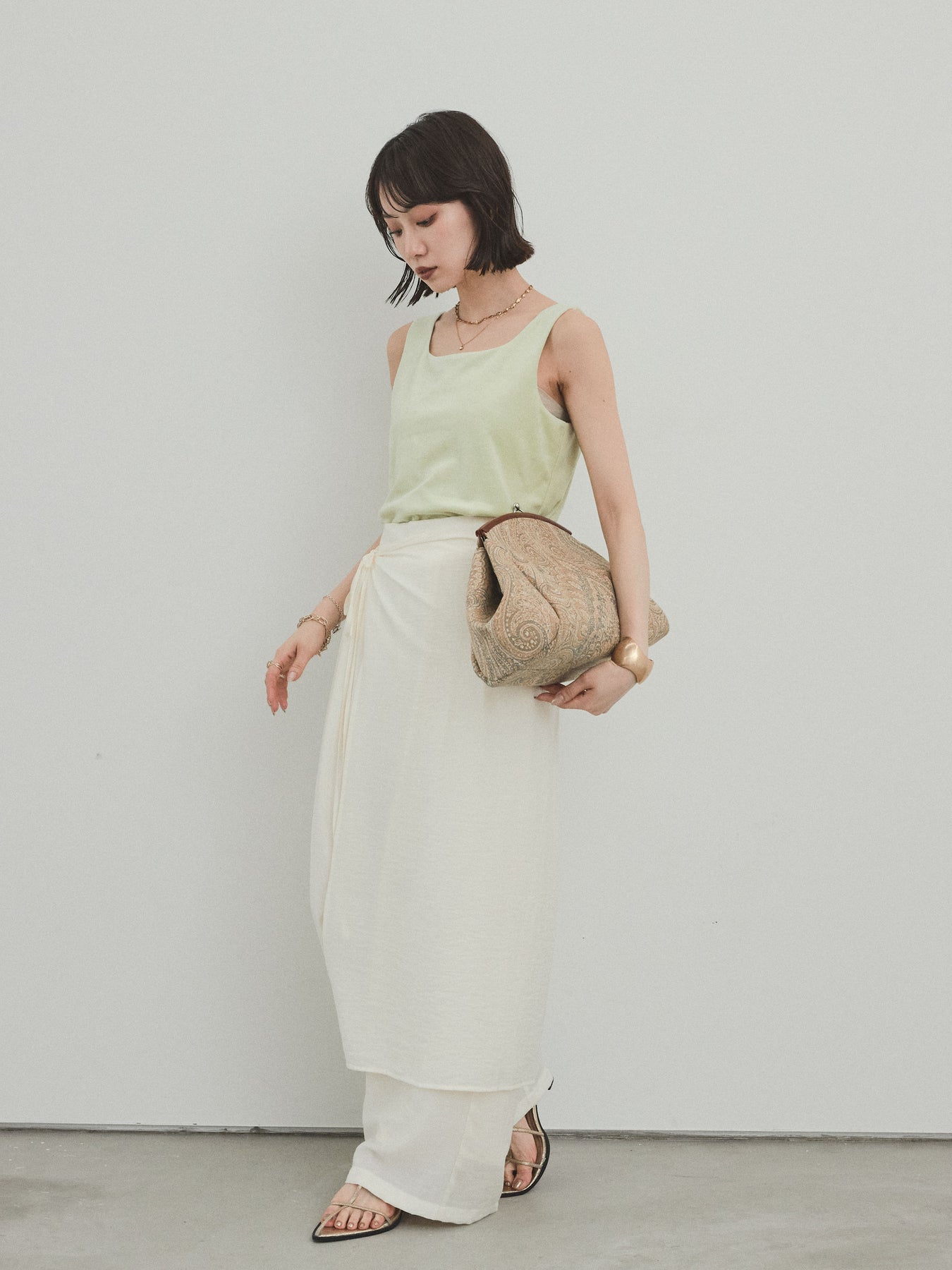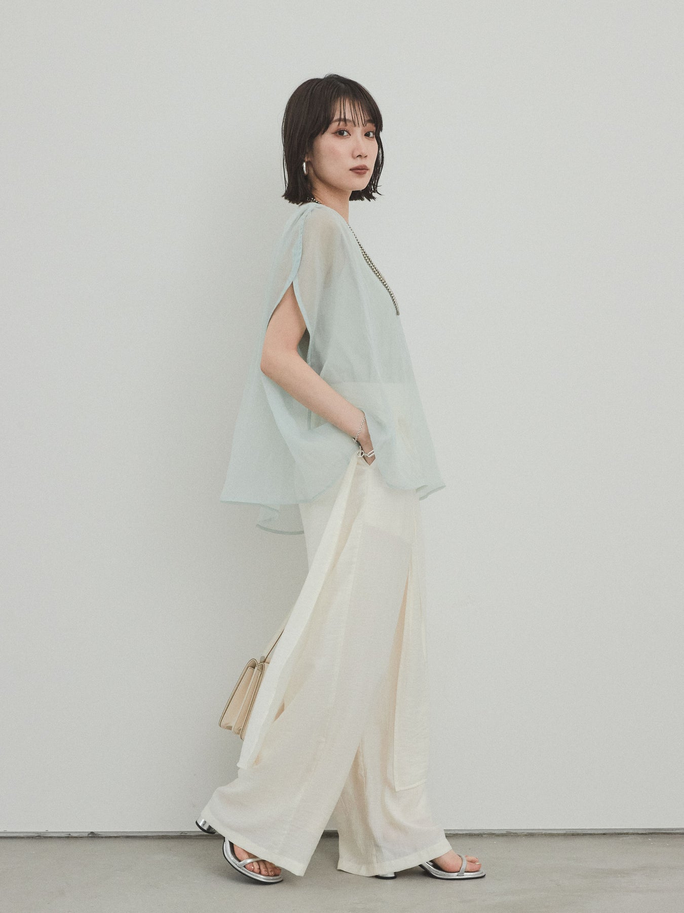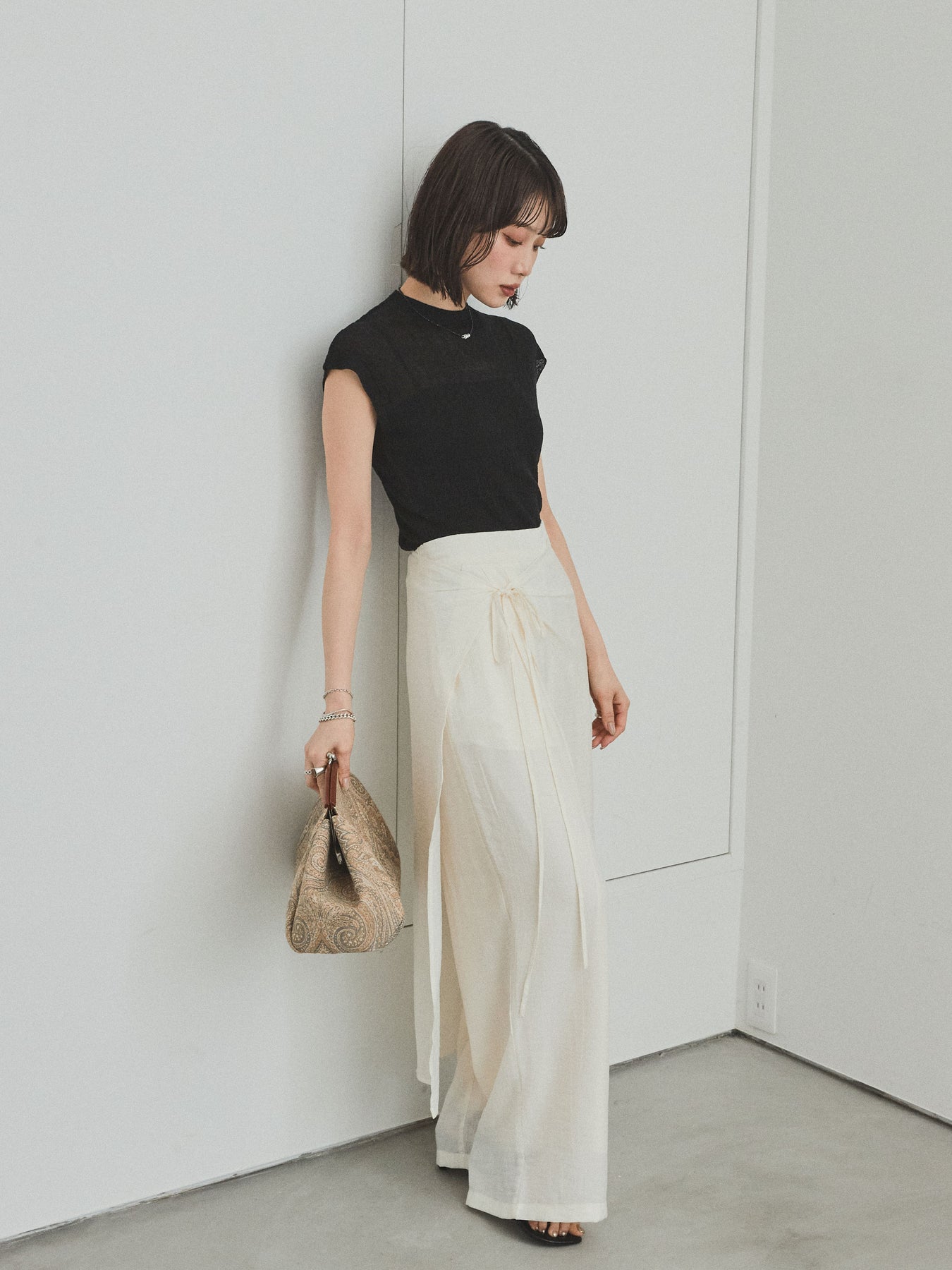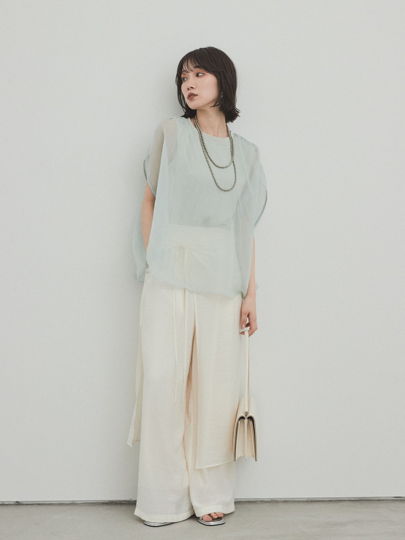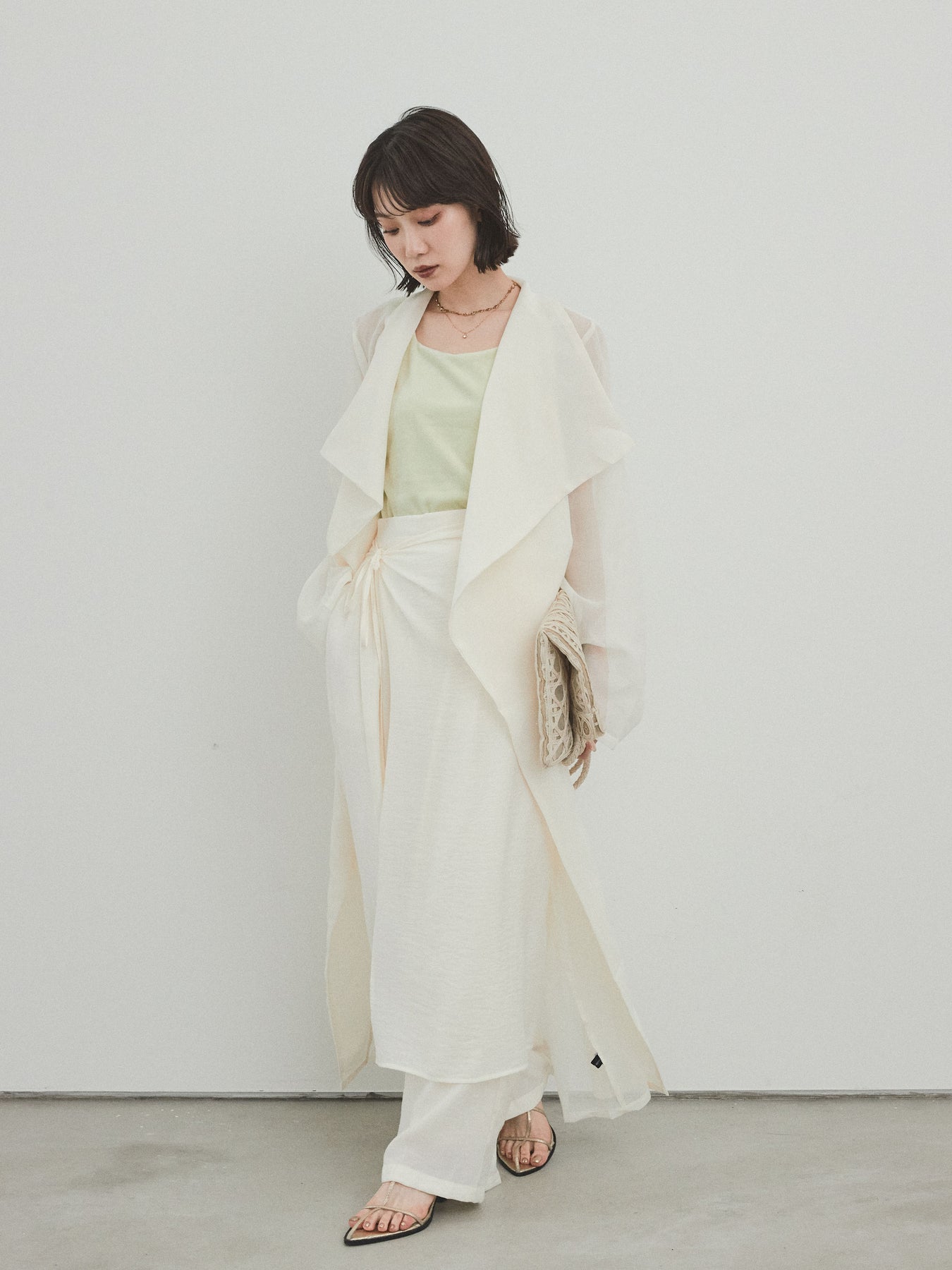 [予約]ワッシャーサテンレイヤードスカートパンツ/アイボリー