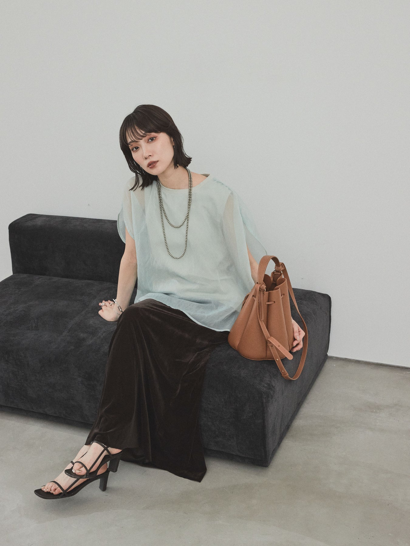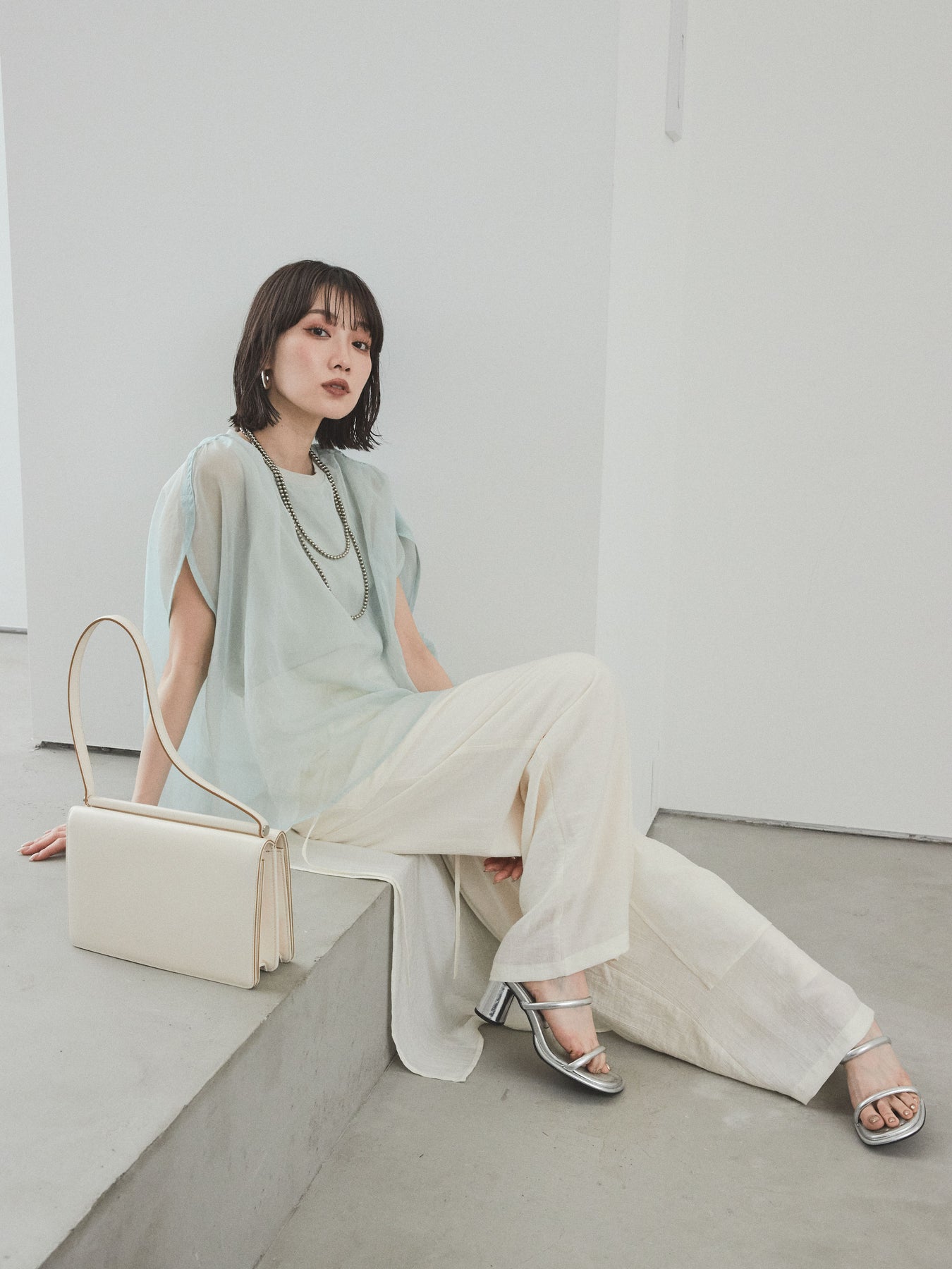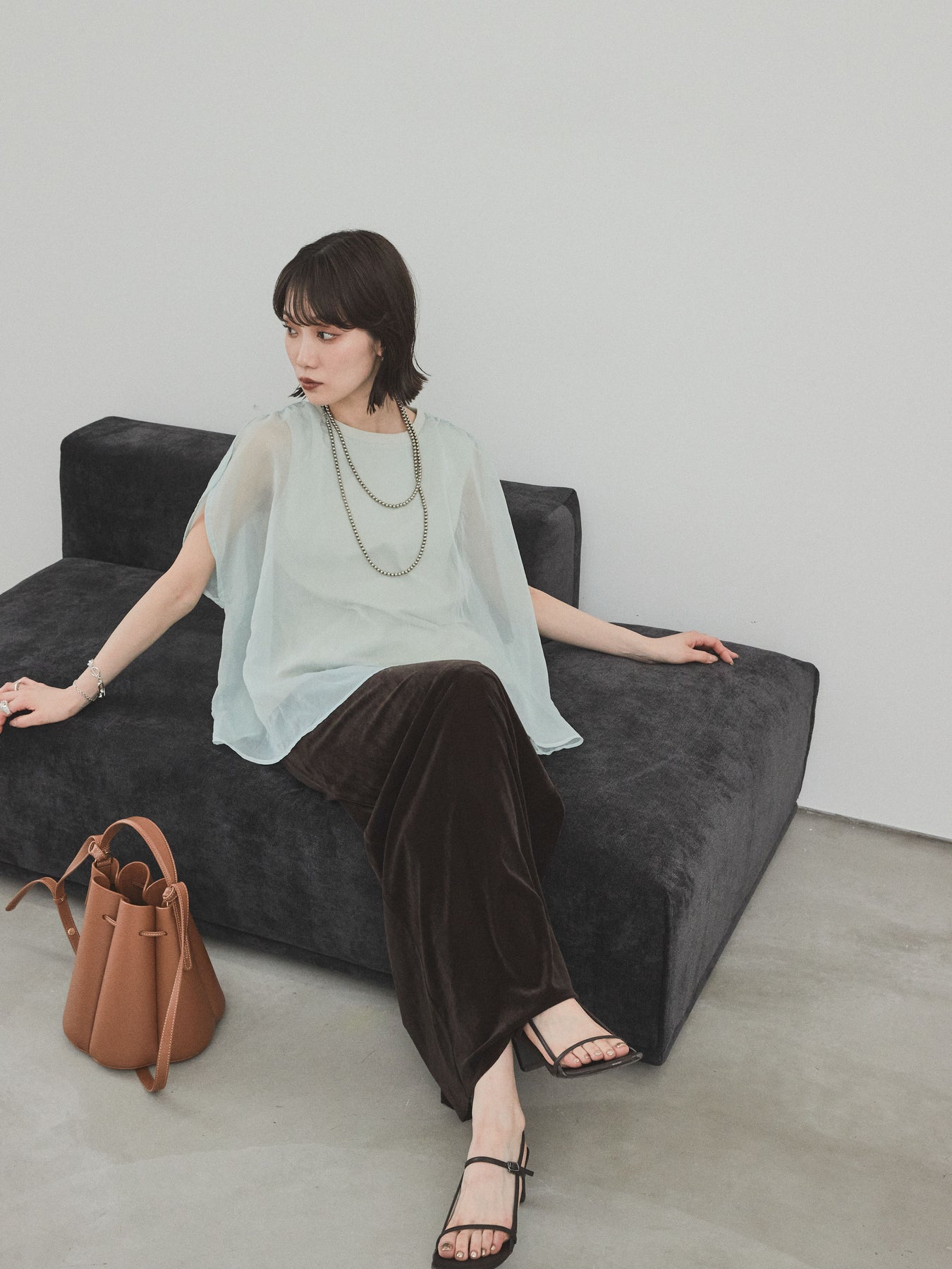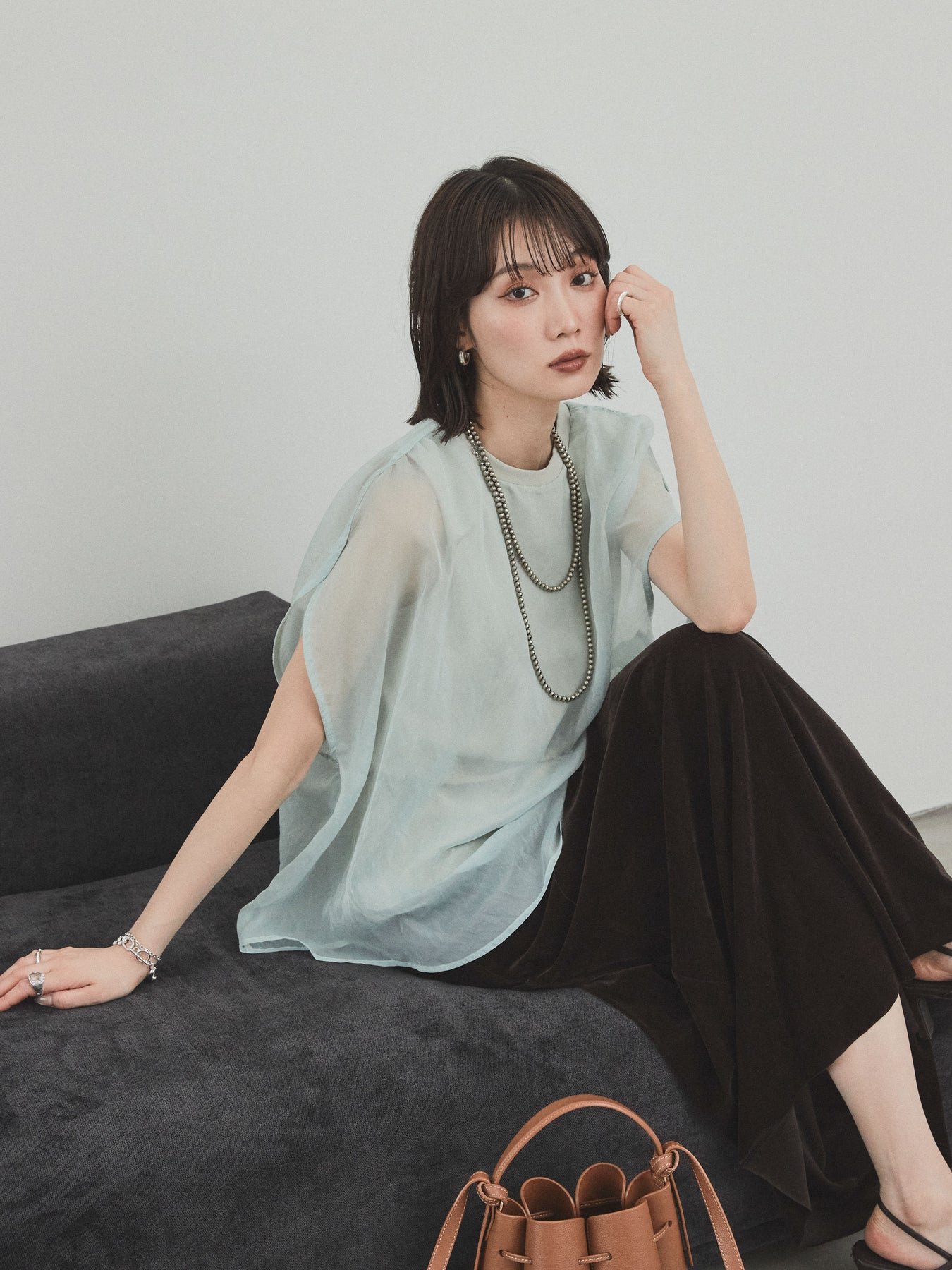 さらっとした肌触りのコンパクトスムース素材に、シアー感のある生地を重ねたレイヤードトップス。透け感のある軽やかな素材が女性らしい抜け感を演出し、インナーとの組み合わせで表情の変化も楽しめます。ややルーズなシルエットでリラクシーな着心地ながら、きちんと感もある上品な仕上がり。パンツやスカートはもちろん、ジャンスカやキャミワンピのインナーとしてもおすすめです。シーズンレスに活躍する、着回し力抜群の一着。 ※ボトムス、キャミソール(インナー)以外の商品は一律でインナーは付属していません。