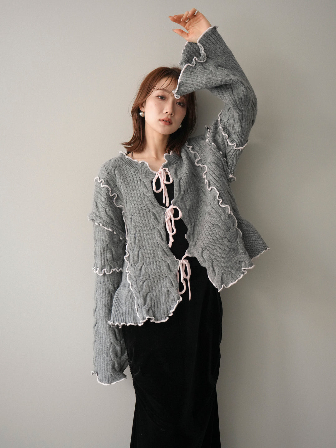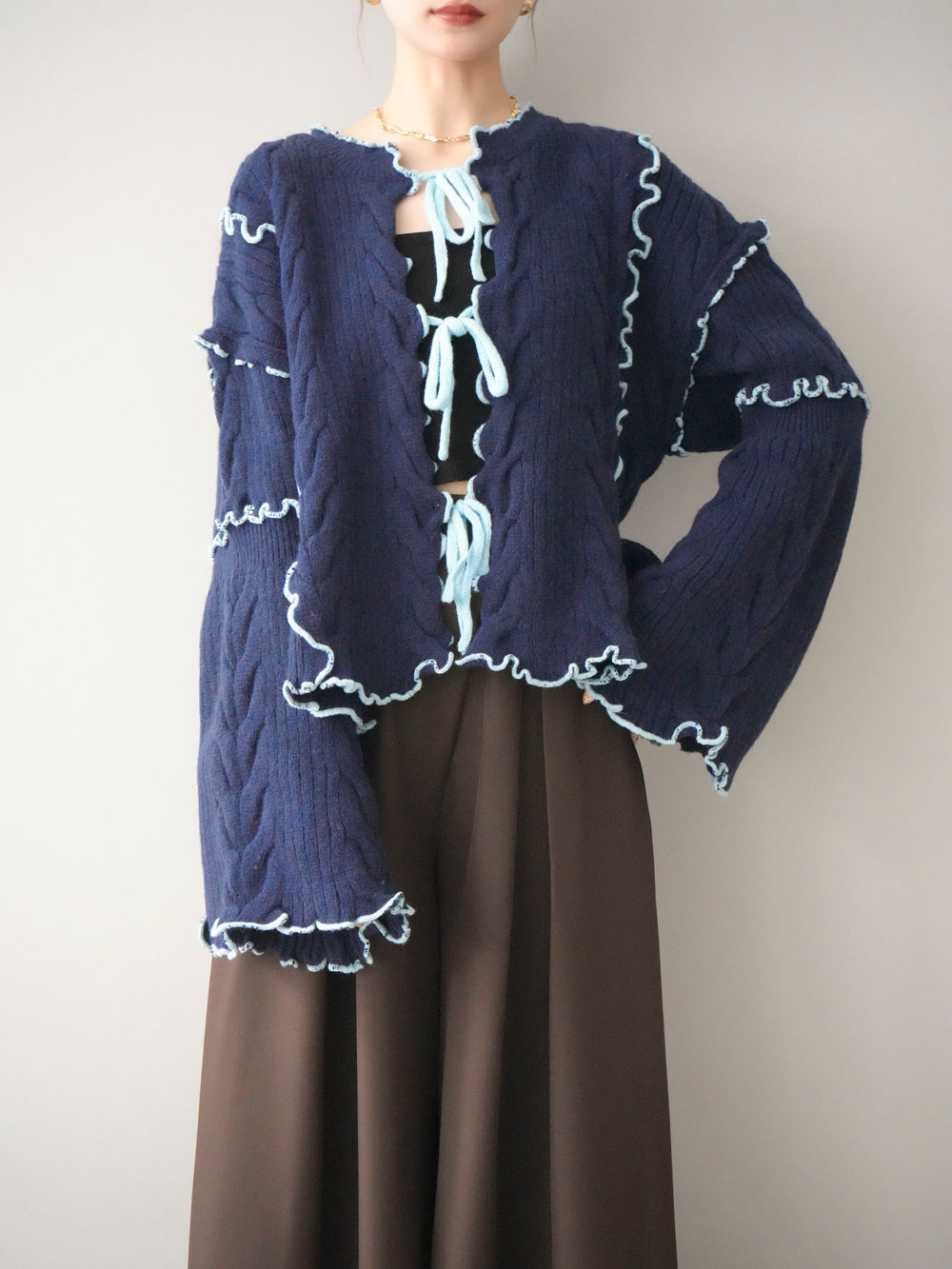 [SET]フロントリボン配色メローニットカーディガン+フロントリボン配色メローニットカーディガン(2set)