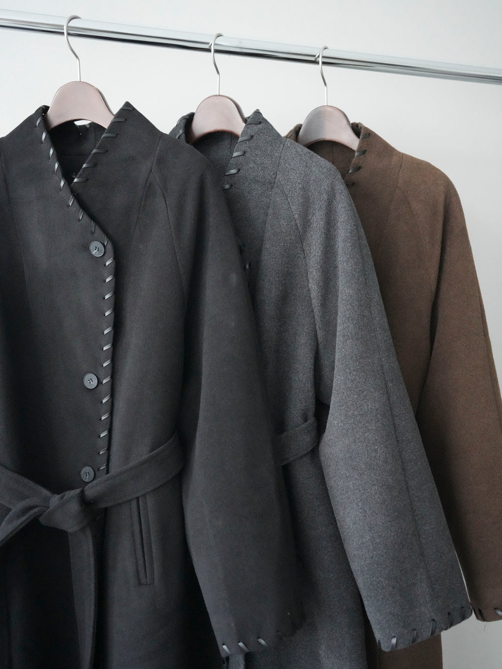[SET]ハンドステッチ裏中綿ロングコート+選べるアクセセット(2set)