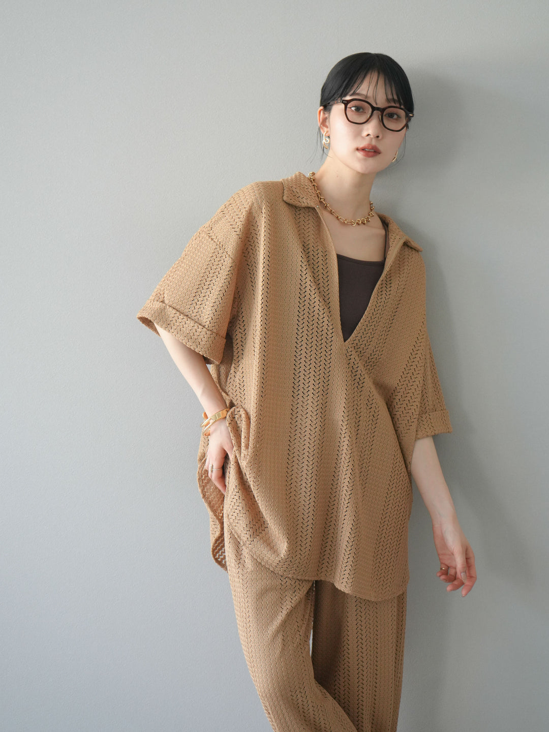 [SET]透かしレース2WAYプルオーバー+透かしレースパンツ(2set)