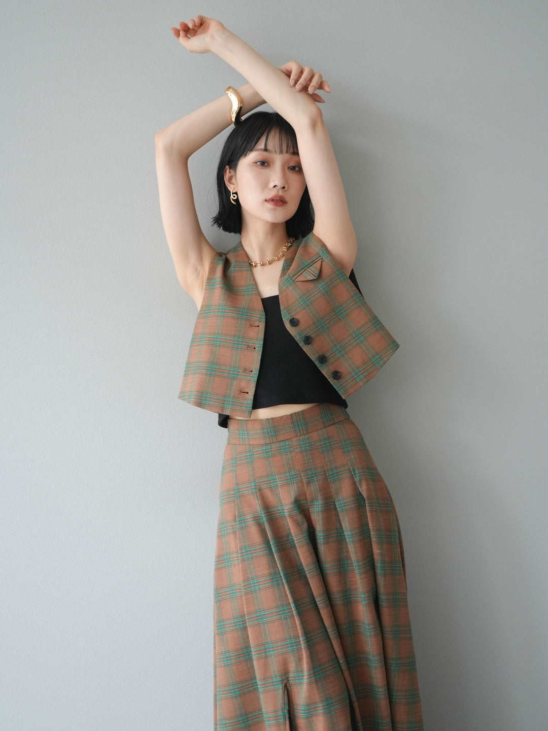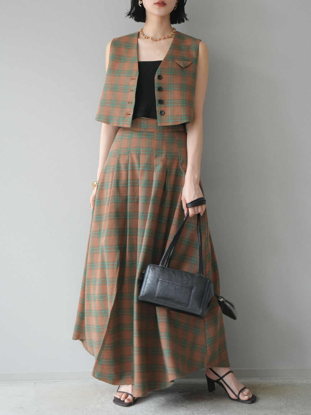 [SET]チェック柄ベスト&フロントスリットタックスカートSET UP(2set)