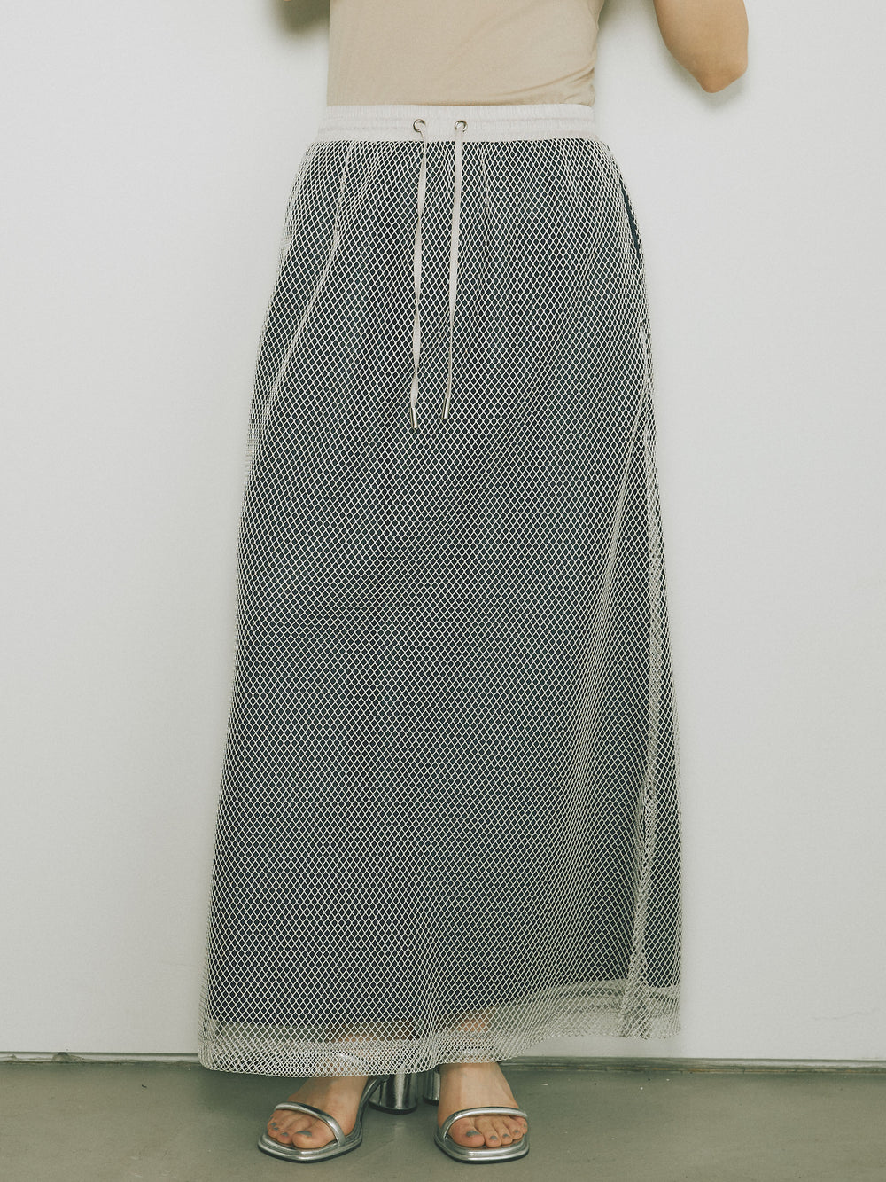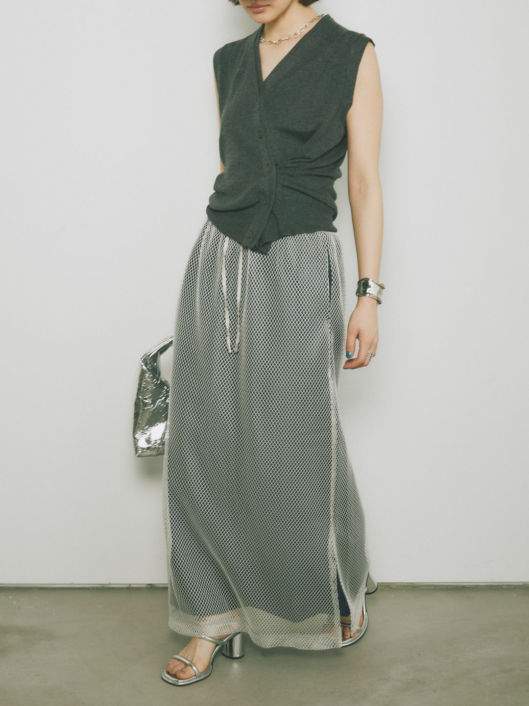 [SET]メッシュレイヤードニットトップス&スカートSET UP +選べるアクセセット(2set)