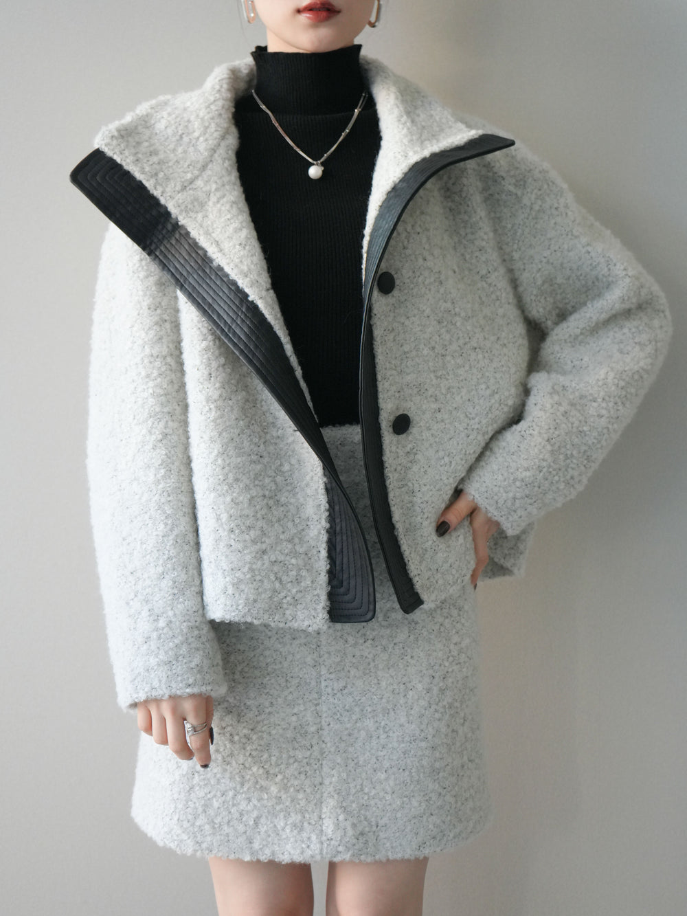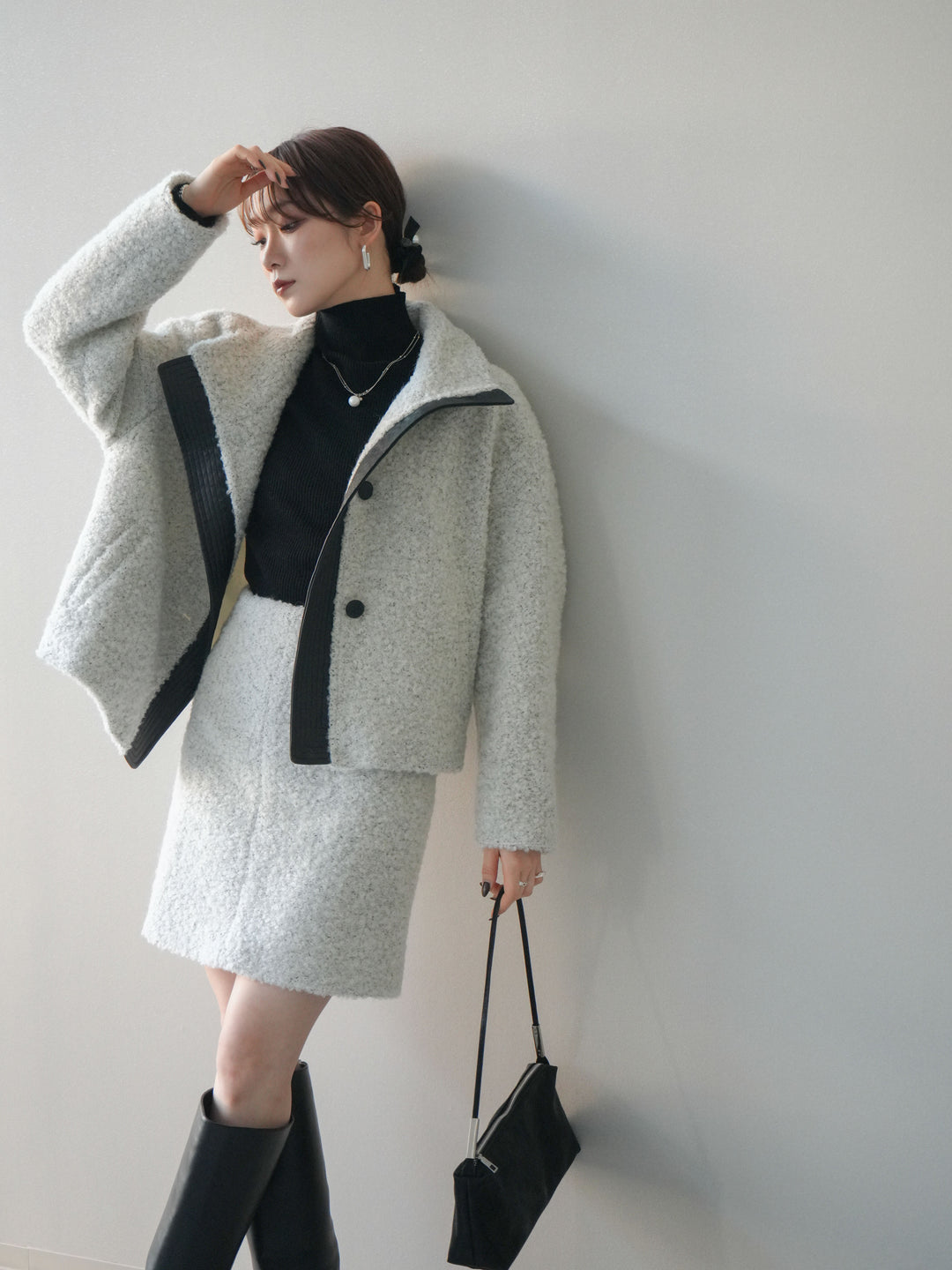 [SET]レザー切替ブークレブルゾン+ブークレミニスカート(2set)