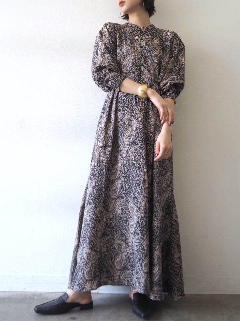 [予約]ペイズリー柄マキシワンピース/ブラック