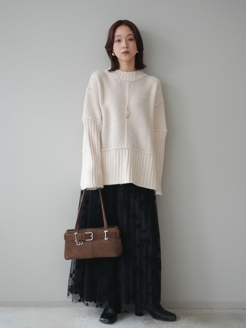 [SET]編み地切替ボトルネックニットプルオーバー+編み地切替ボトルネックニットプルオーバー(2set)