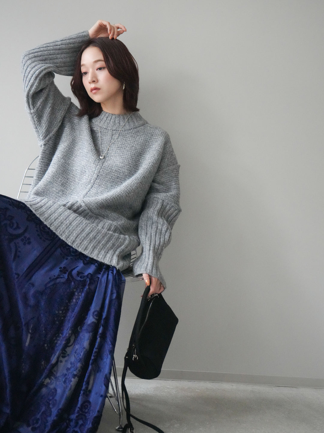 [SET]編み地切替ボトルネックニットプルオーバー+選べるアクセセット(2set)