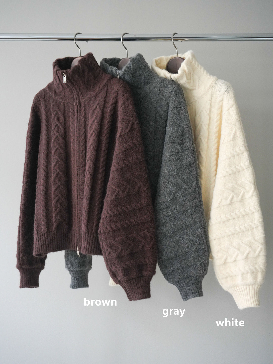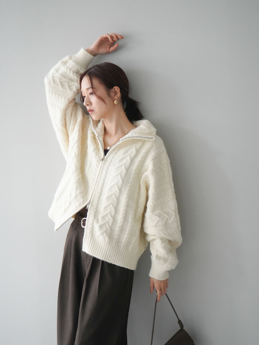 [SET]ケーブル編みハイネックZIPニットカーディガン+ケーブル編みハイネックZIPニットカーディガン(2set)