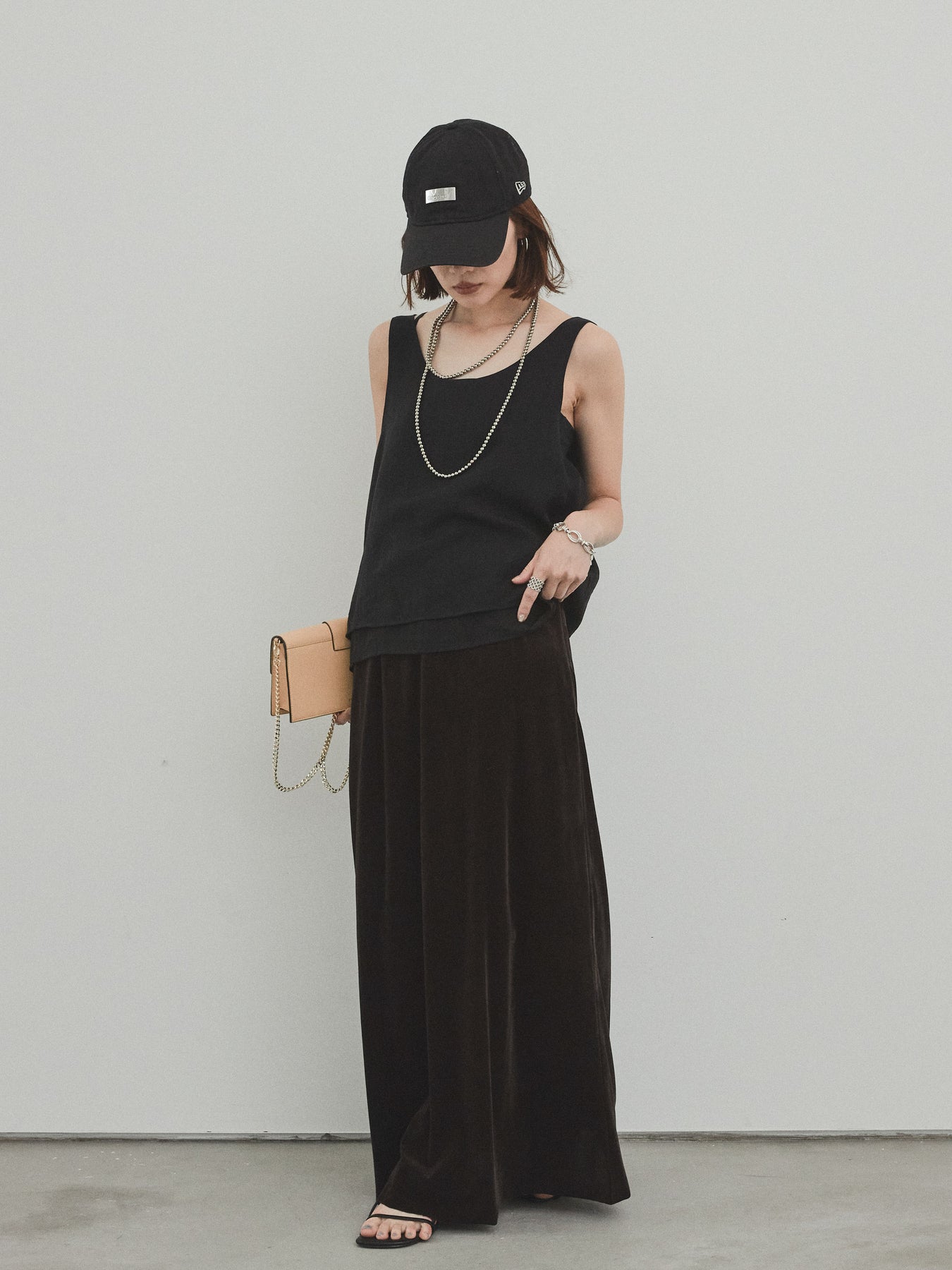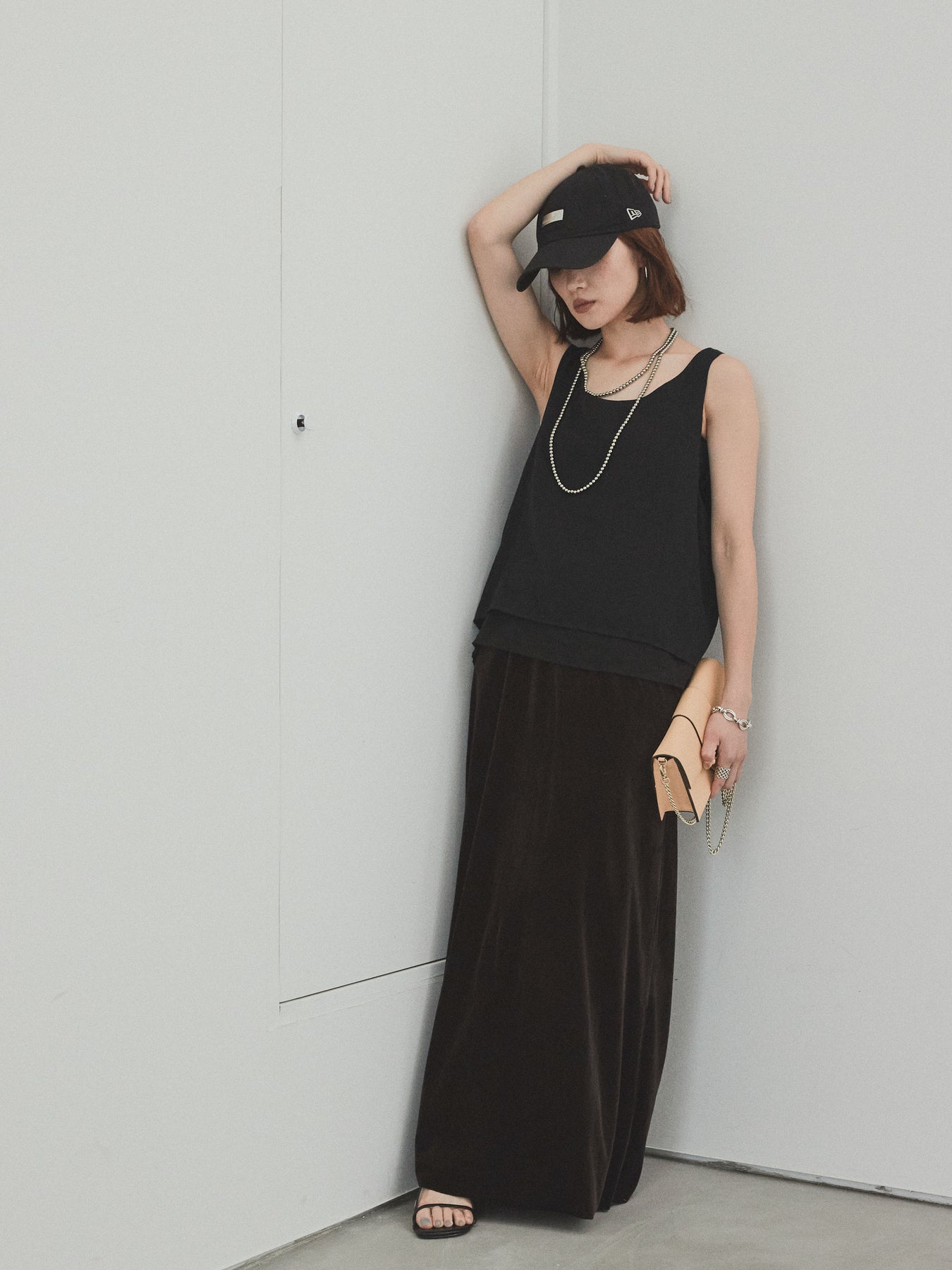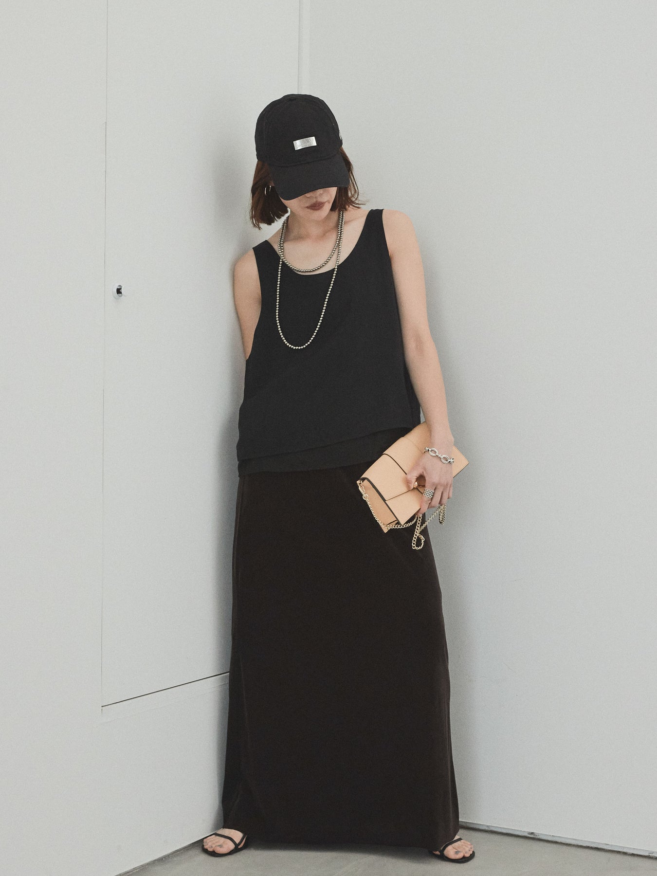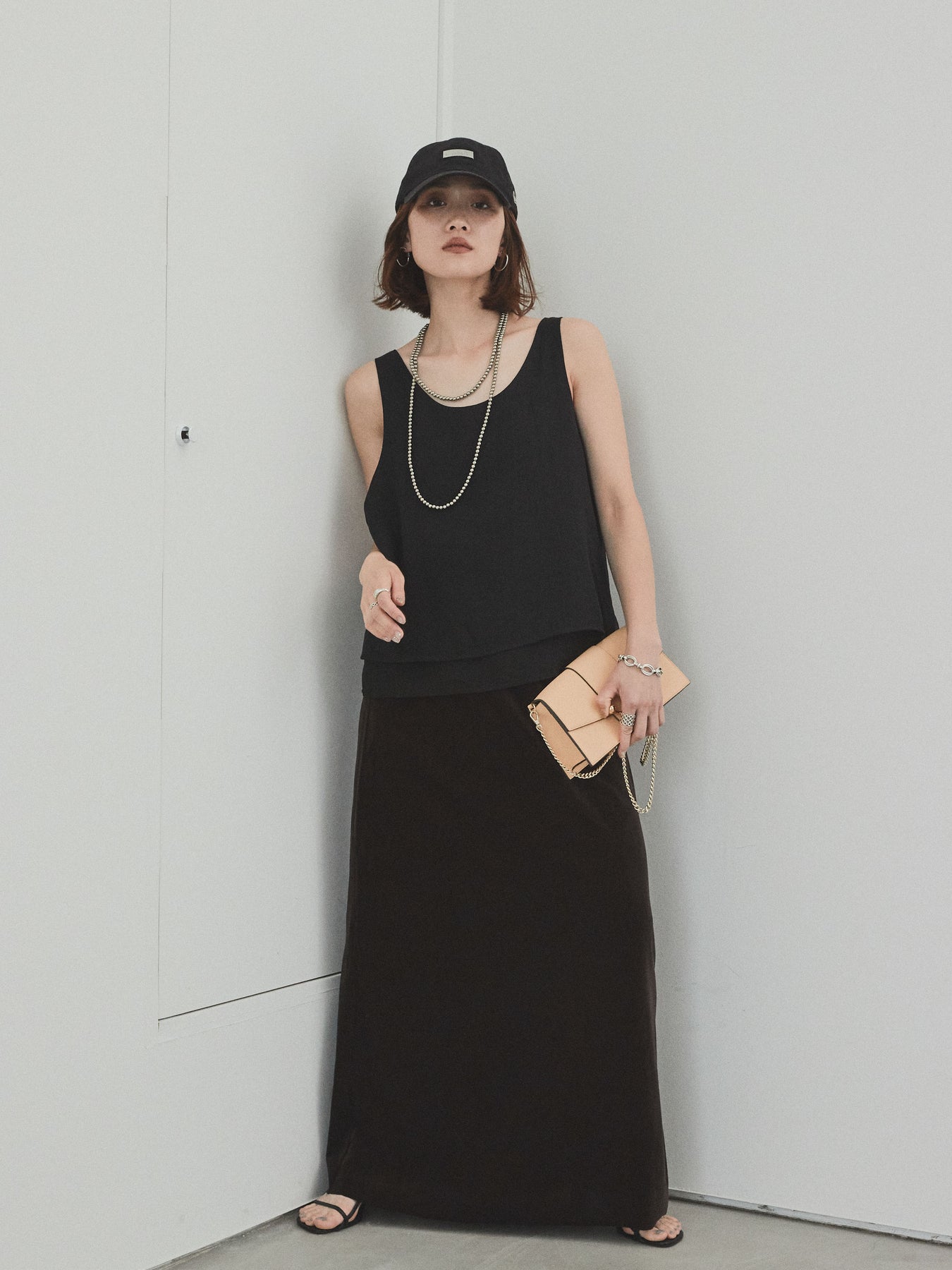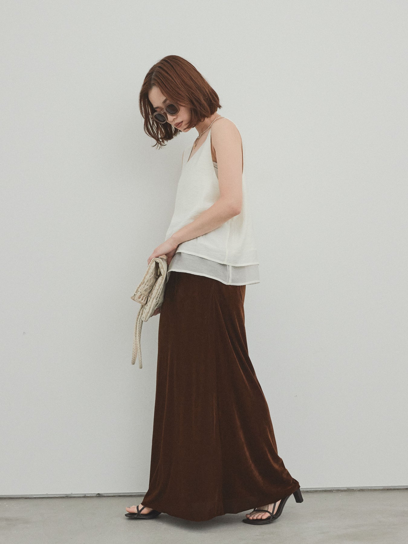 [SET]ワッシャーサテンシアーレイヤードタンクトップ+ベロアナロースカート(2set)