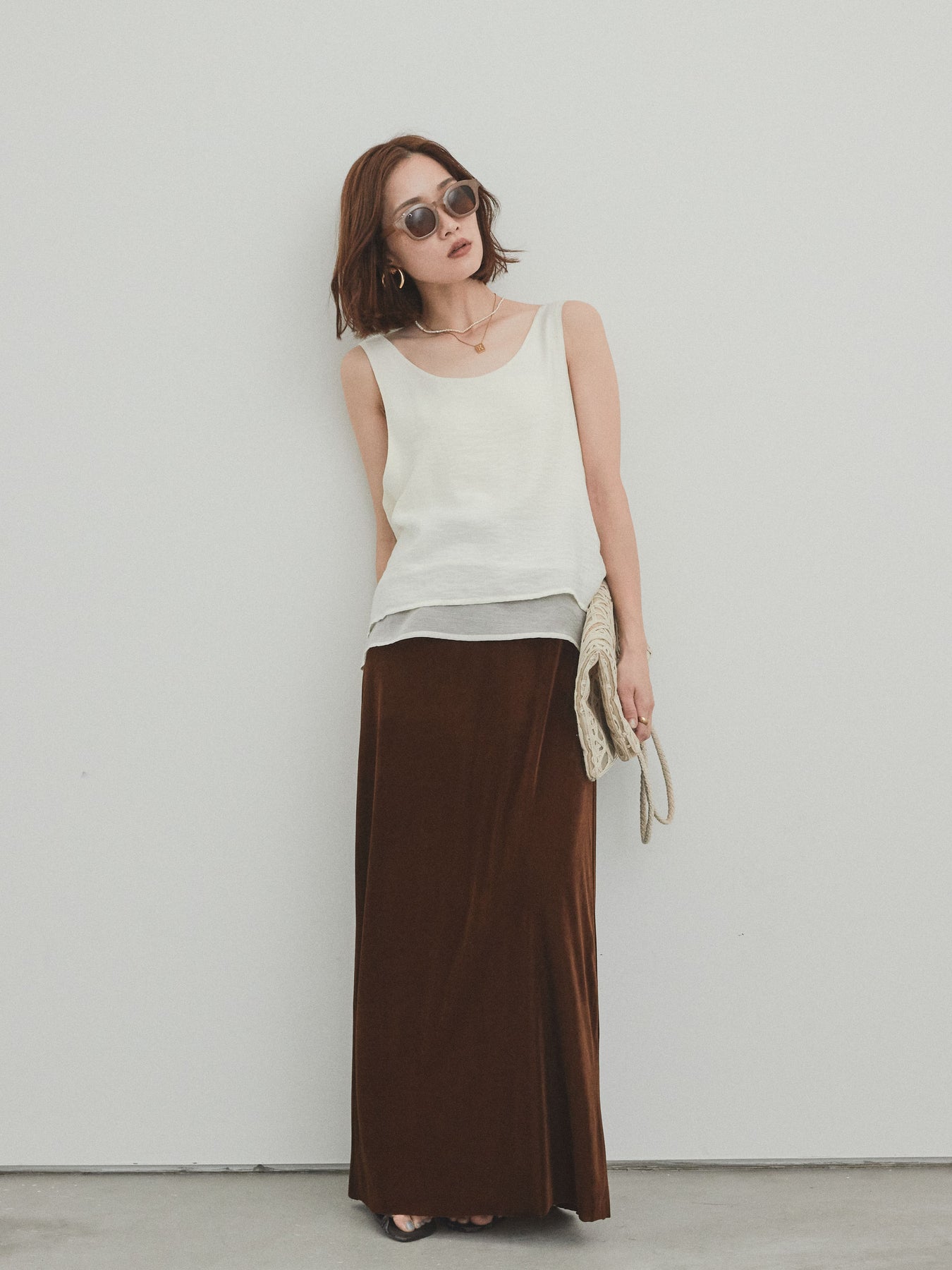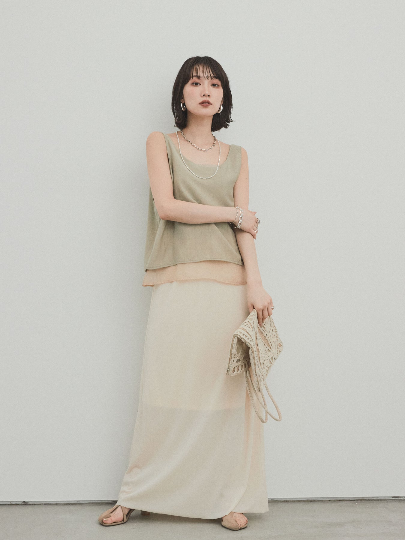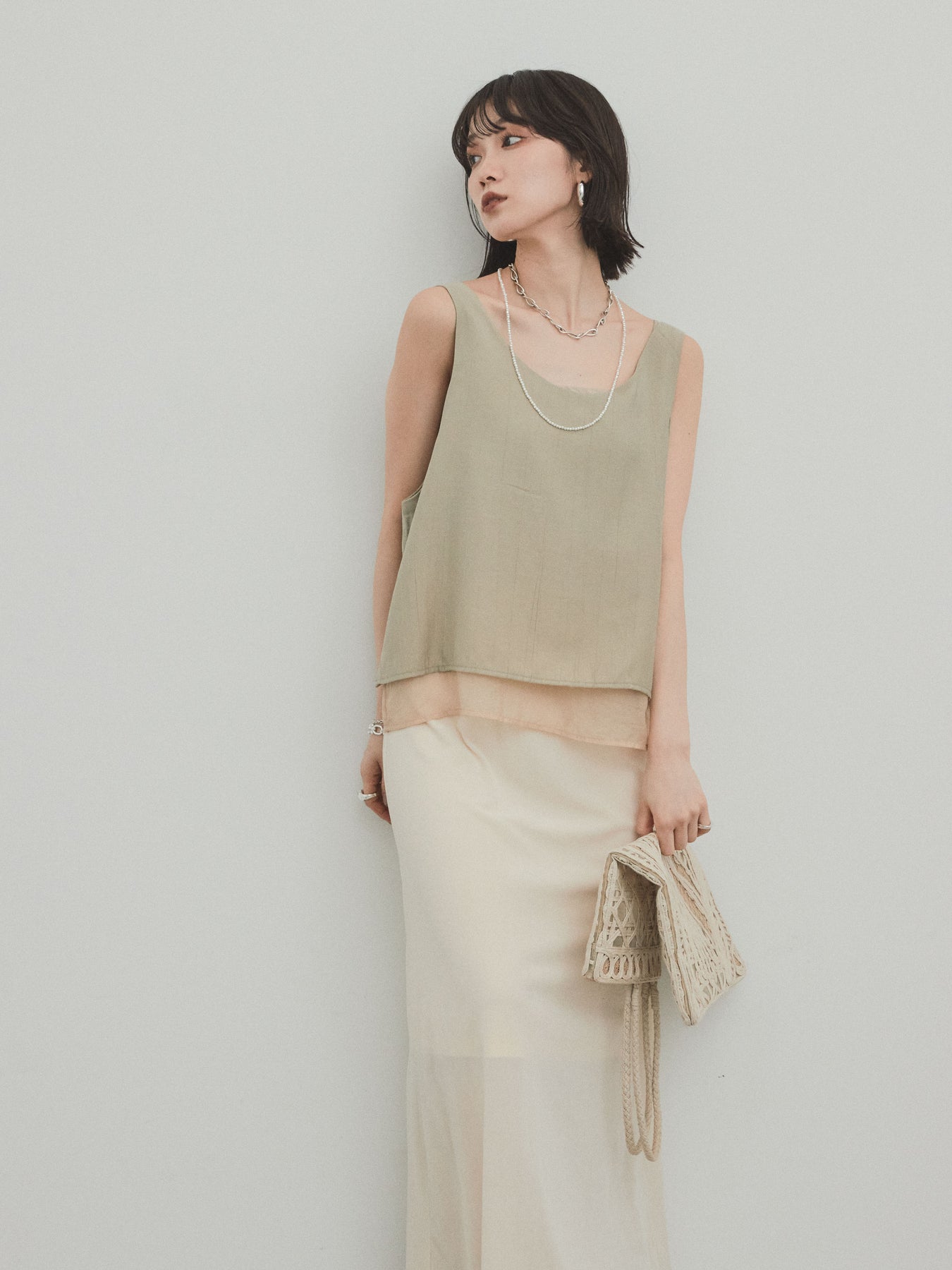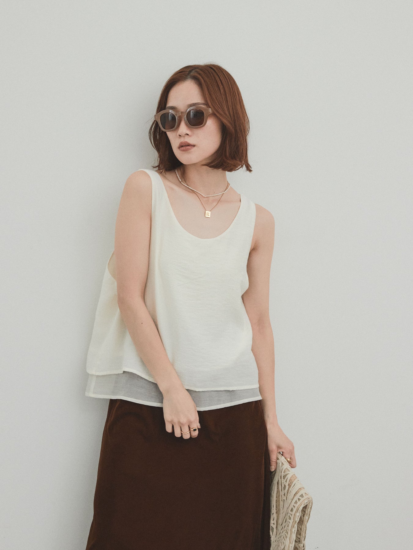 [予約]ワッシャーサテンシアーレイヤードタンクトップ