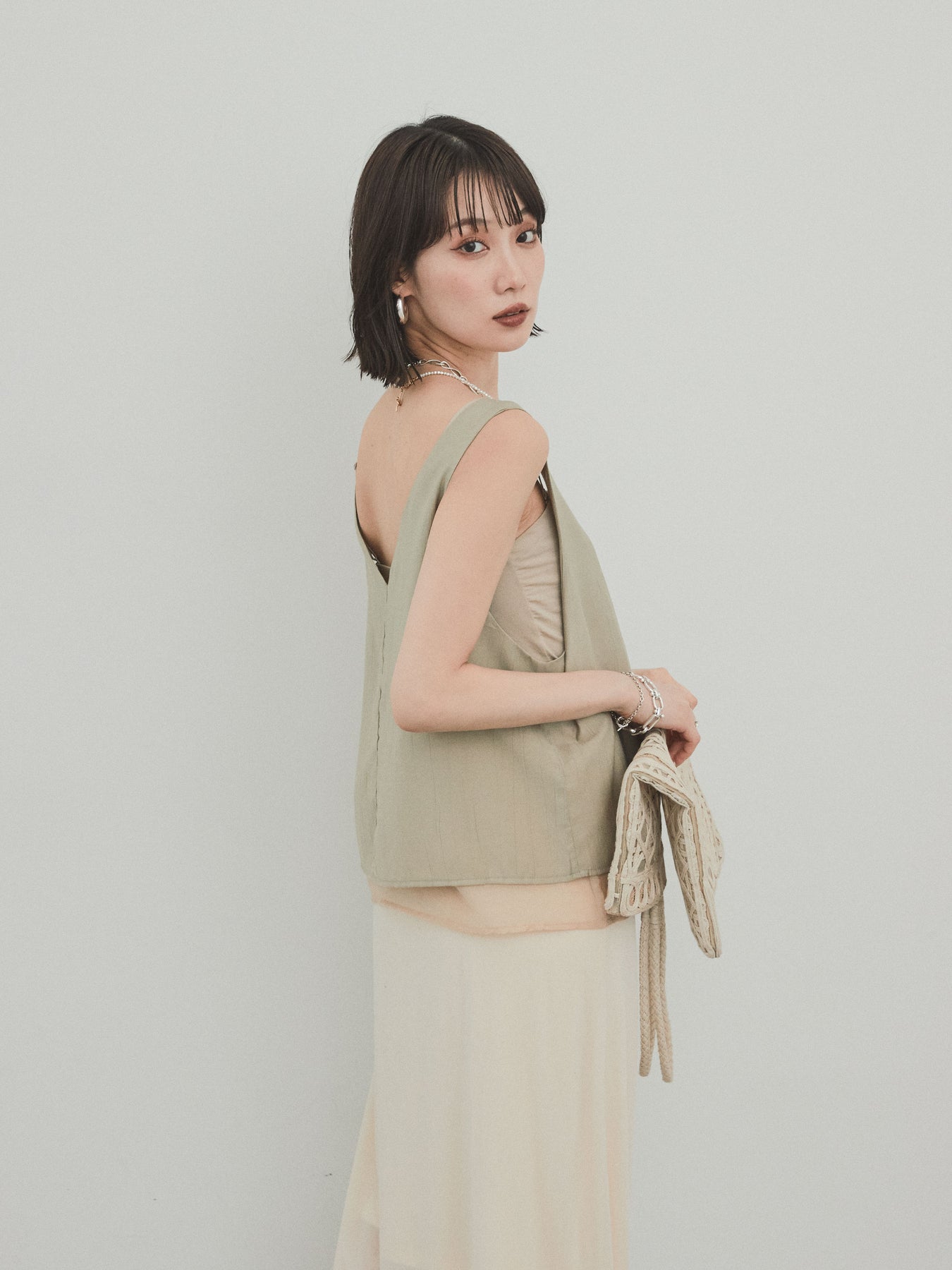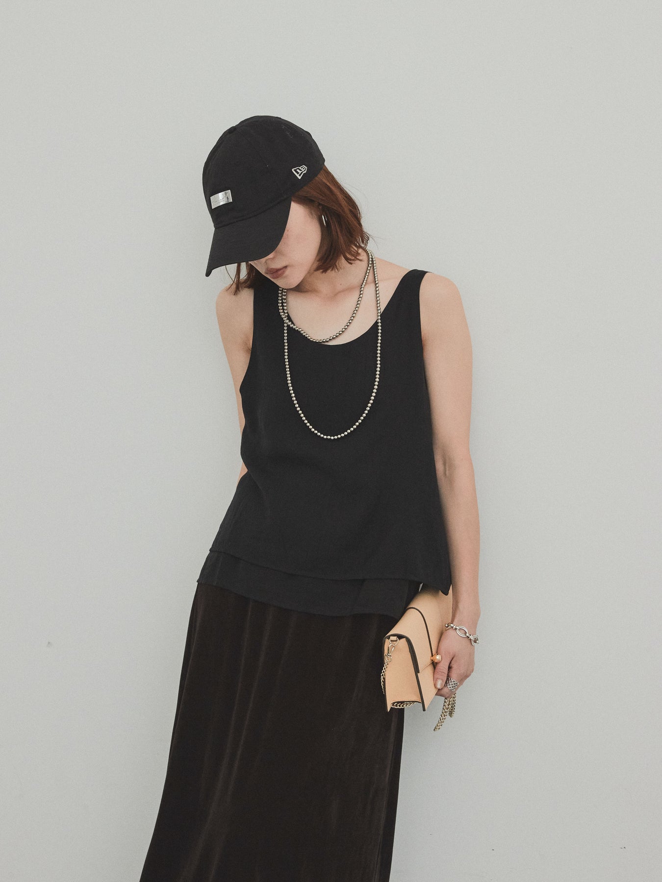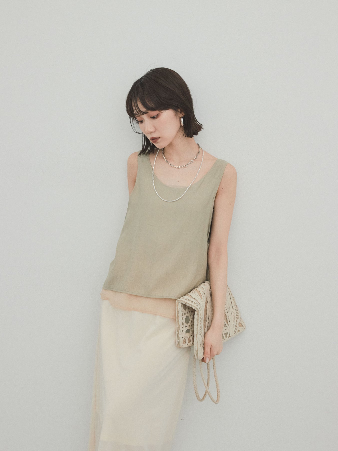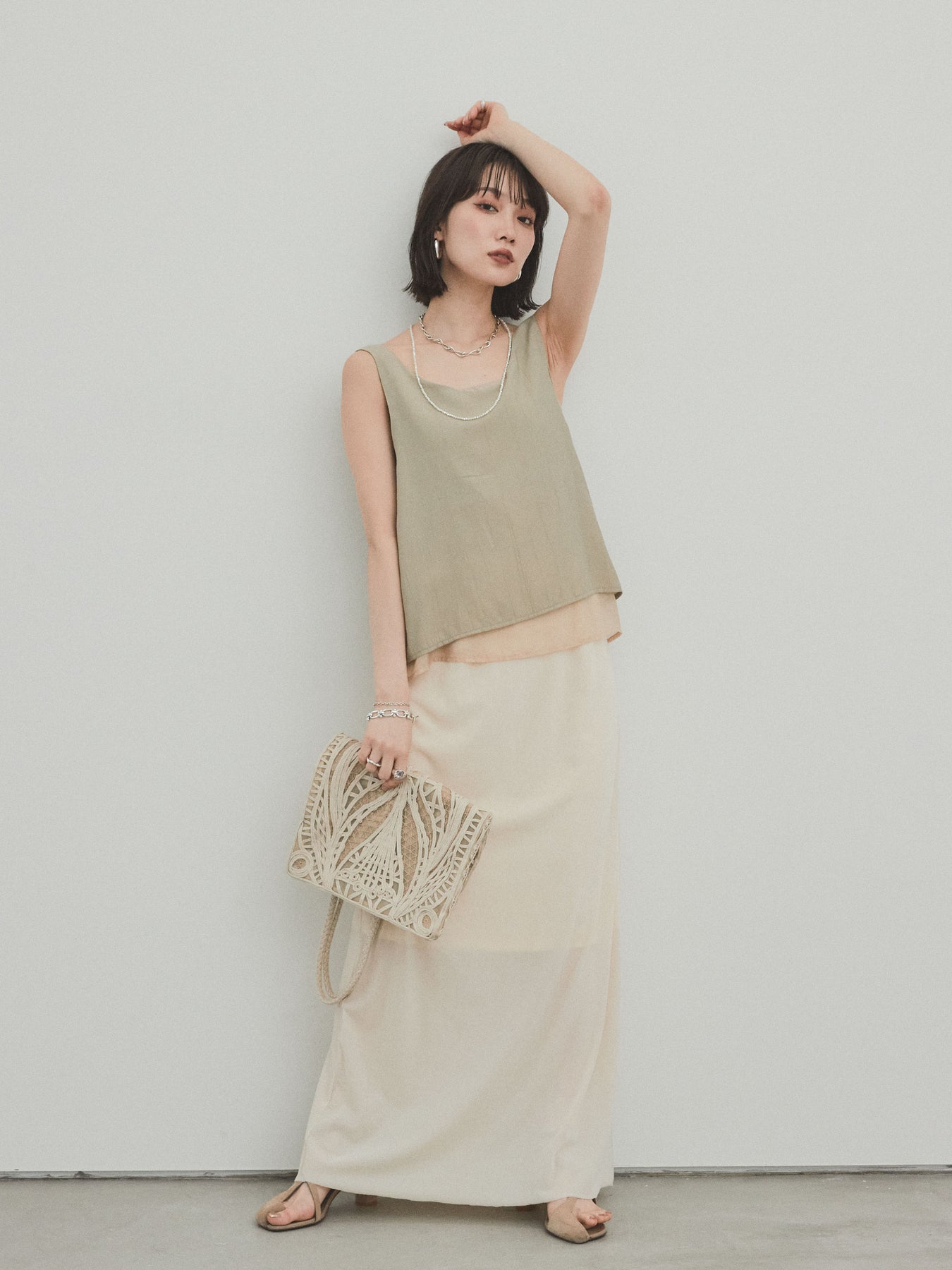 [予約]ワッシャーサテンシアーレイヤードタンクトップ
