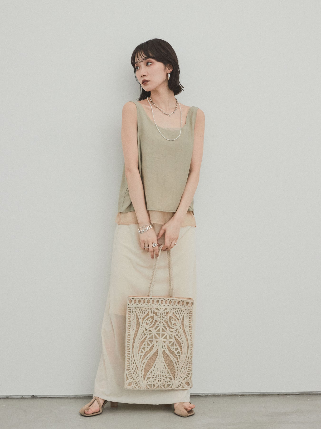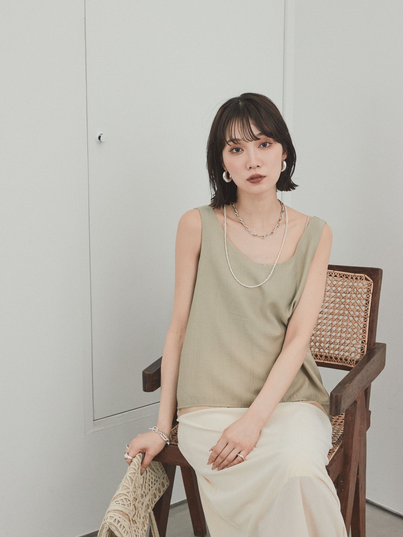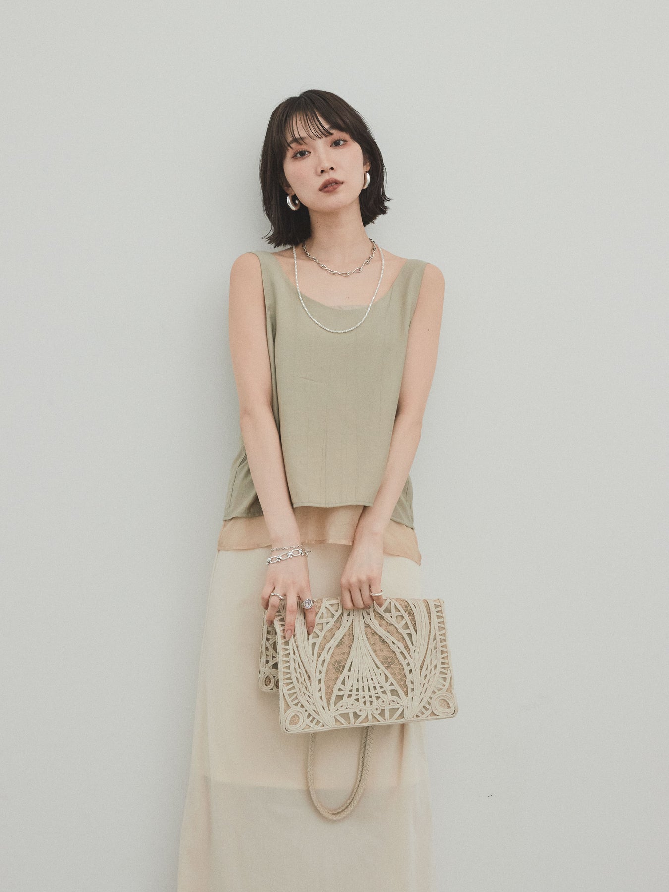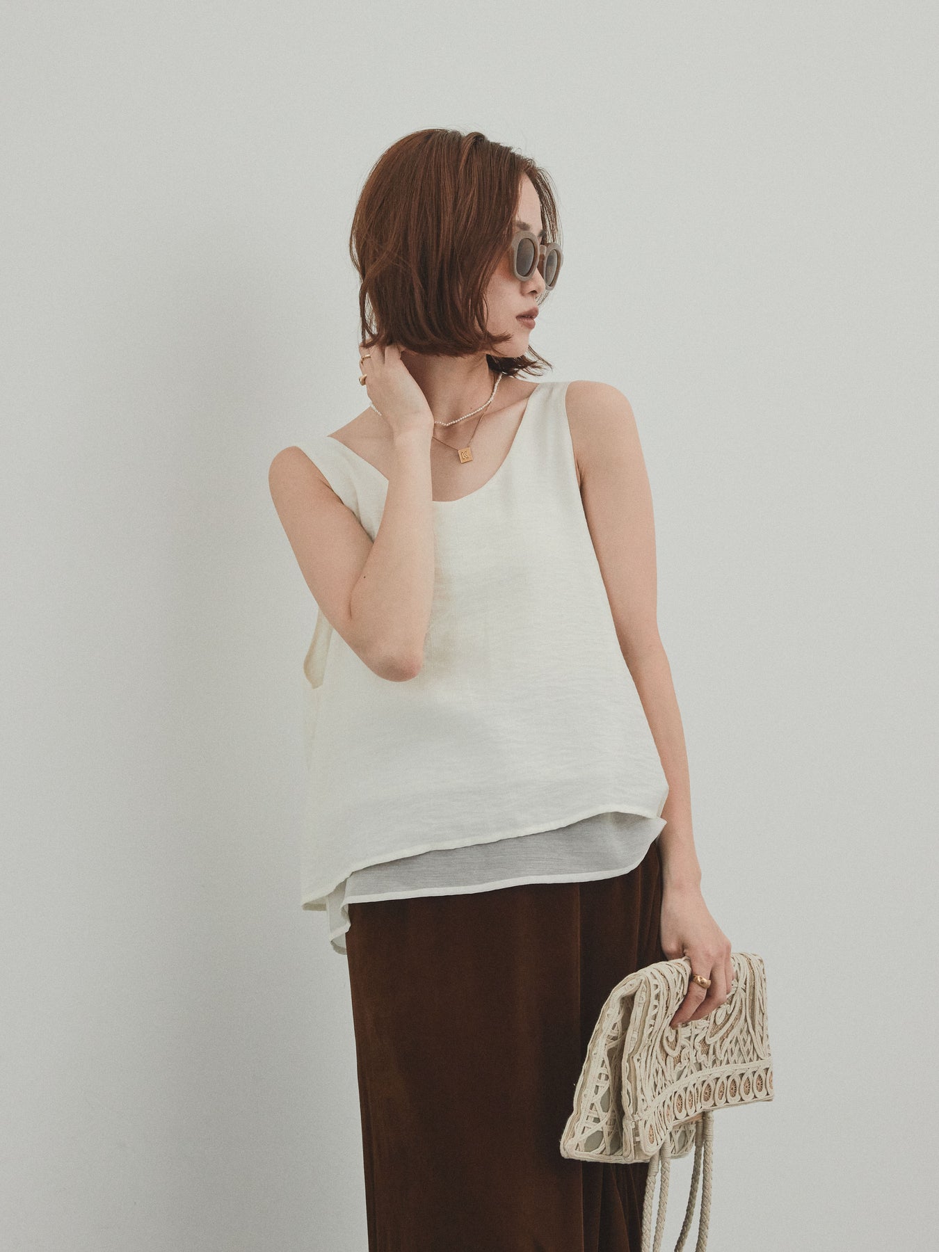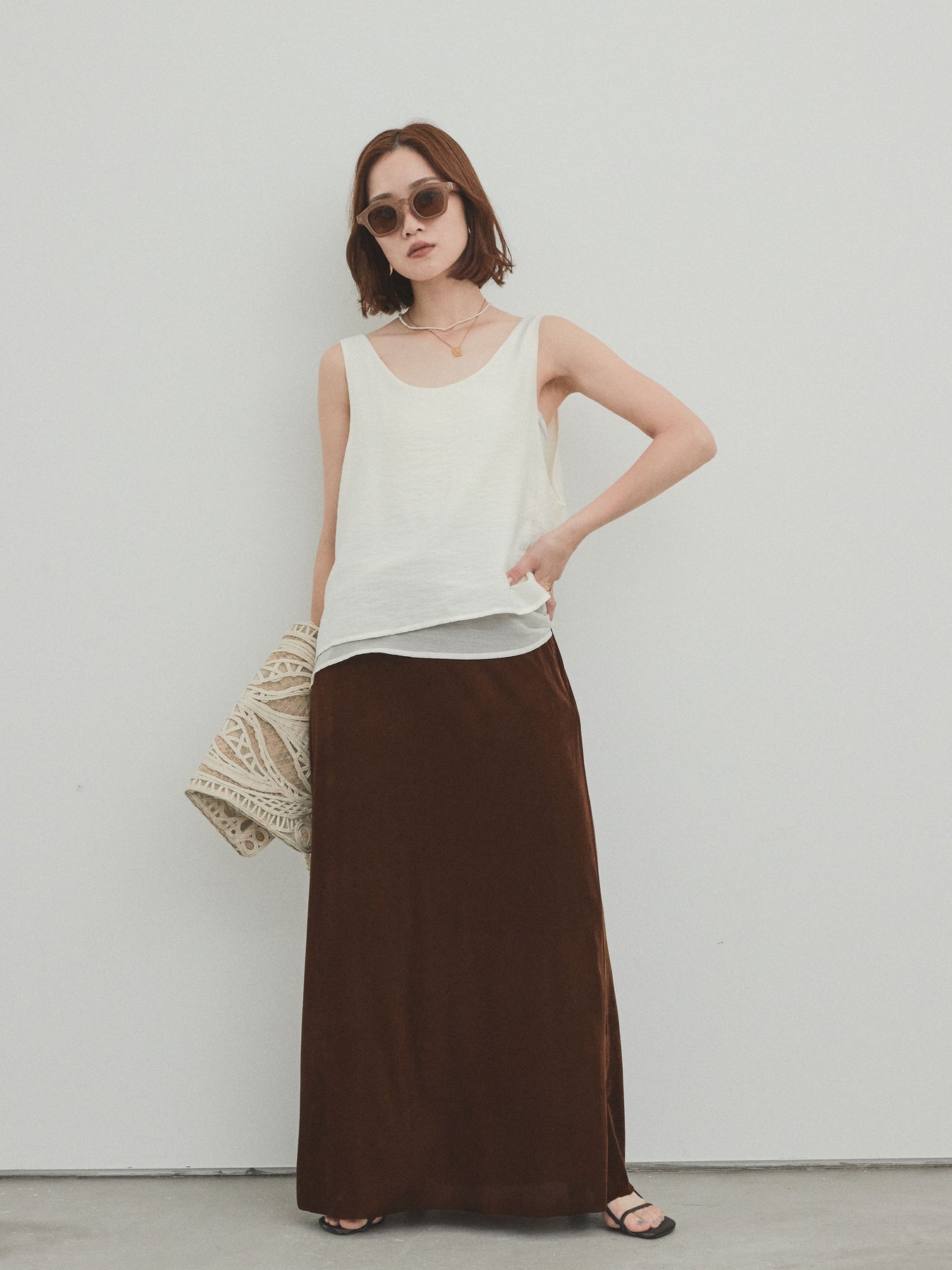 [予約]ワッシャーサテンシアーレイヤードタンクトップ