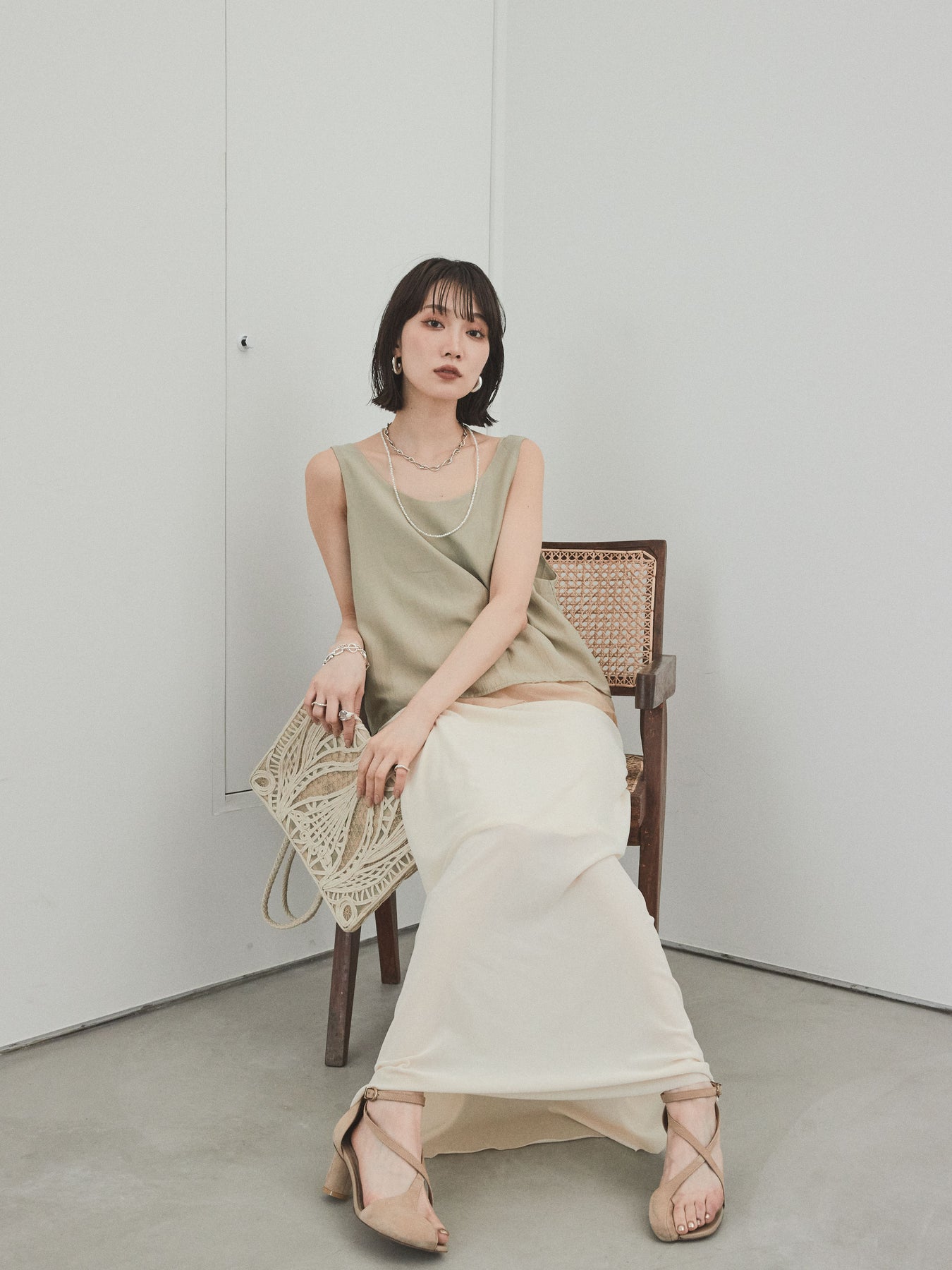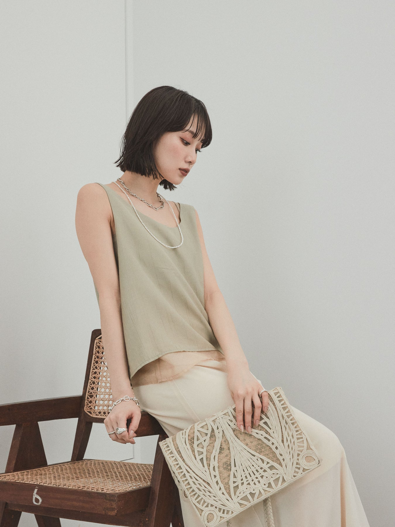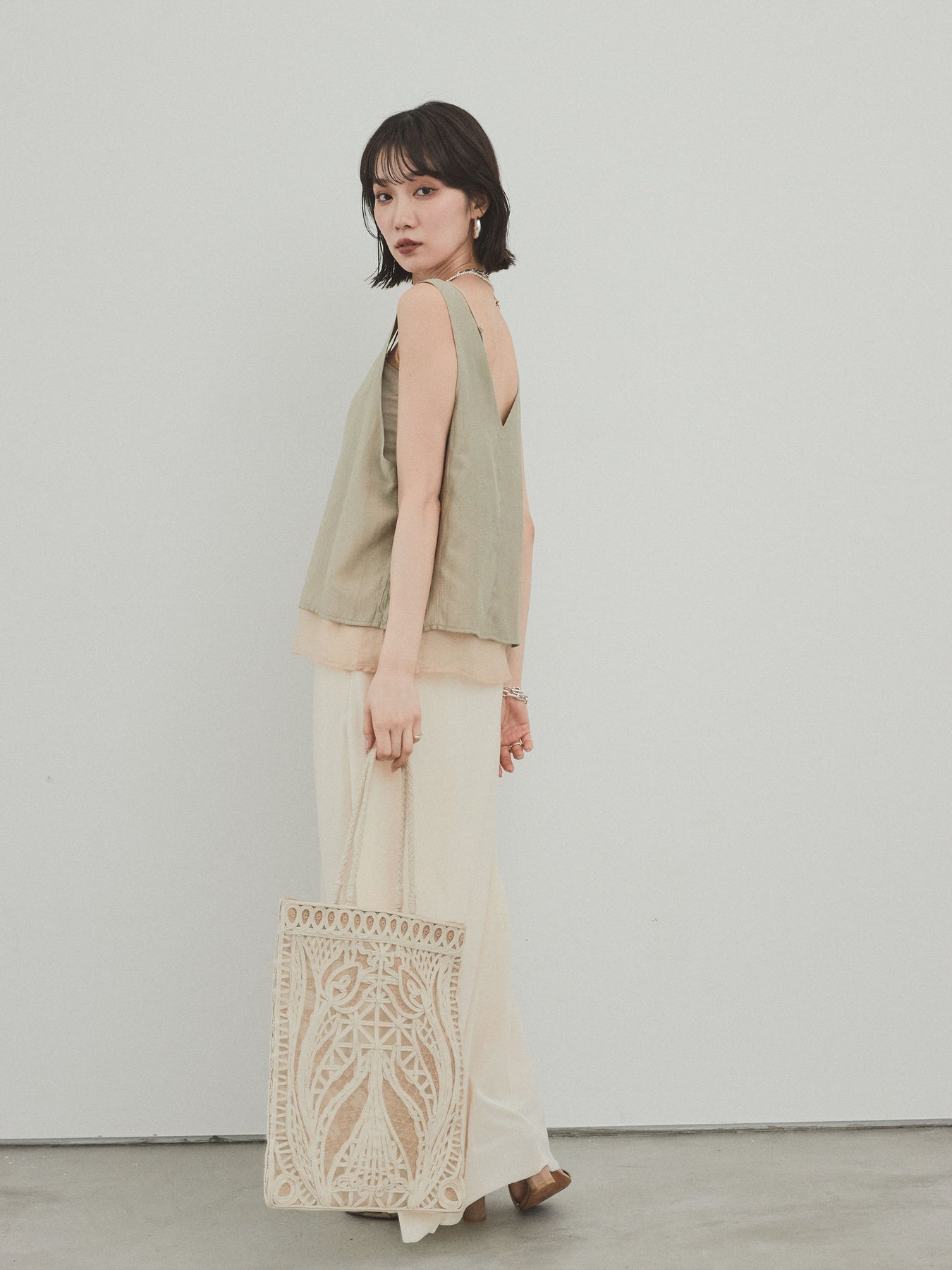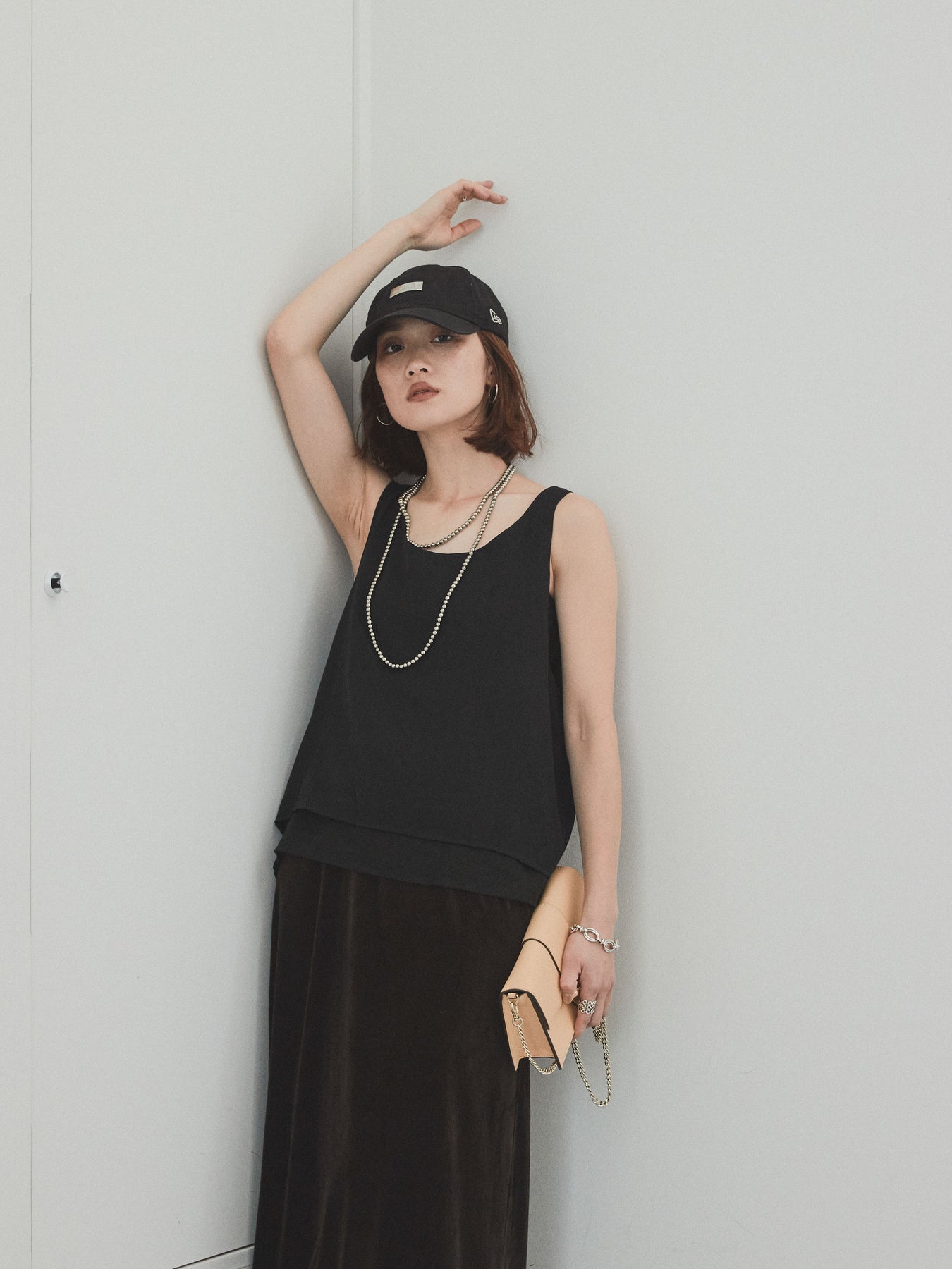 [予約]ワッシャーサテンシアーレイヤードタンクトップ