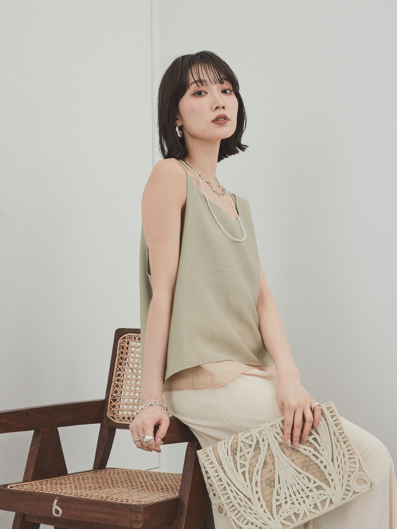 ◆ [予約]ワッシャーサテンシアーレイヤードタンクトップ