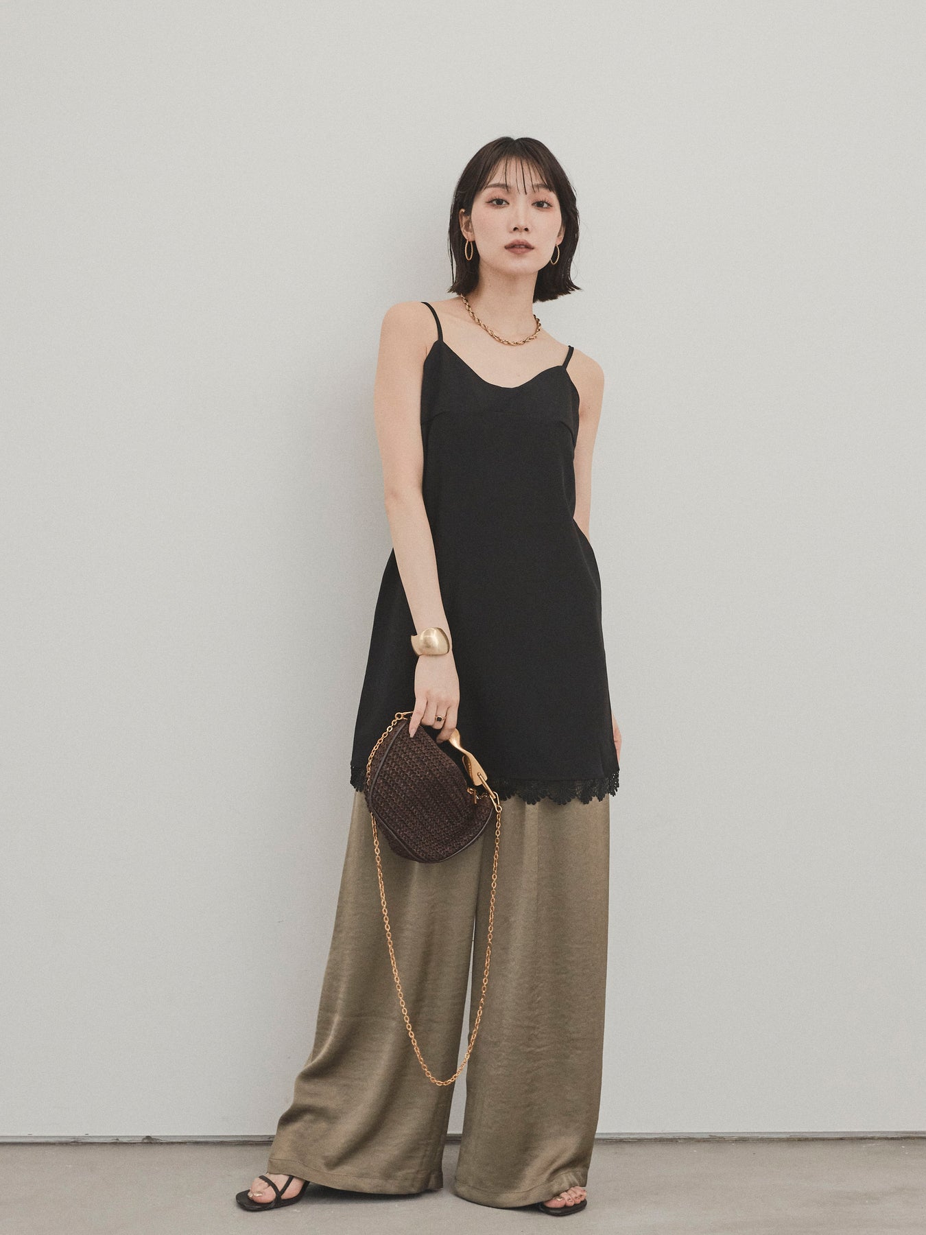 [SET]裾レース切替キャミミニワンピース+サテンイージーパンツ(2set)