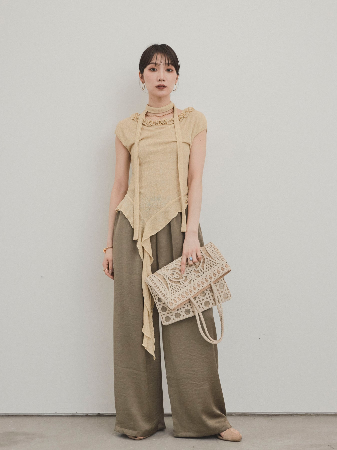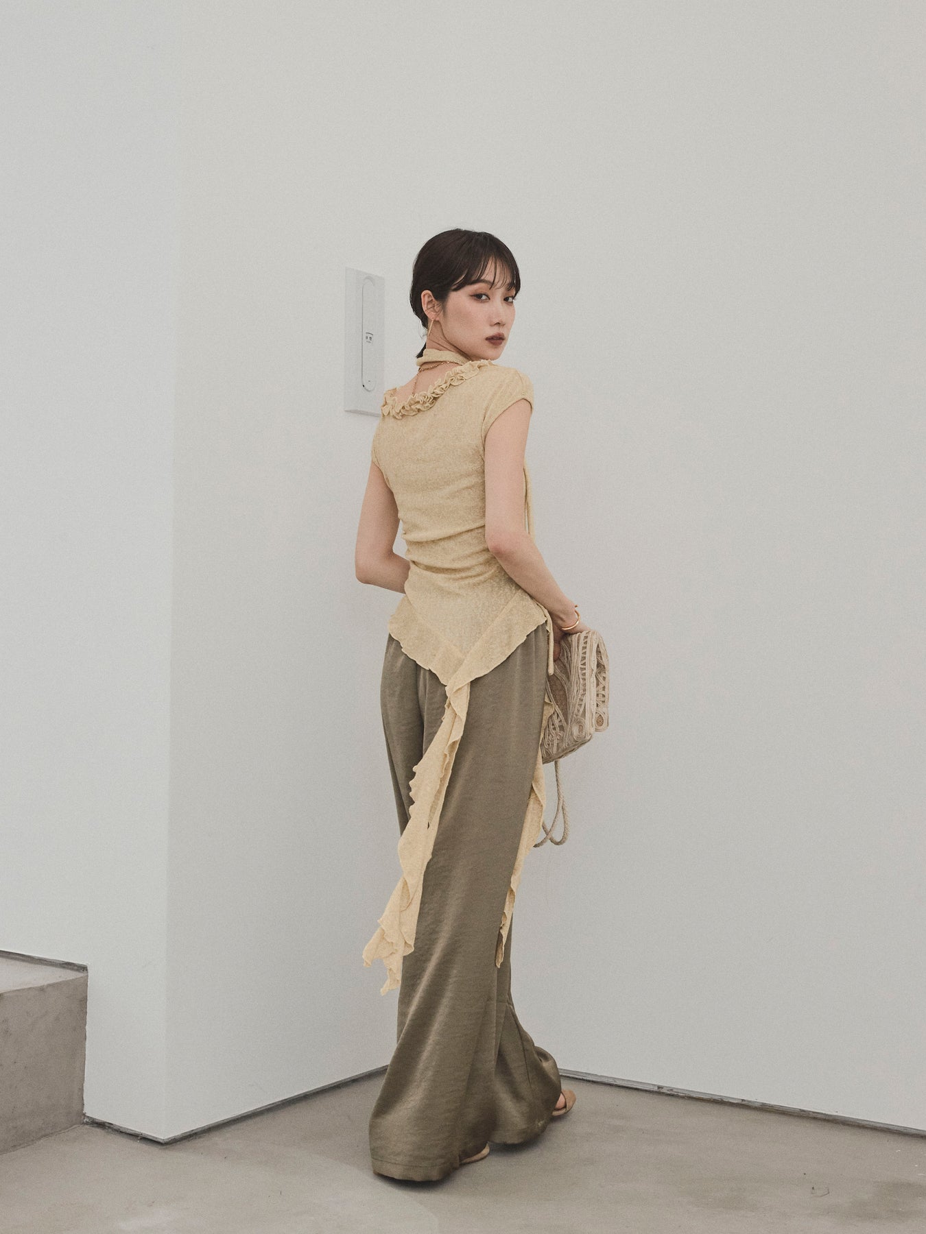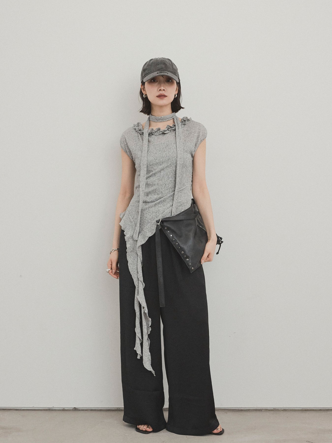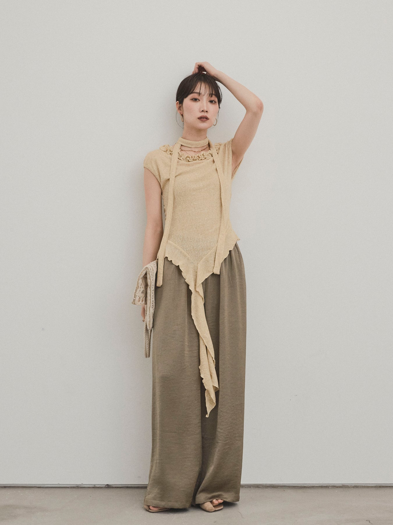 [SET]ラッフルシアーニットタンクトップ+サテンイージーパンツ(2set)
